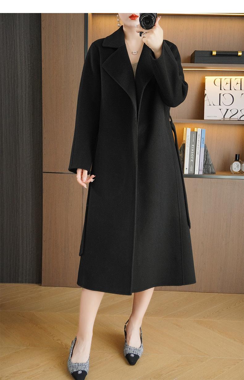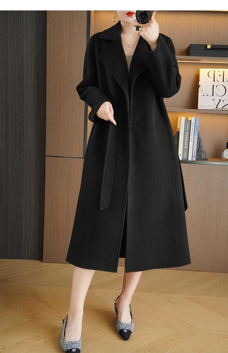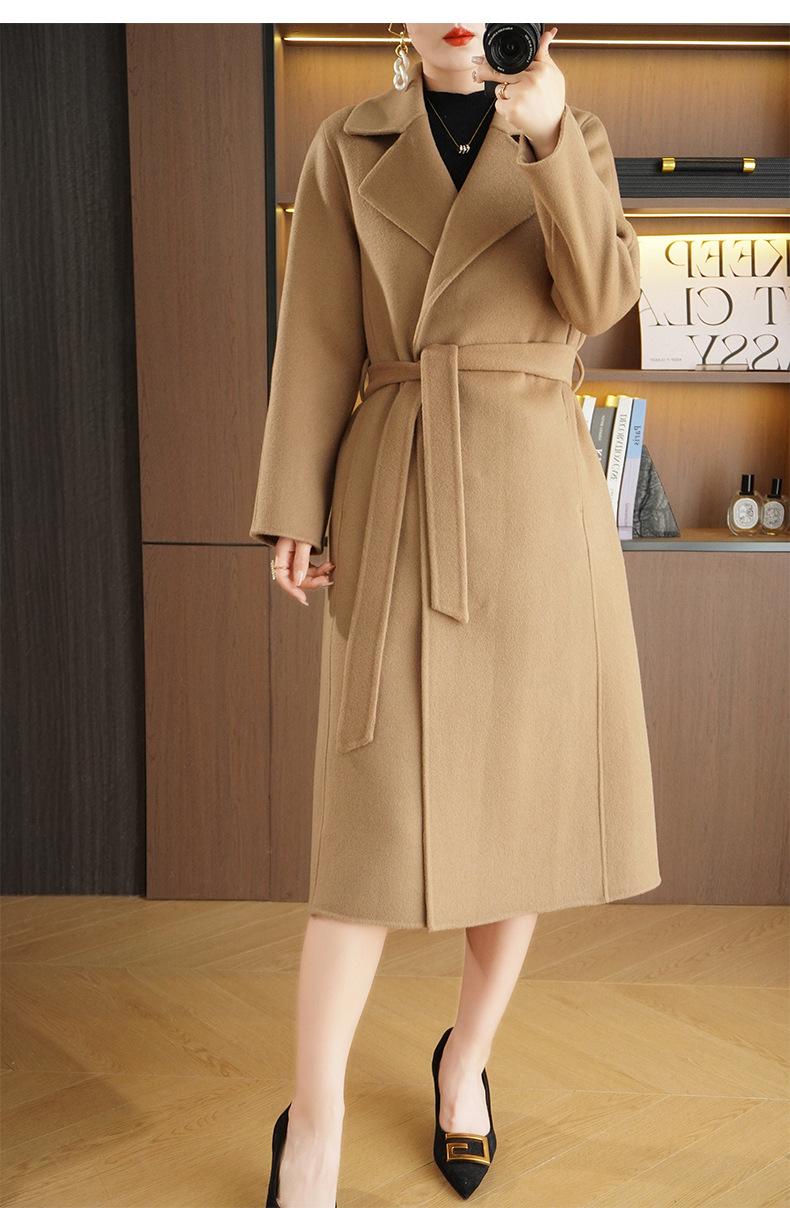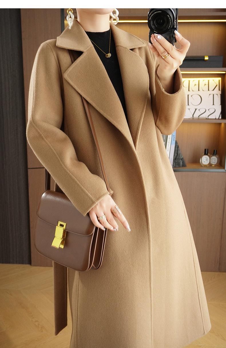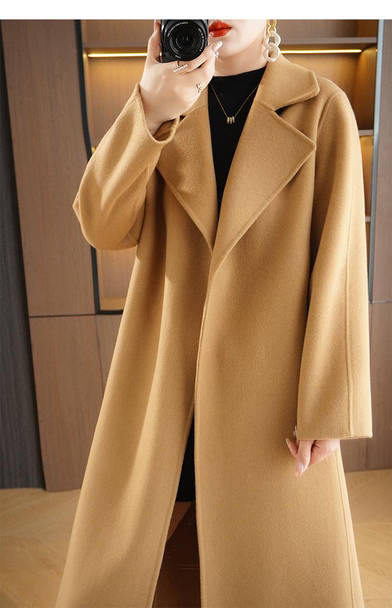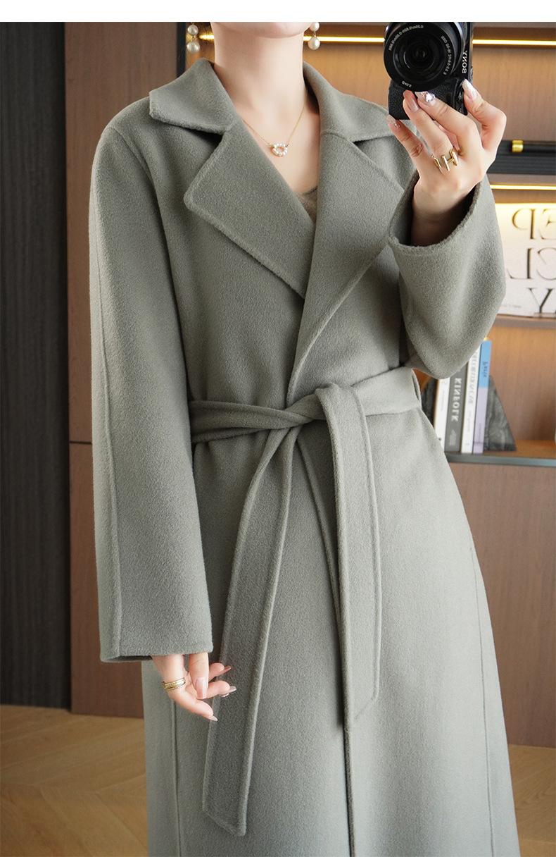 Abrigo de lana de doble cara para mujer, otoño e invierno, nuevo, largo, holgado, con cordones, elegante, de doble cara, 2024