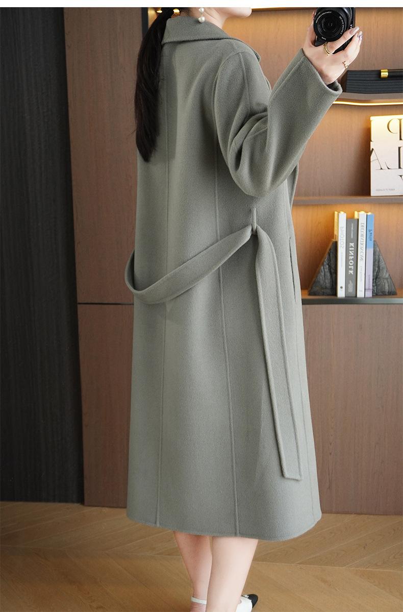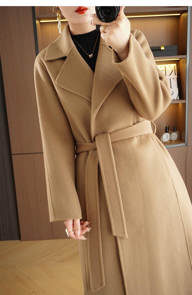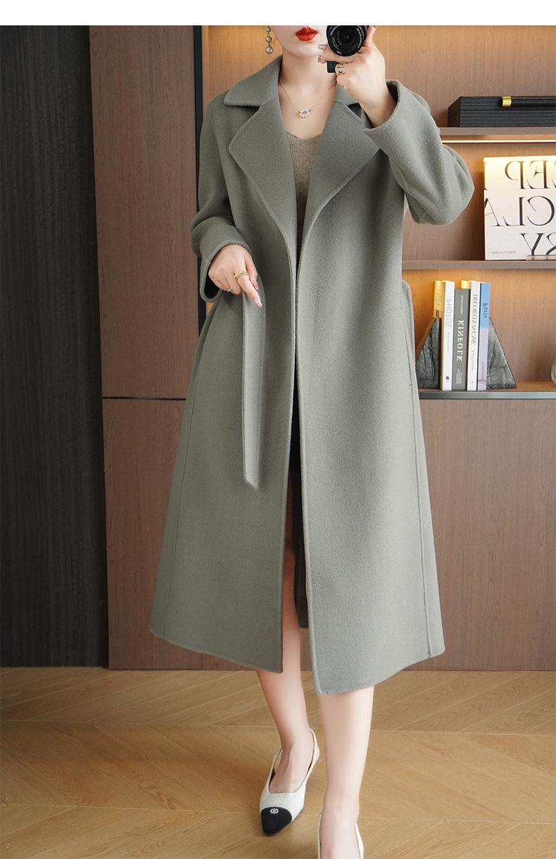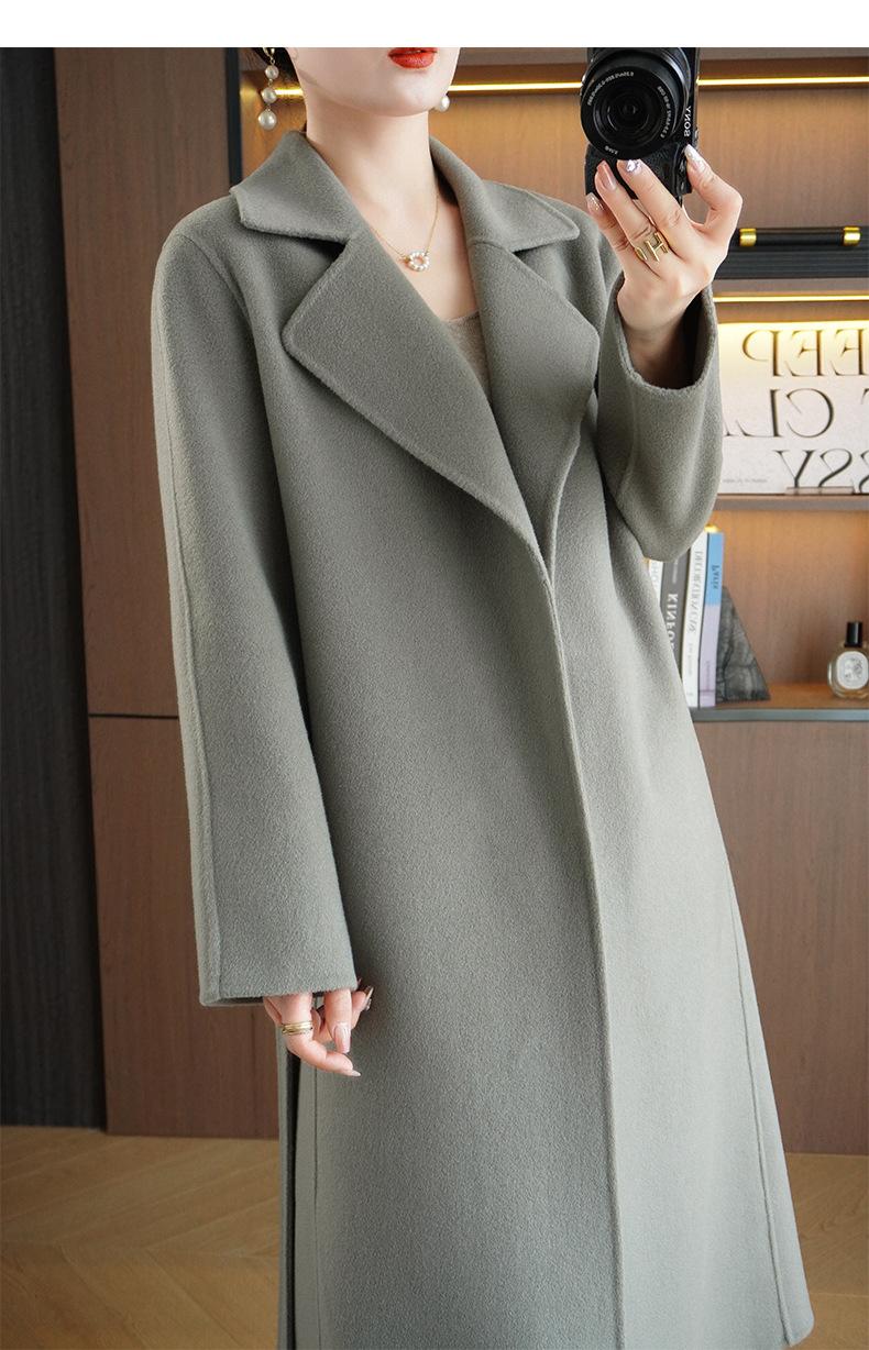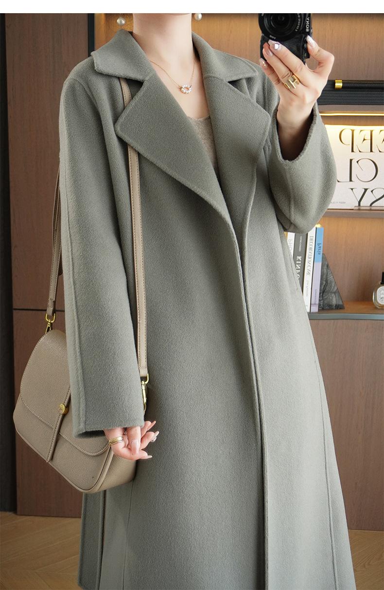 Abrigo de lana de doble cara para mujer, otoño e invierno, nuevo, largo, holgado, con cordones, elegante, de doble cara, 2024