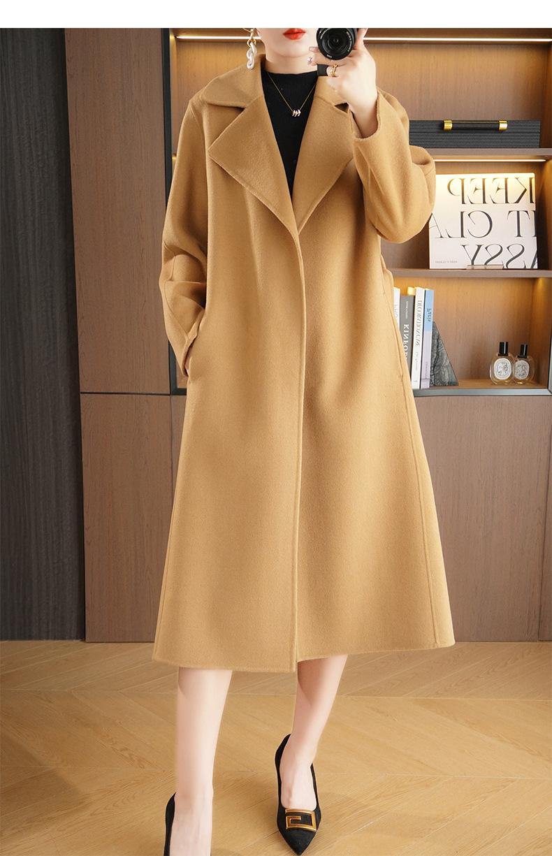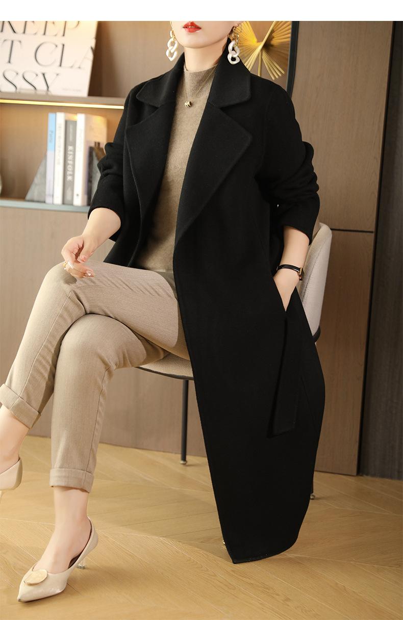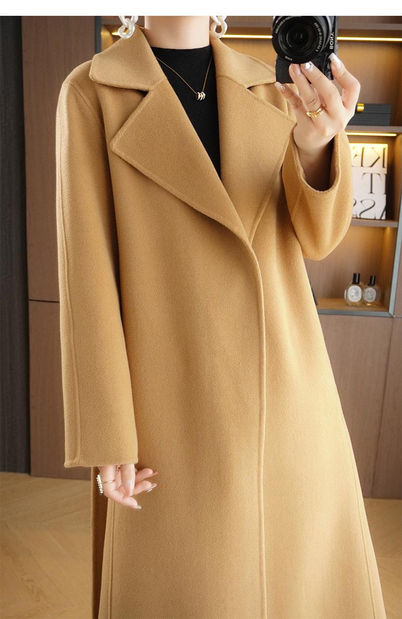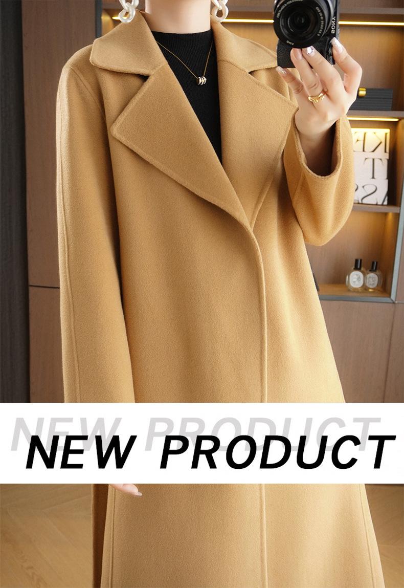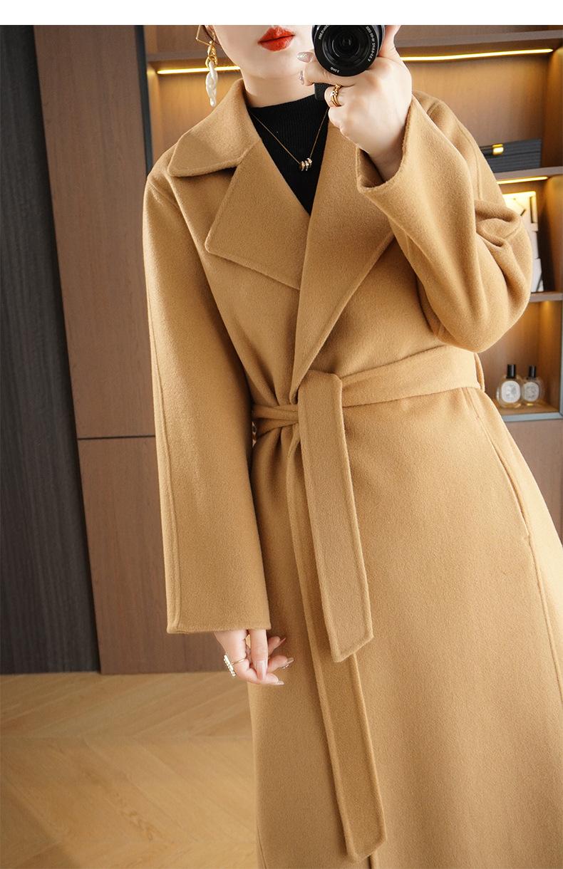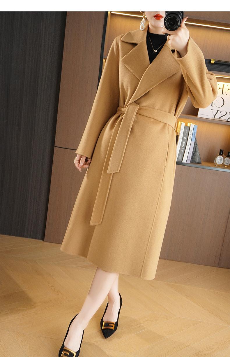 Abrigo de lana de doble cara para mujer, otoño e invierno, nuevo, largo, holgado, con cordones, elegante, de doble cara, 2024
