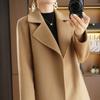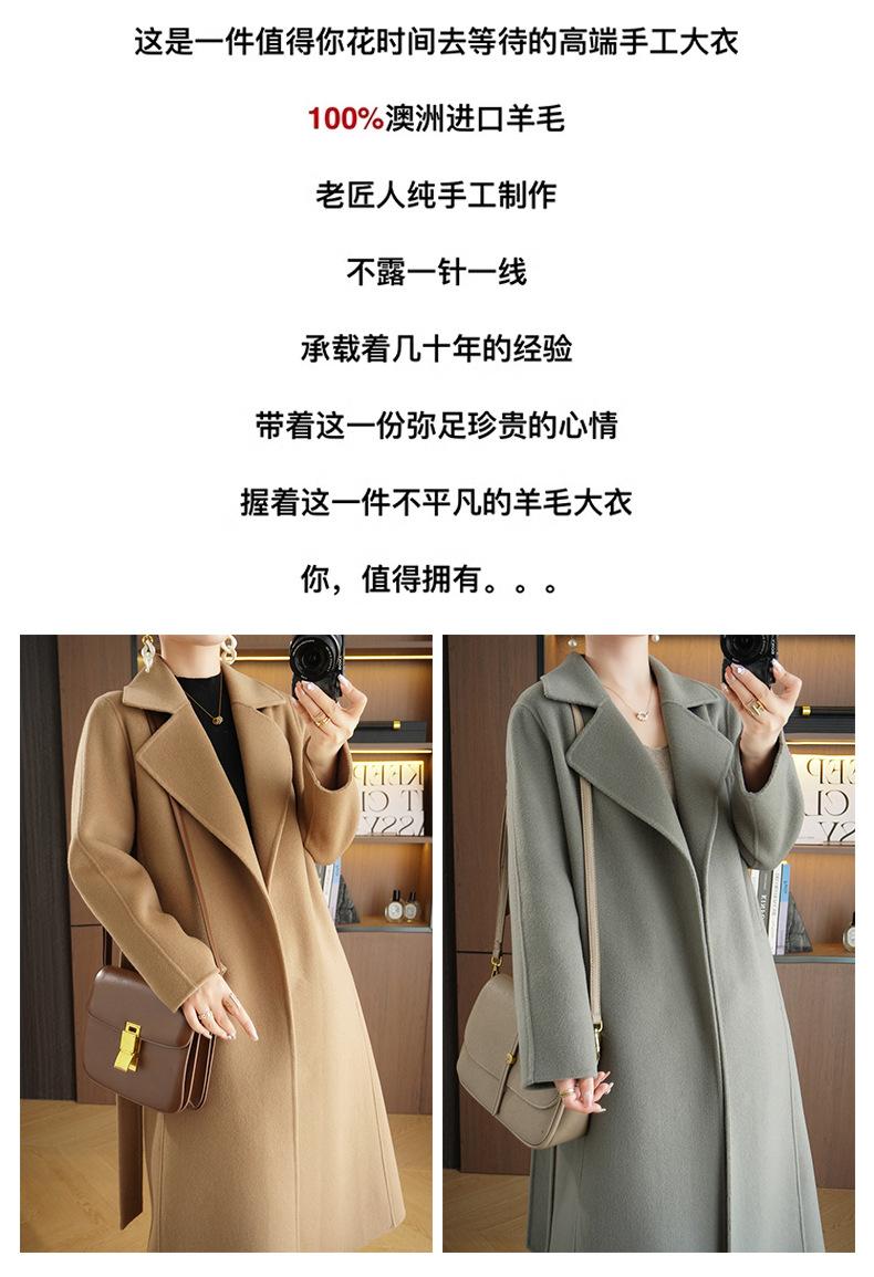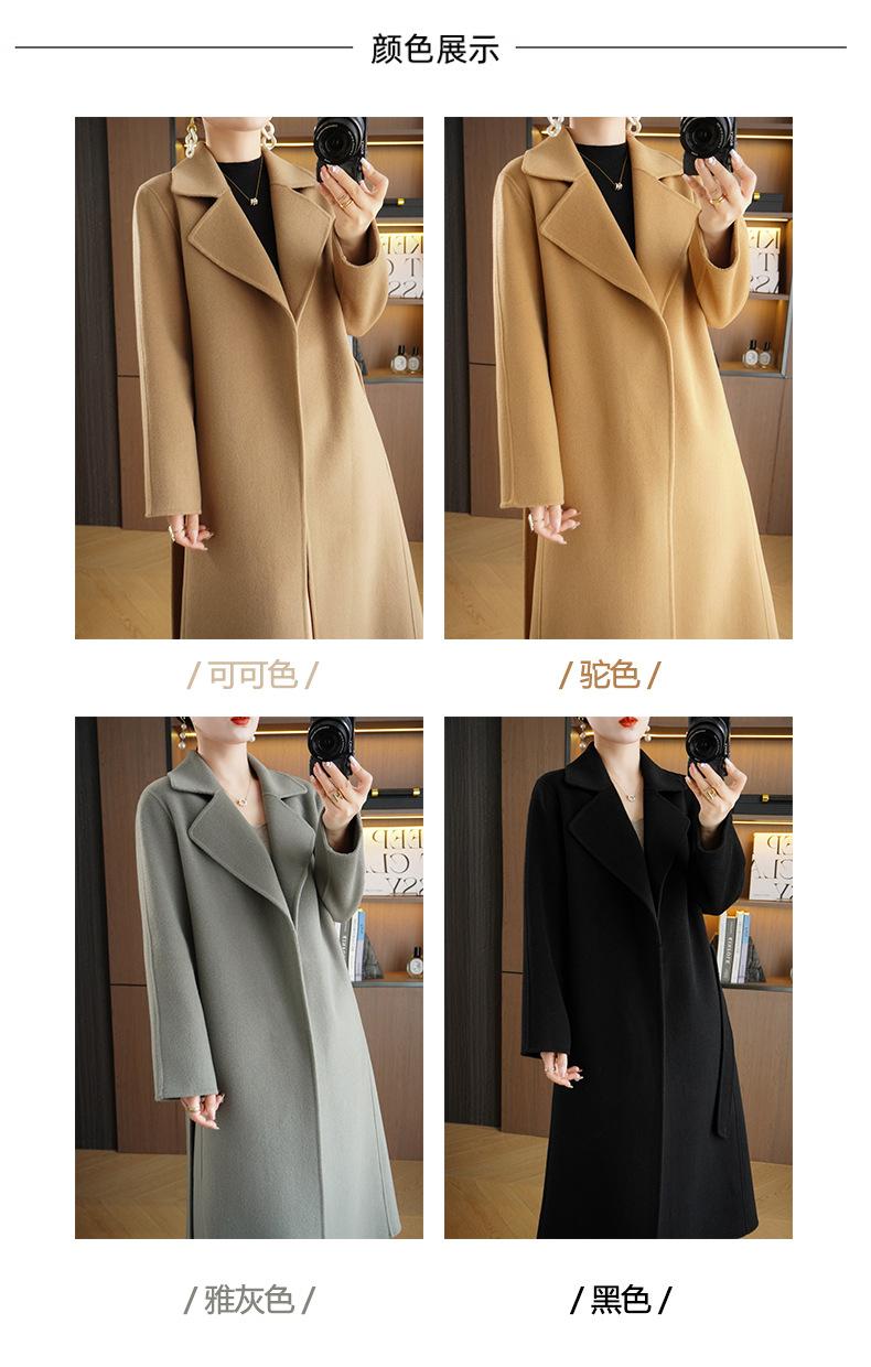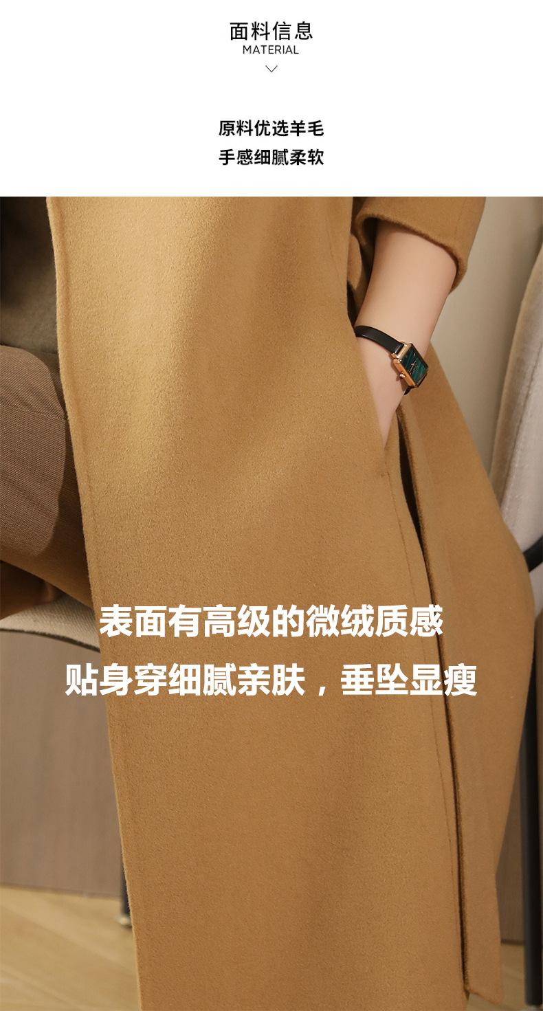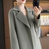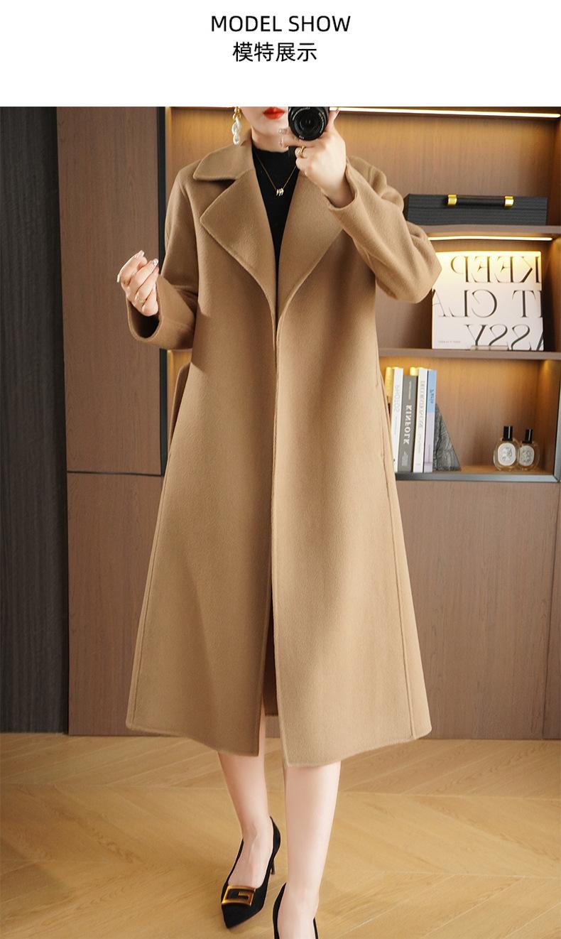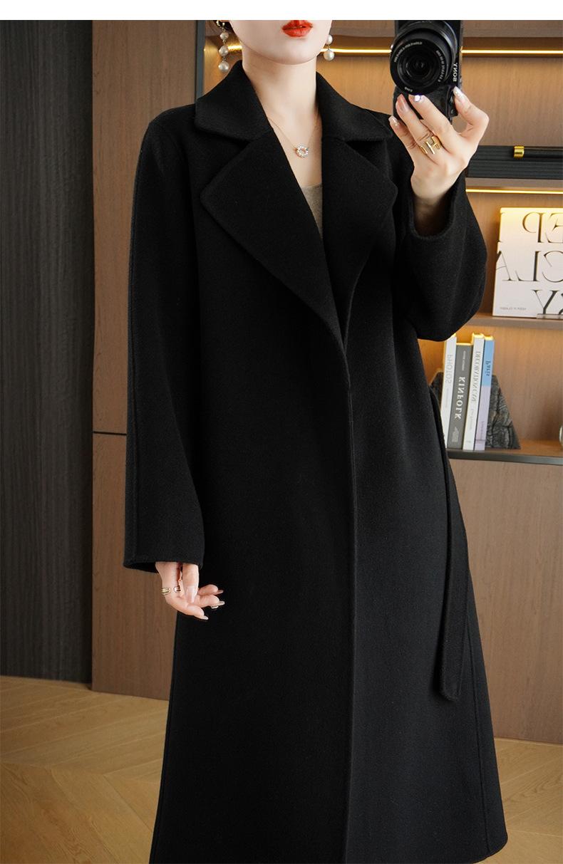Abrigo de lana de doble cara para mujer, otoño e invierno, nuevo, largo, holgado, con cordones, elegante, de doble cara, 2024