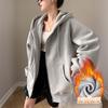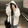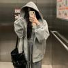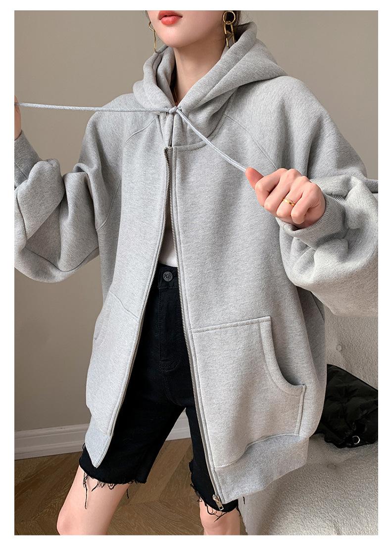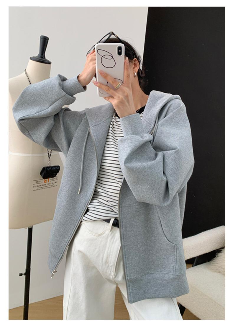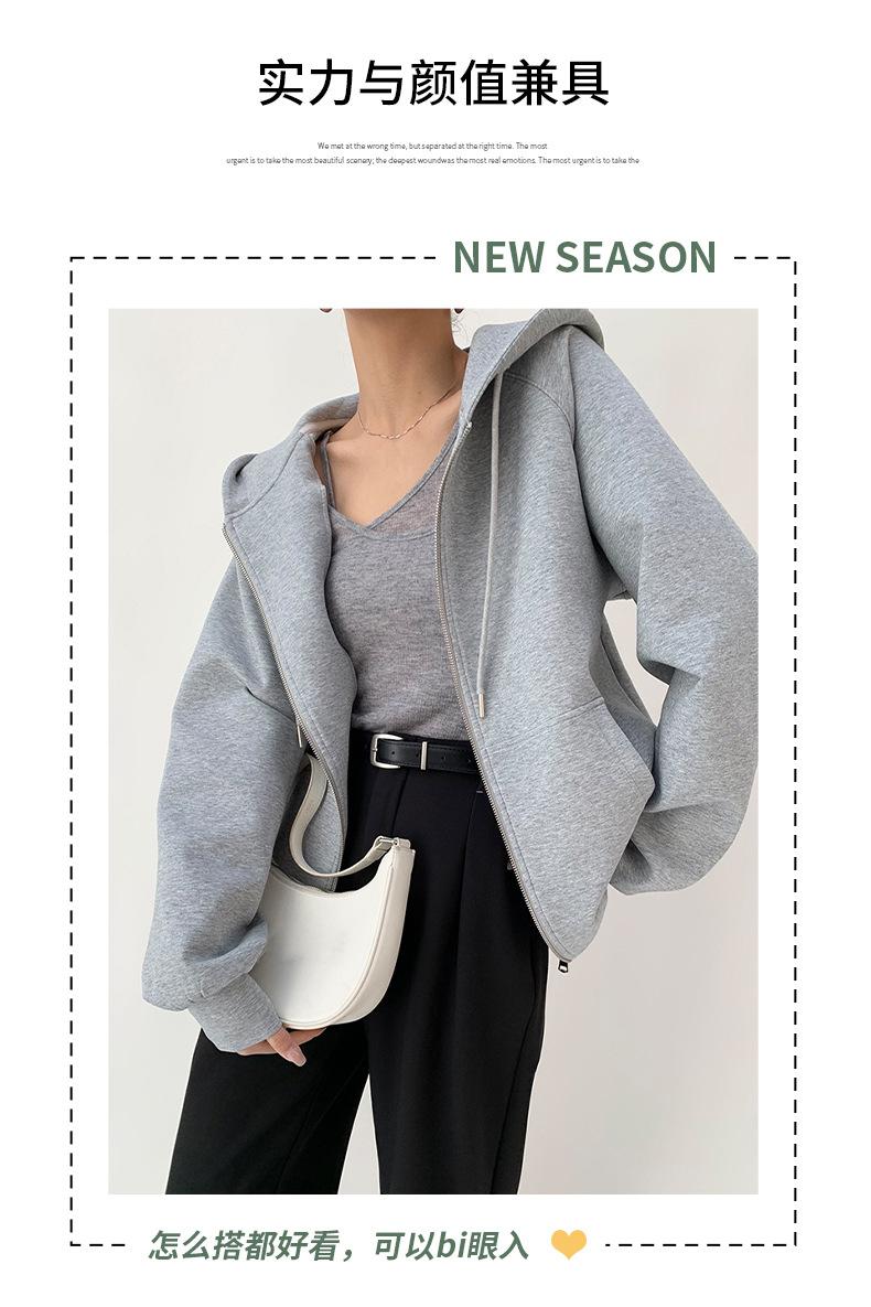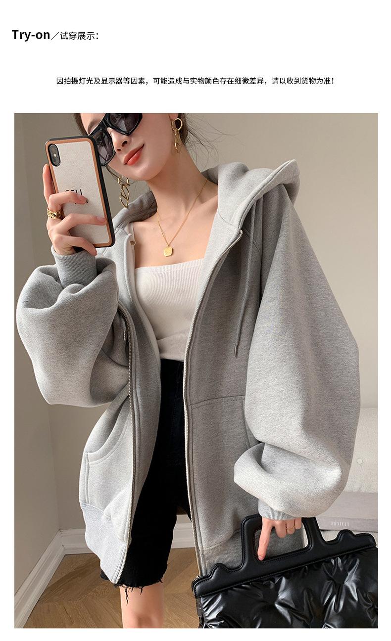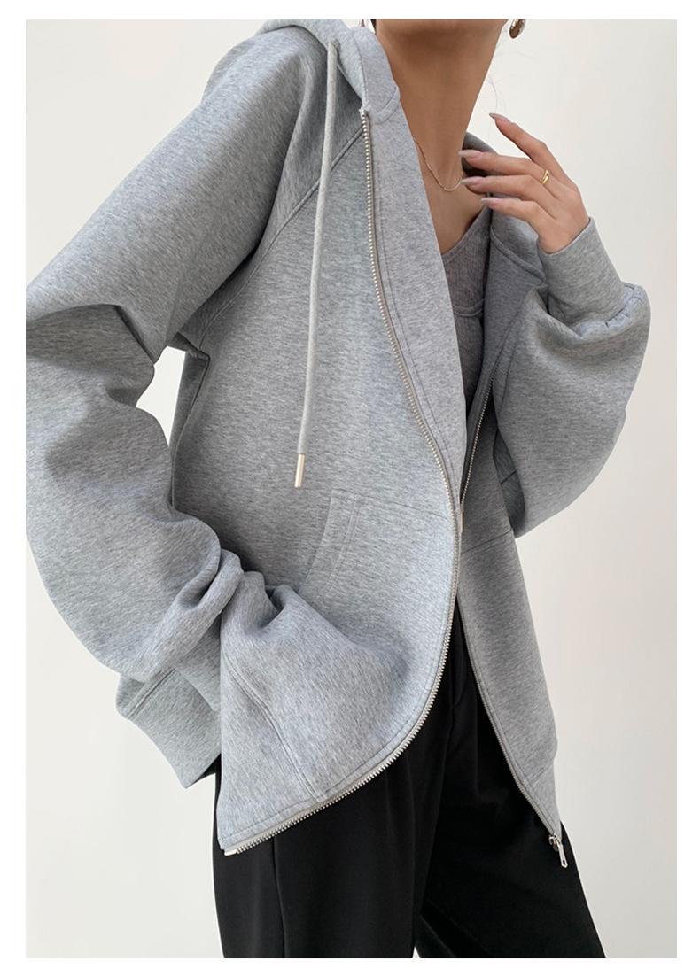 Chamarra Sudadera con Capucha Gris para Mujer 2025 Otoño e Invierno Nuevo Estilo Gruesa con Forro Polar Versátil Suelta Cárdigan con Cierre Top