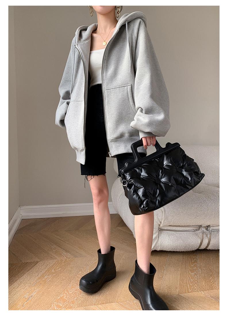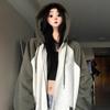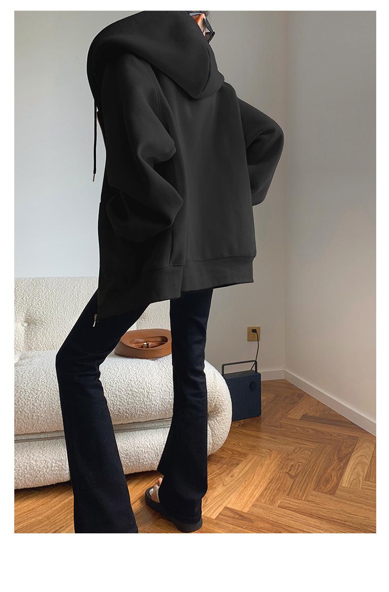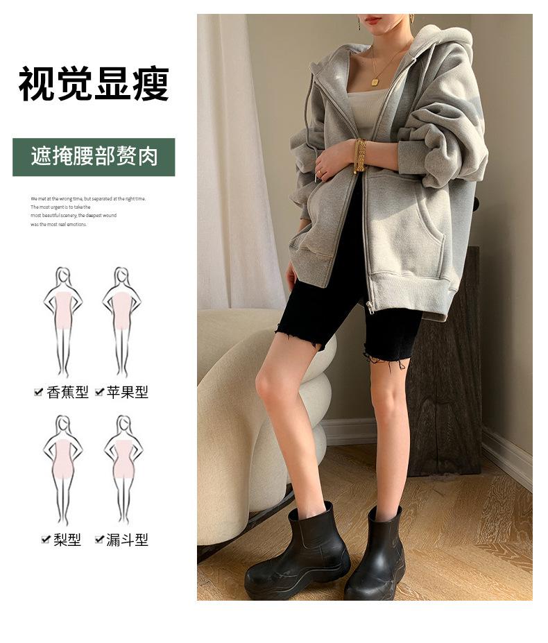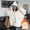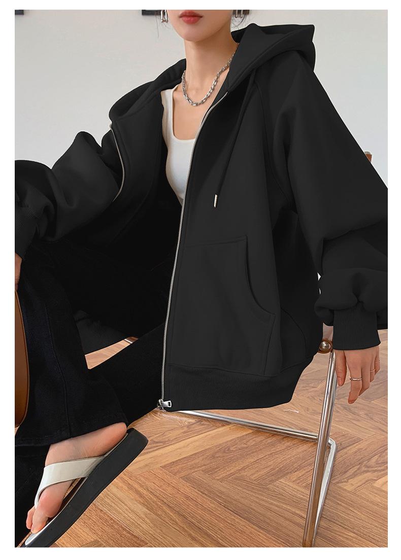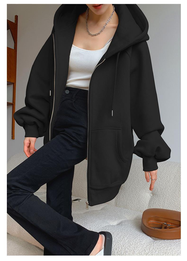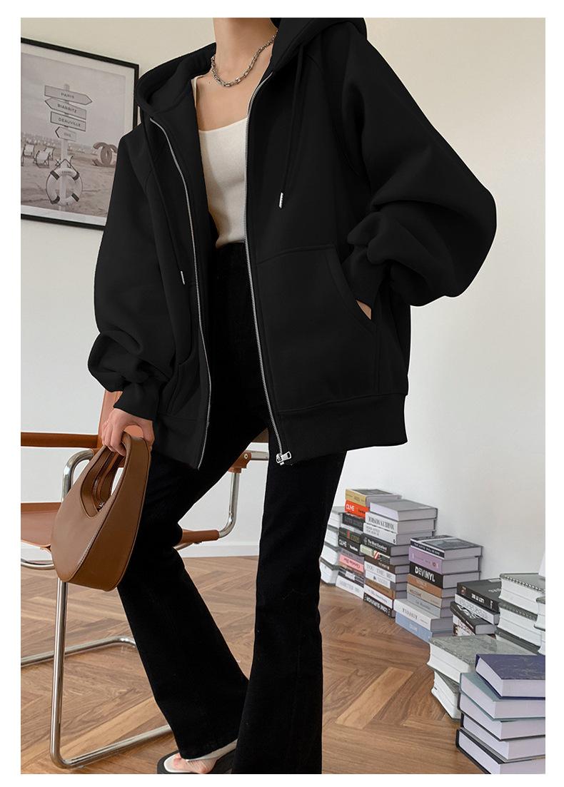 Chamarra Sudadera con Capucha Gris para Mujer 2025 Otoño e Invierno Nuevo Estilo Gruesa con Forro Polar Versátil Suelta Cárdigan con Cierre Top