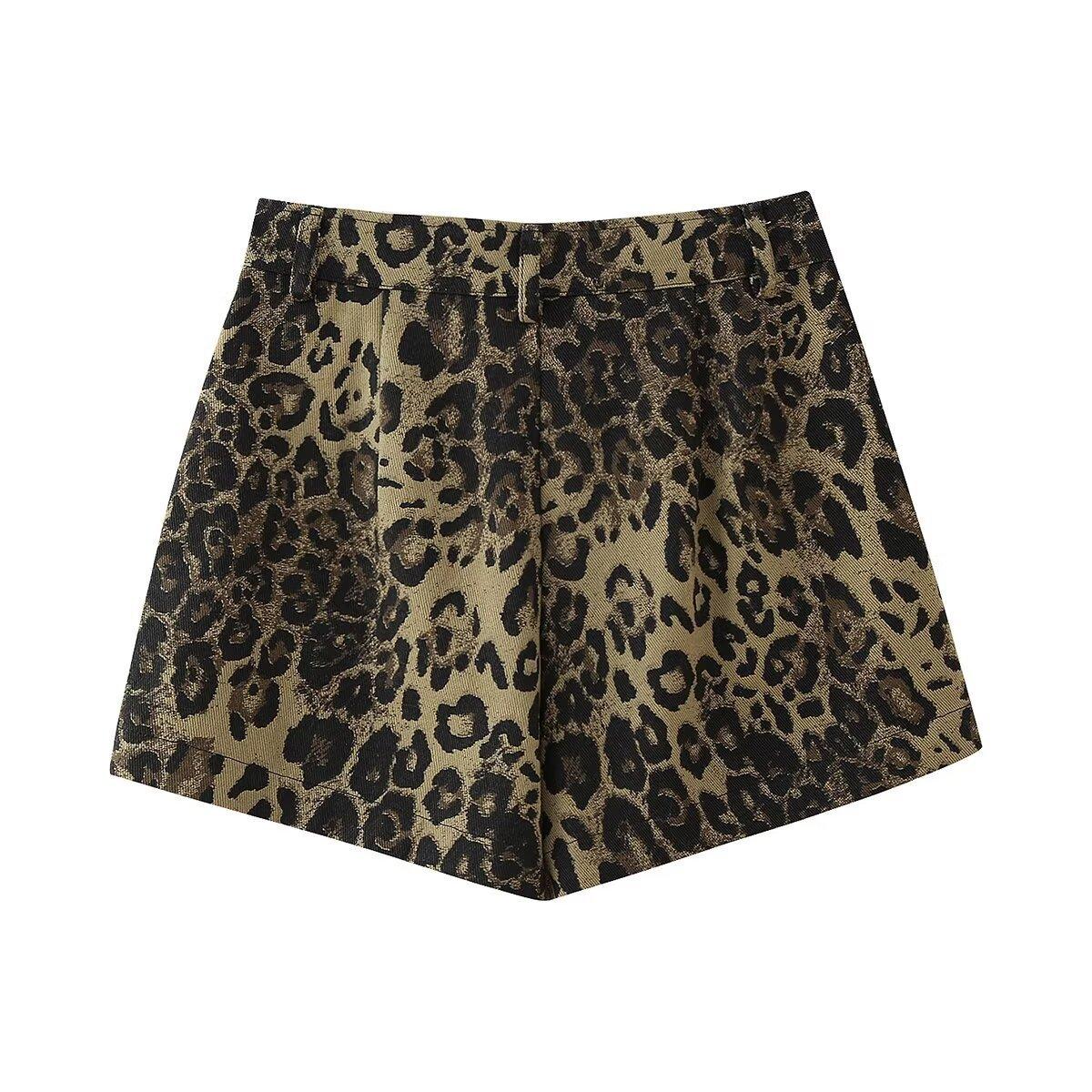 Pantalones cortos con estampado de leopardo de cintura alta para mujer, estilo europeo y americano, de verano 2024, para comercio transfronterizo de Amazon