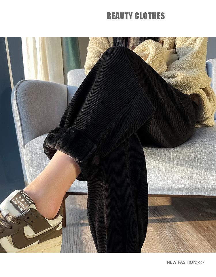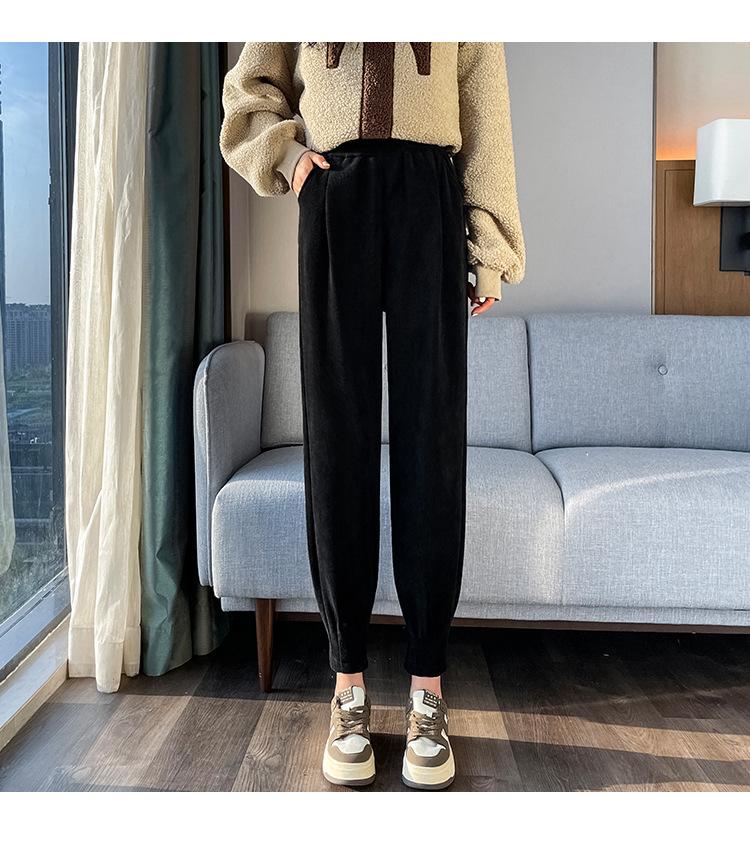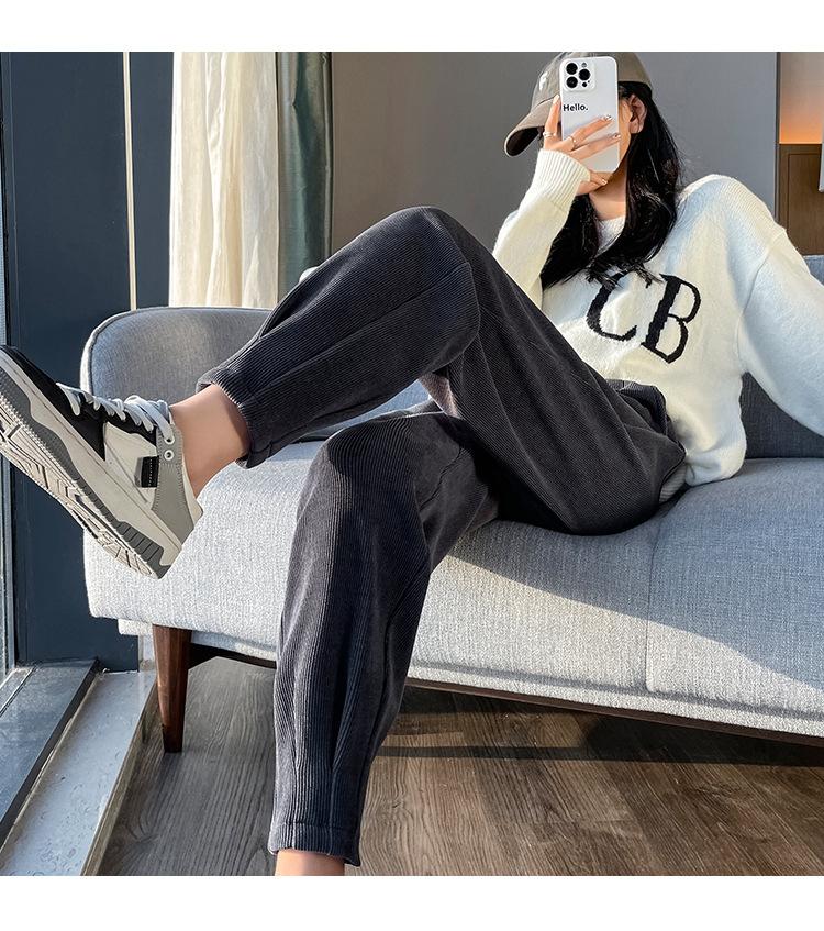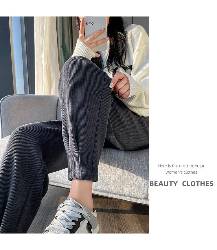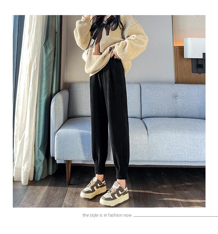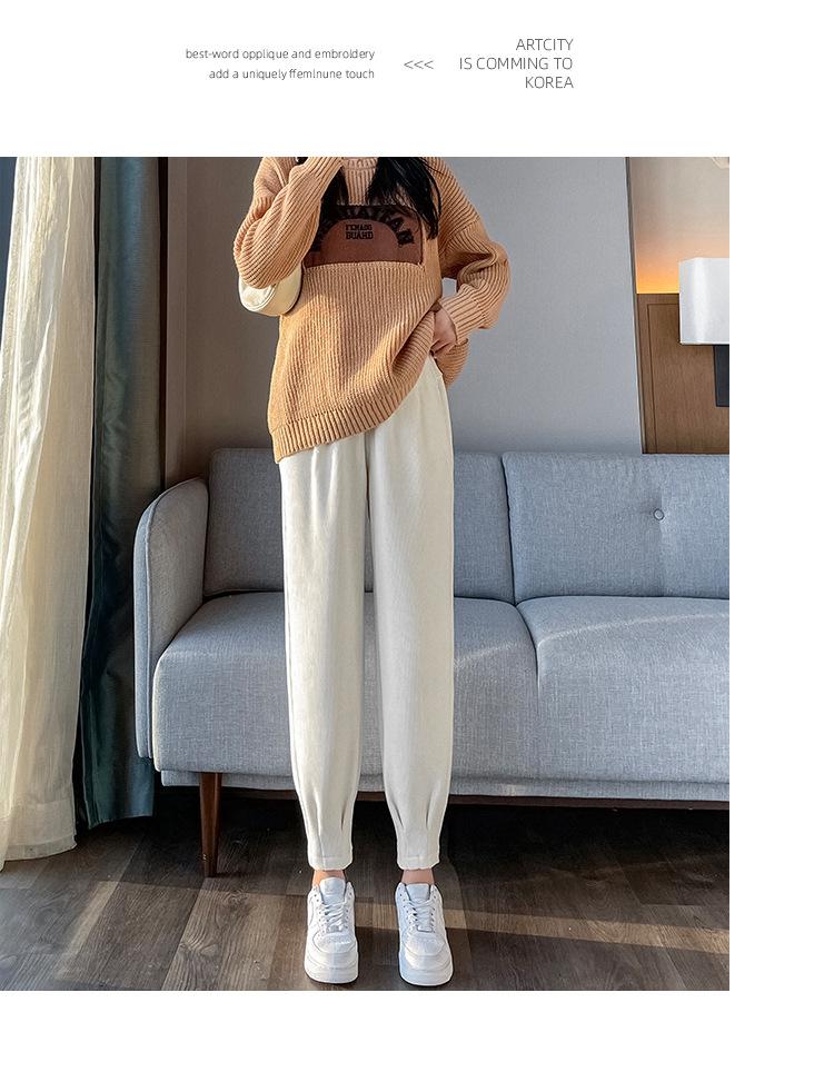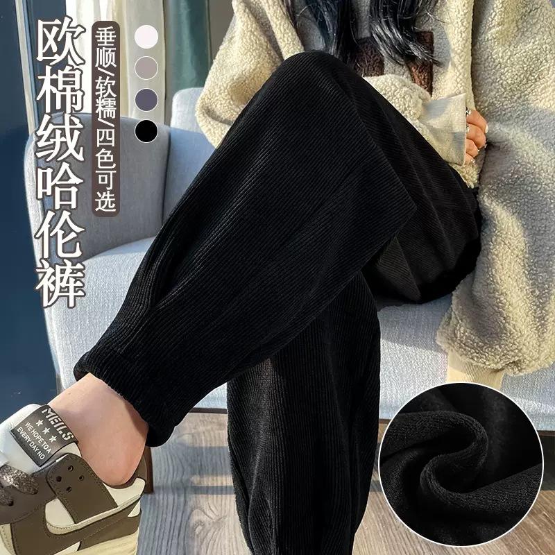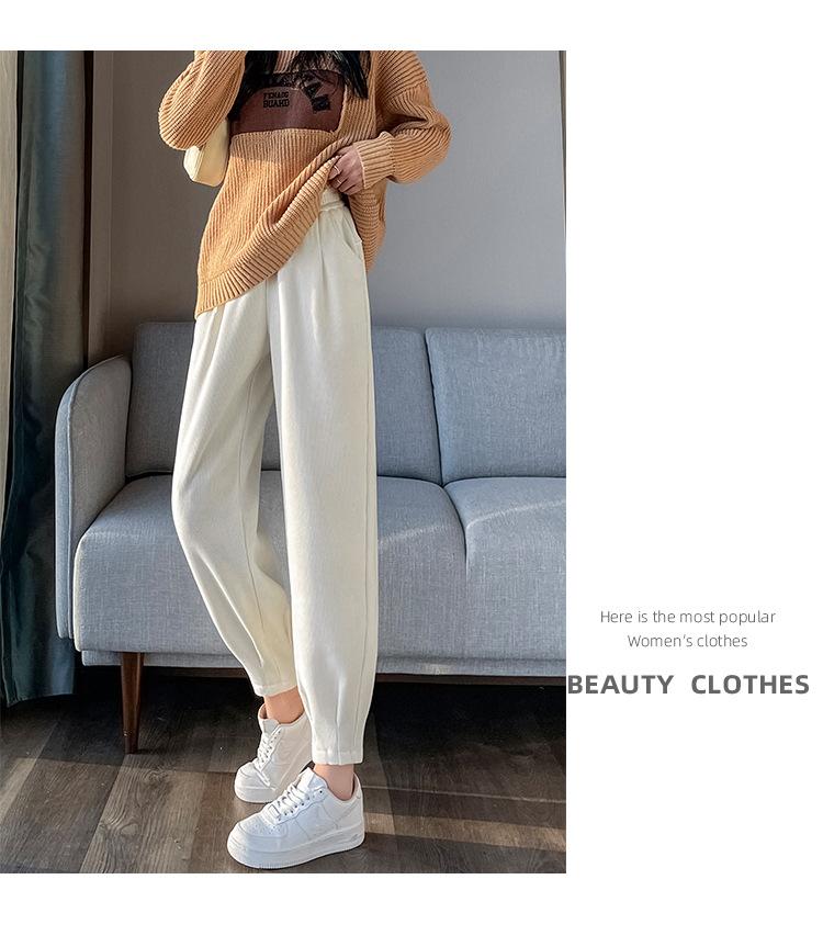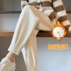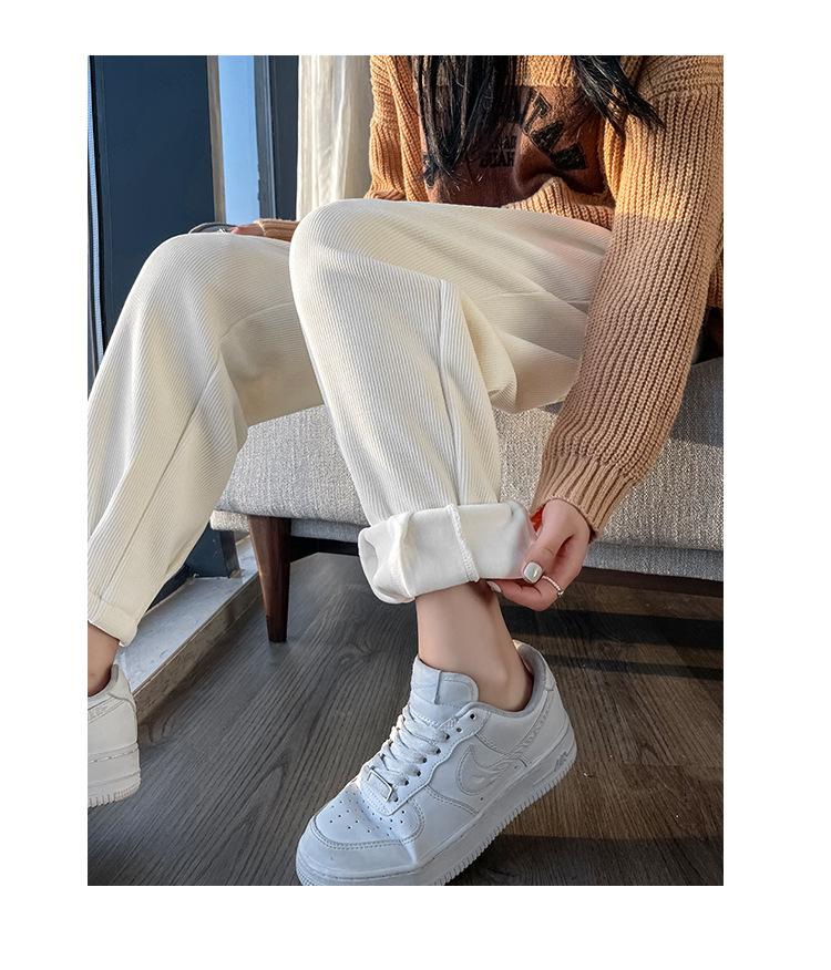Pantalones deportivos Harlan con forro polar para mujer, otoño e invierno, pierna pequeña y suelta, informales, novedad de 2024, color arroz blanco rábano.
