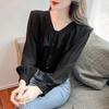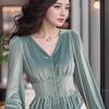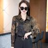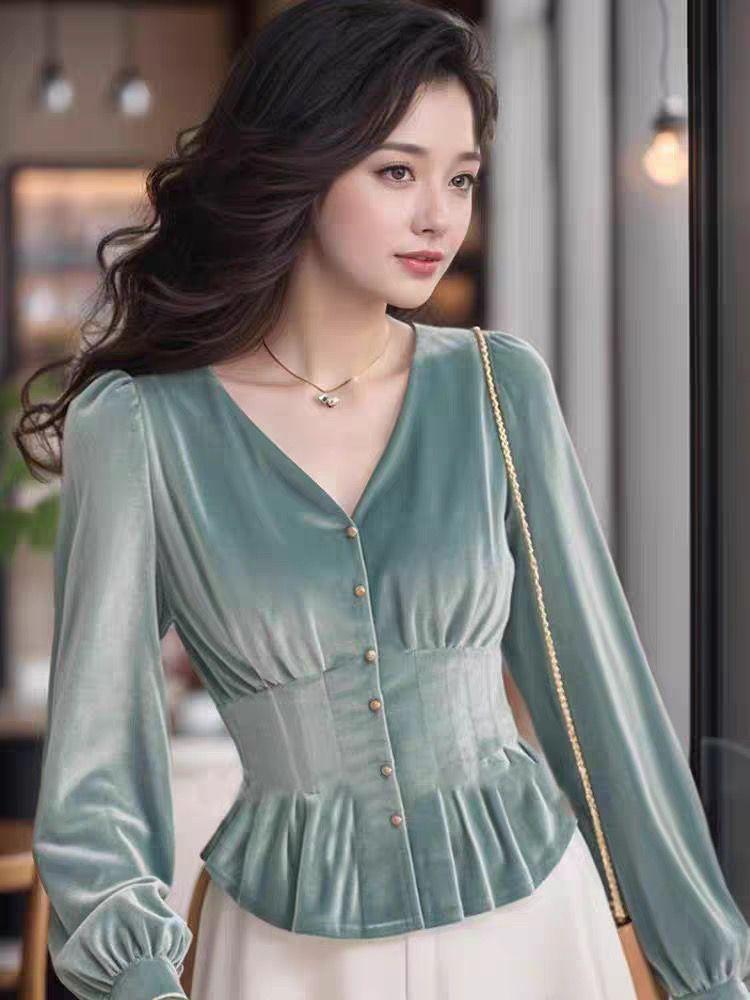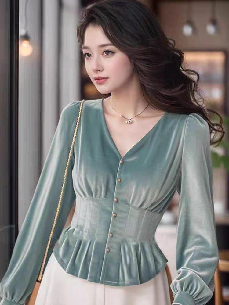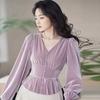 Camisa de manga larga de terciopelo para mujer, otoño 2024, nueva moda, estilo occidental, top morado de moda para principios de otoño.
