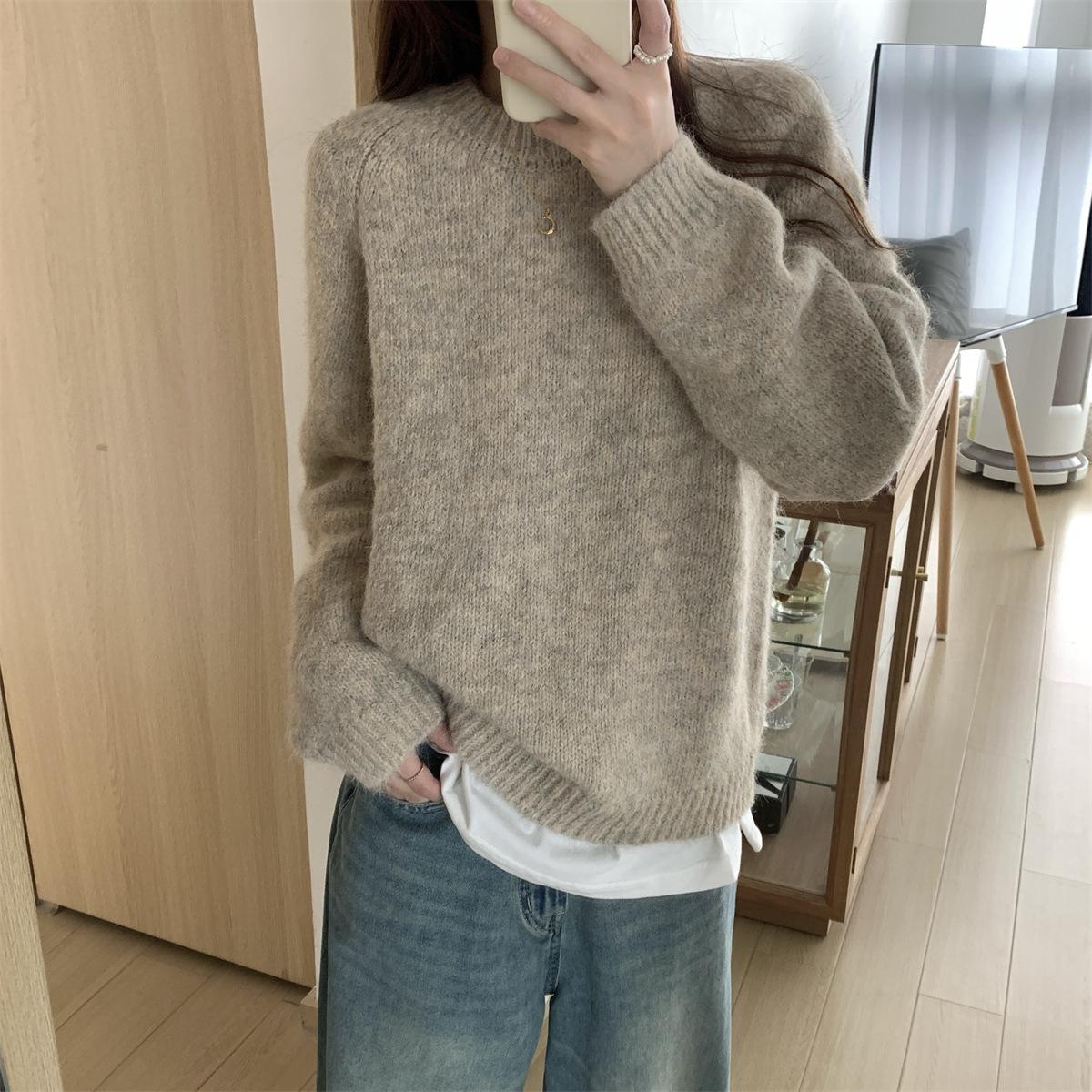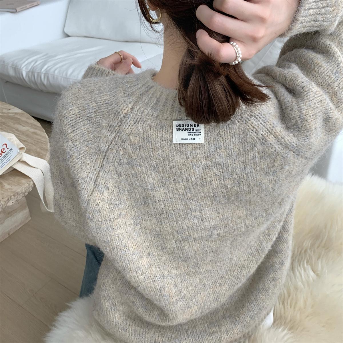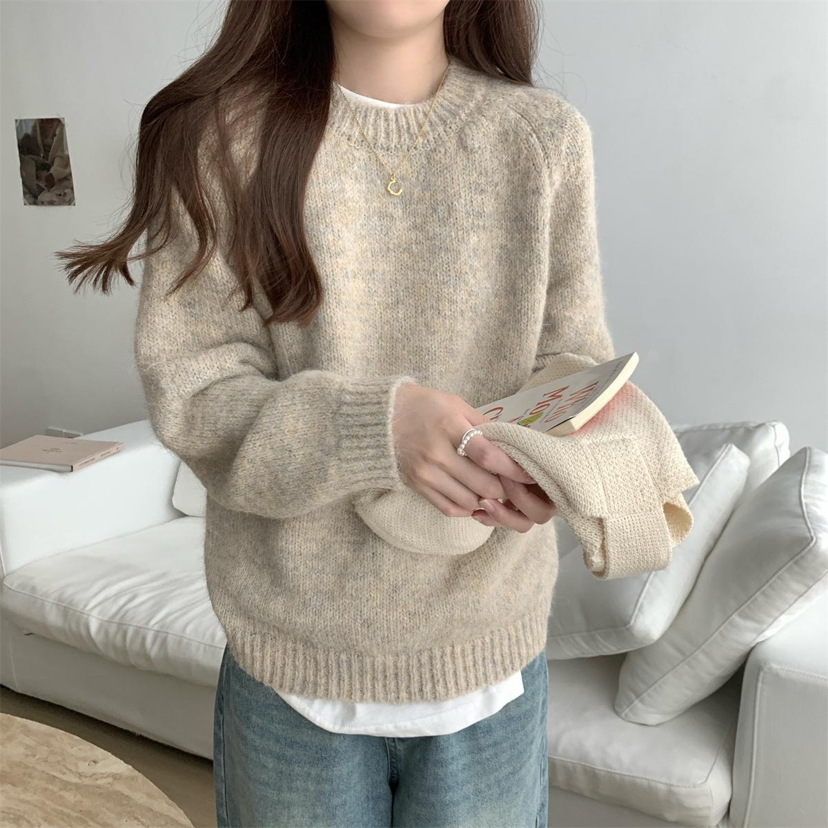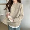 Camisa de punto suave y encerada, holgada, estilo coreano, de manga larga y cuello redondo, estilo Joker, otoño e invierno, 71434