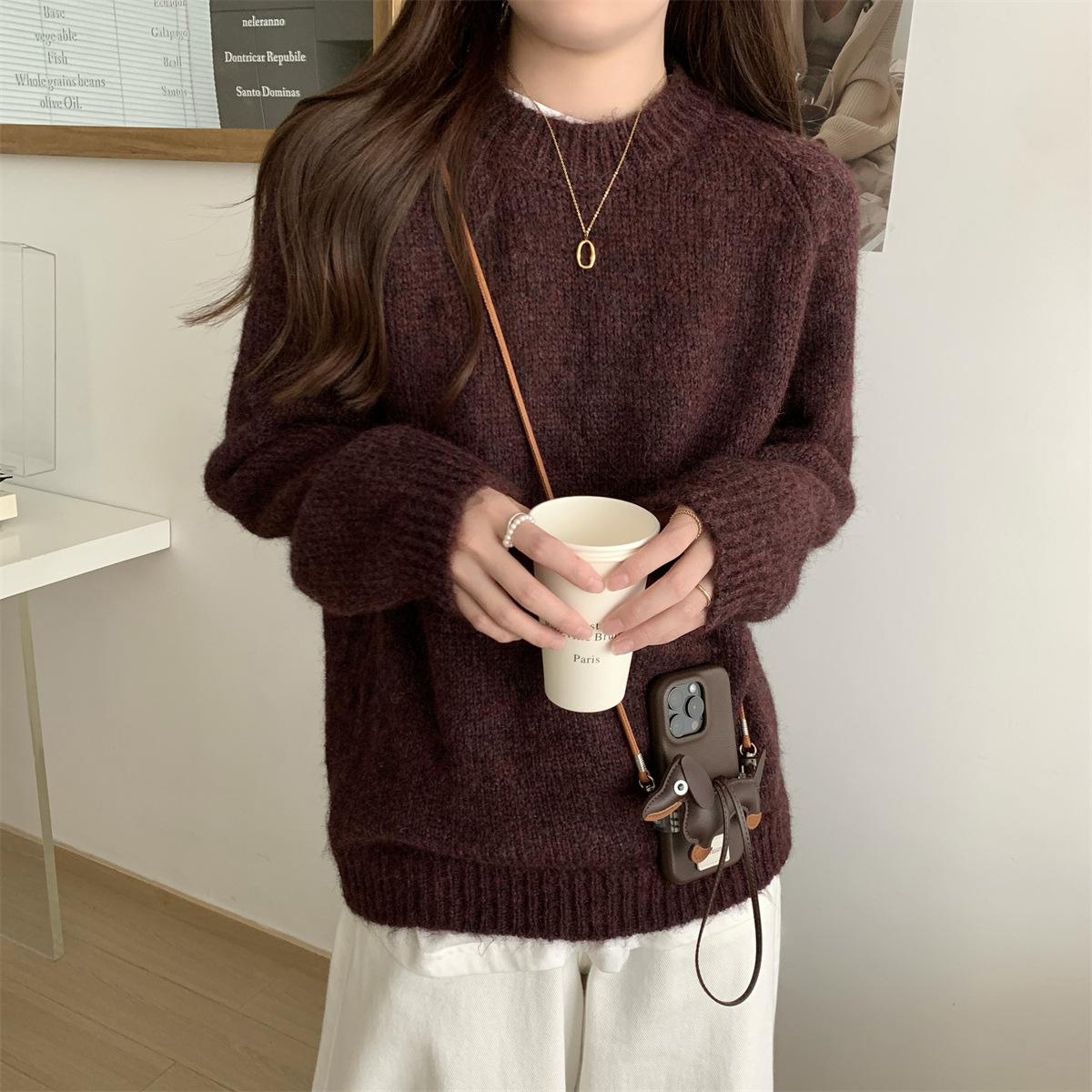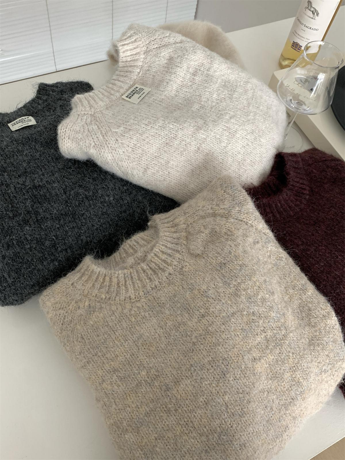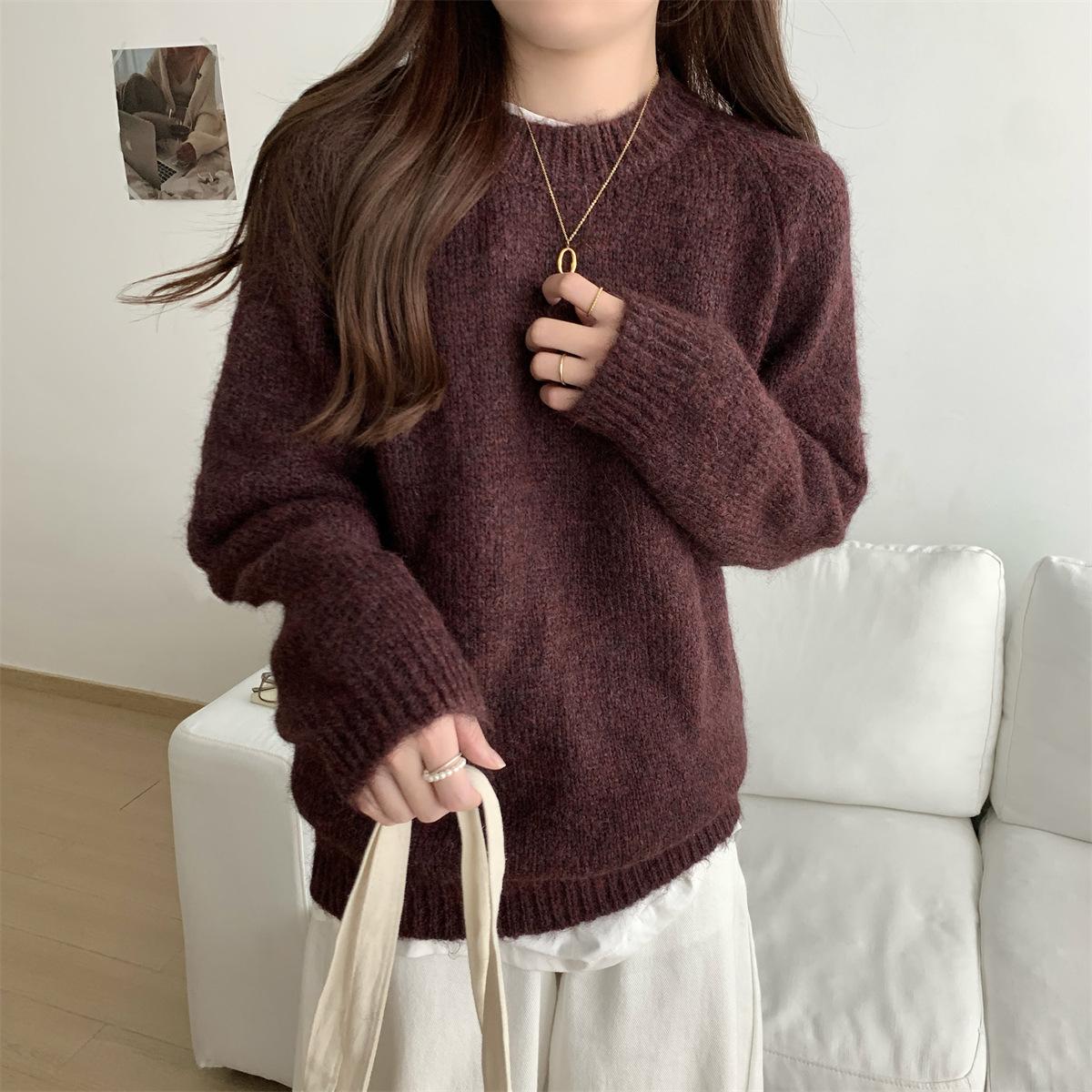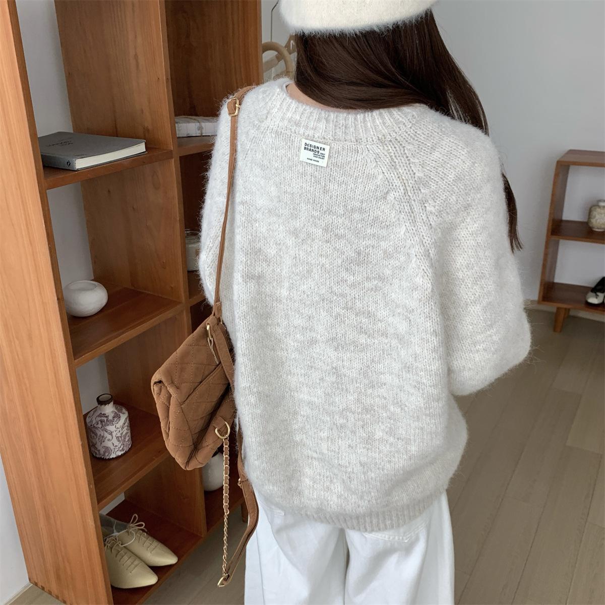 Camisa de punto suave y encerada, holgada, estilo coreano, de manga larga y cuello redondo, estilo Joker, otoño e invierno, 71434