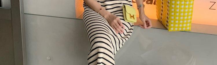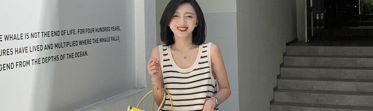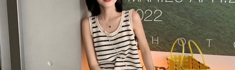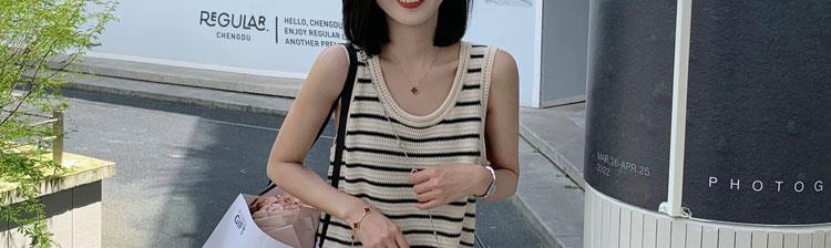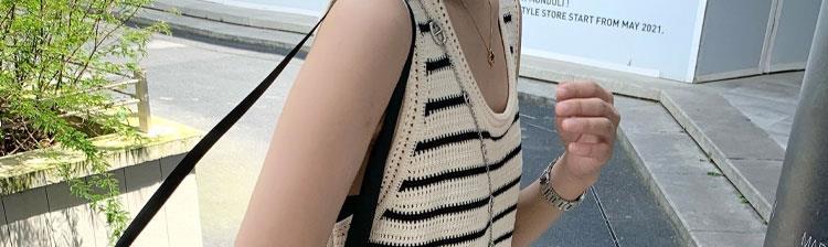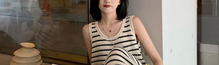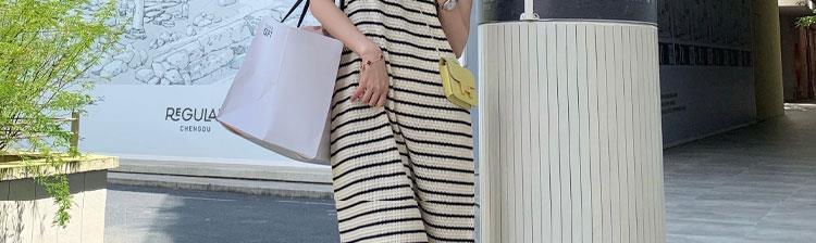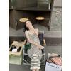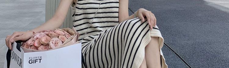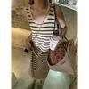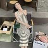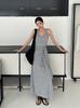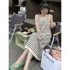 Vestido de Punto a Rayas sin Mangas para Mujer Falda Larga Holgada Abertura Cuello Redondo Verano 2023 Aspecto Adelgazante y Versátil