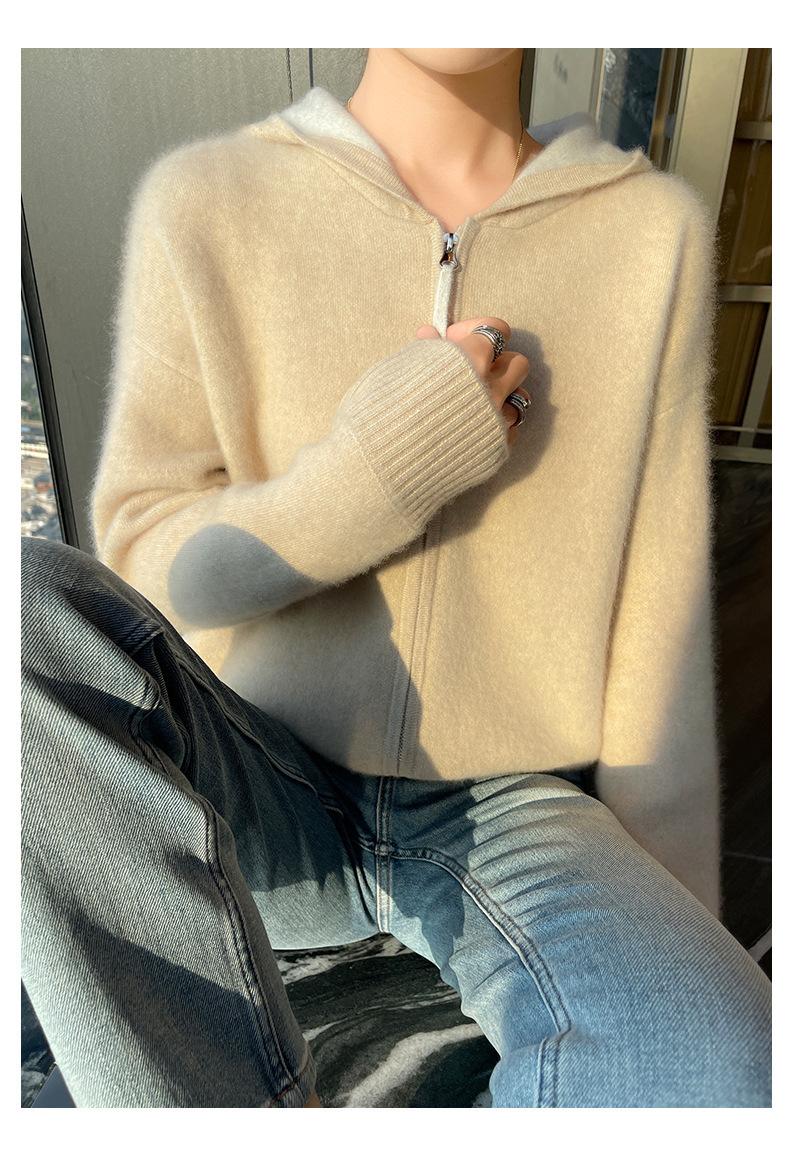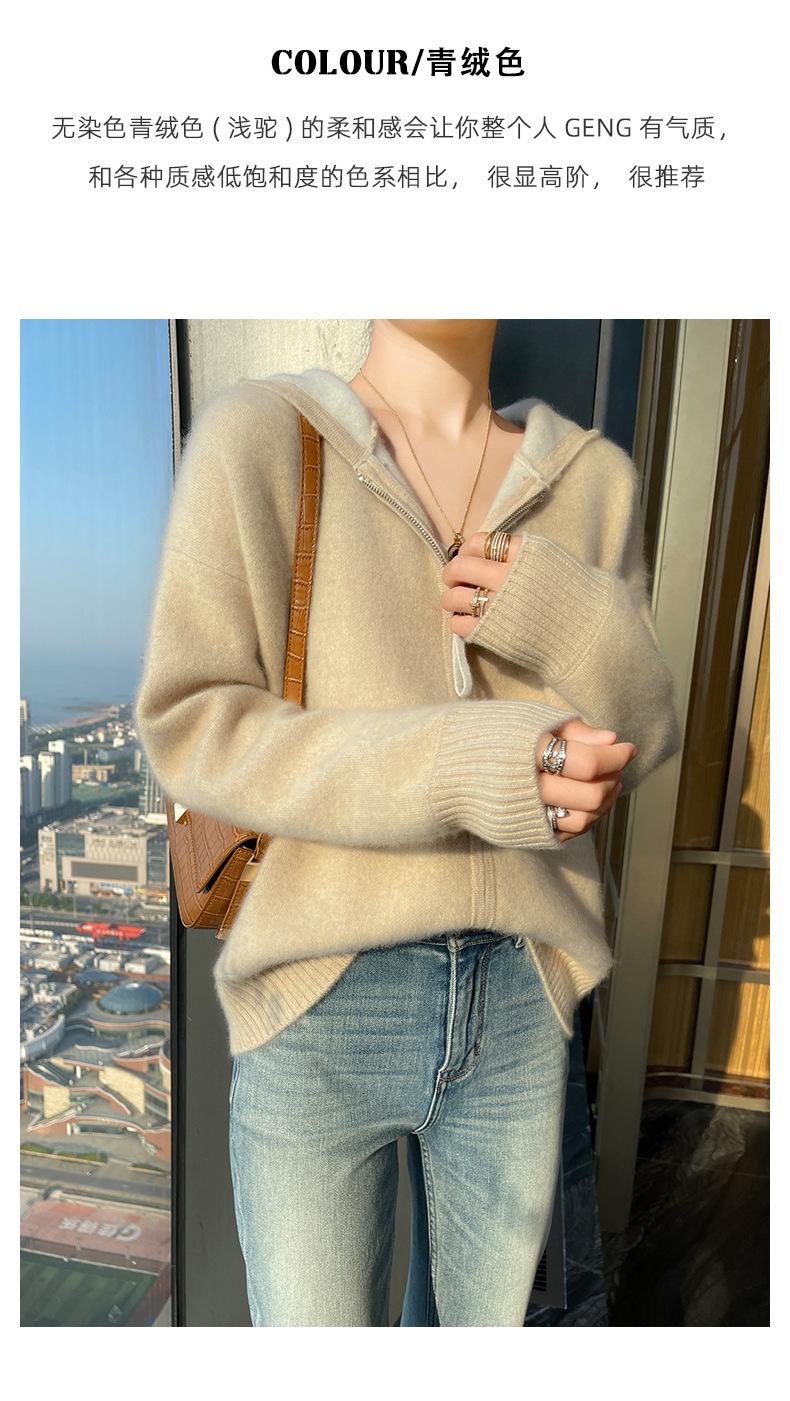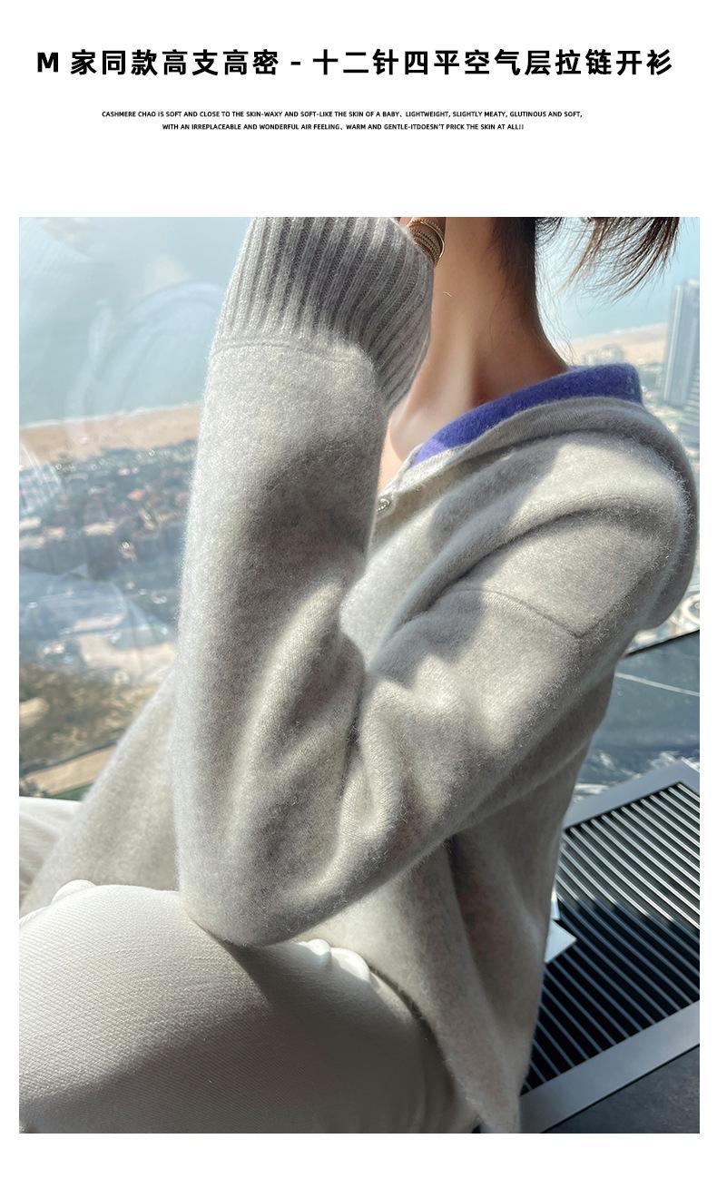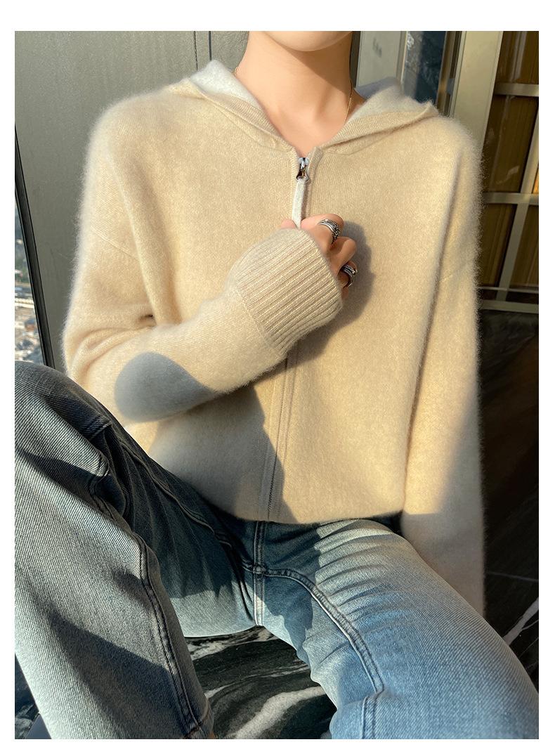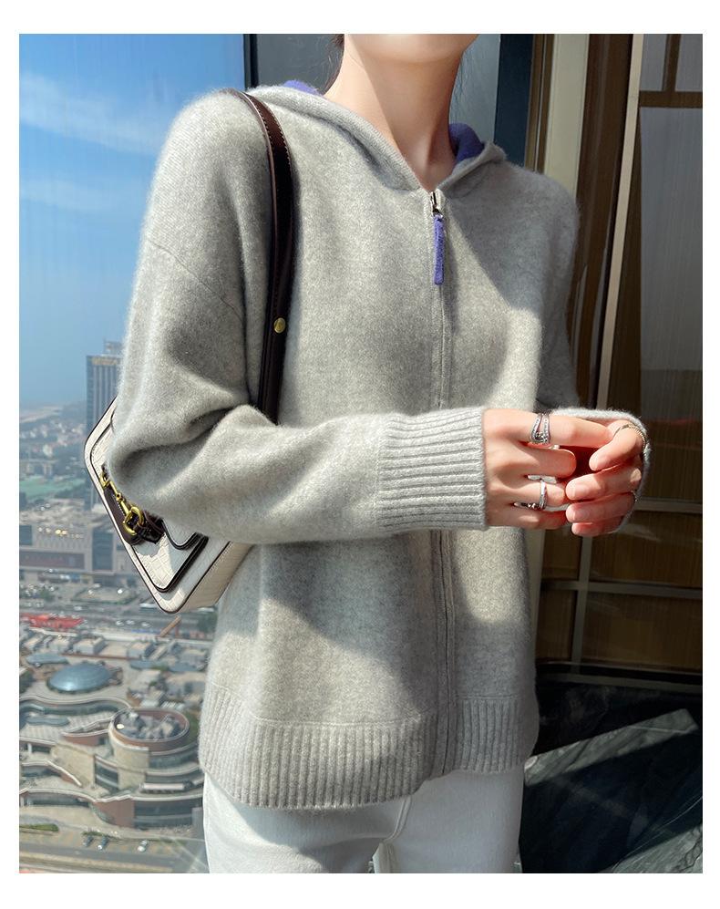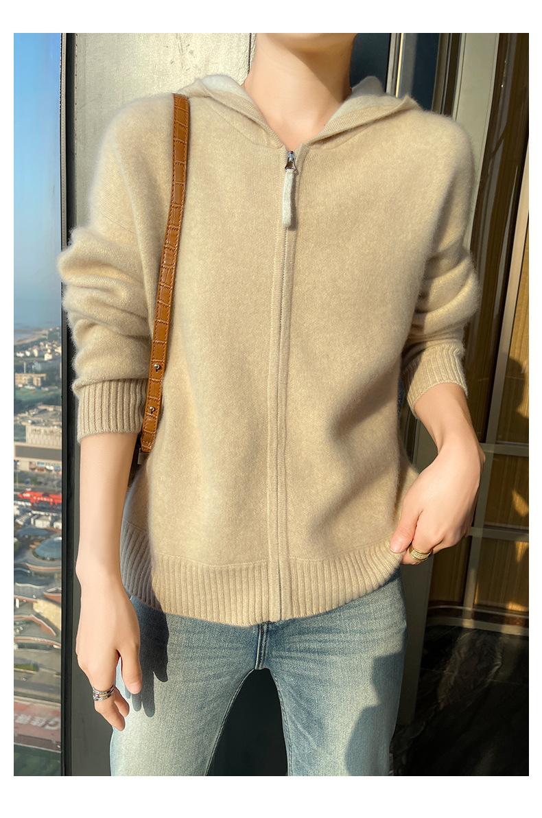 Chaqueta holgada y gruesa de cachemira para otoño e invierno, cárdigan cálido con capucha y cremallera, chaqueta básica de punto de lana para mujer