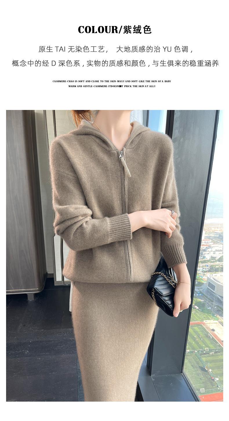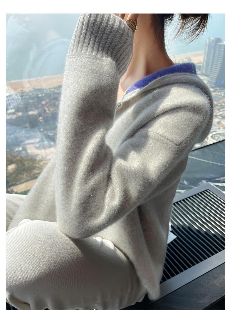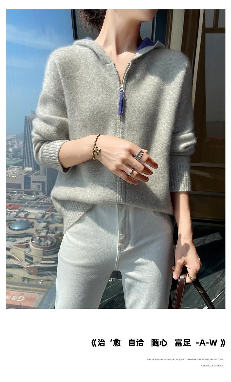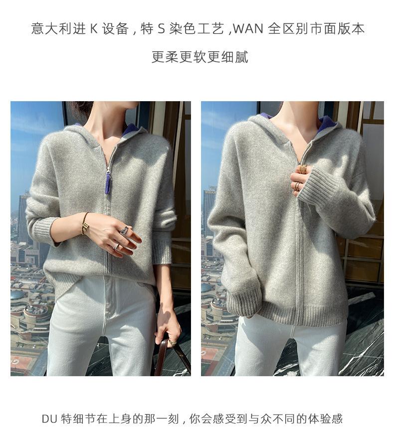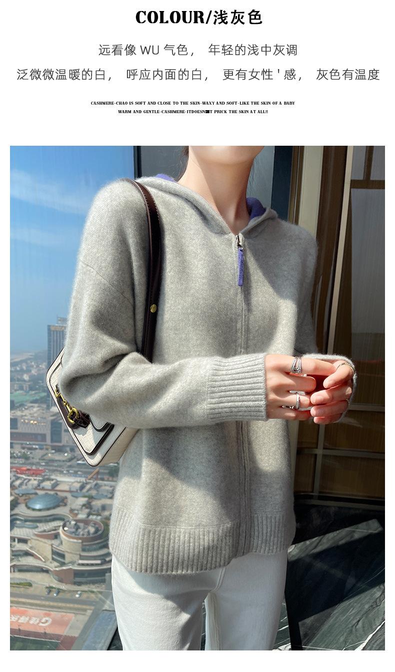 Chaqueta holgada y gruesa de cachemira para otoño e invierno, cárdigan cálido con capucha y cremallera, chaqueta básica de punto de lana para mujer