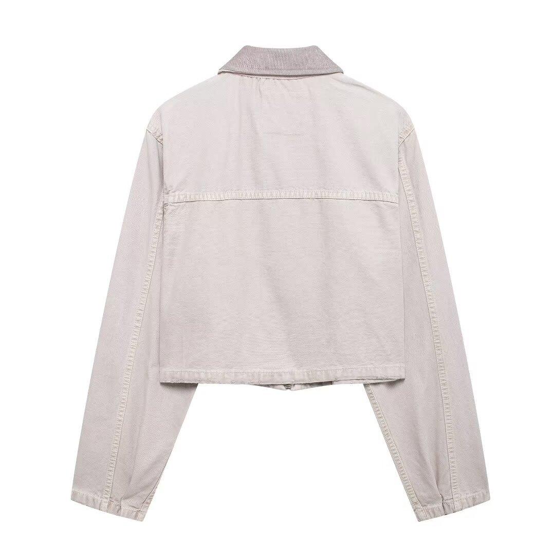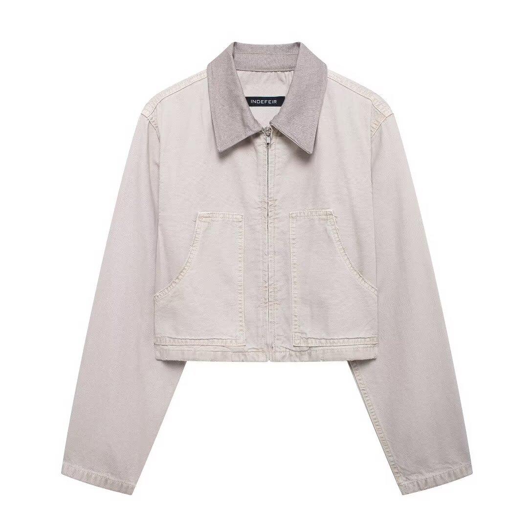 Chaqueta corta con solapa de color en contraste para mujer europea y americana de comercio exterior transfronterizo de Amazon, otoño e invierno de 2024