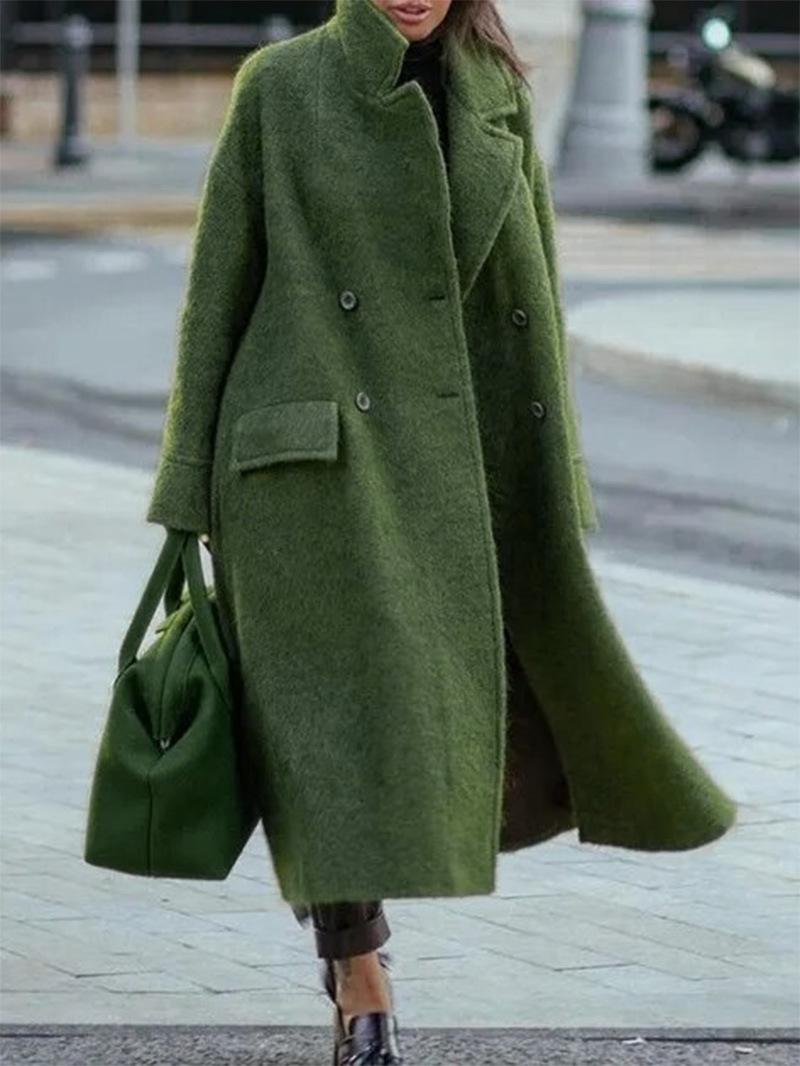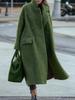 Abrigo de lana cálido de color sólido largo informal de Amazon para mujer, primavera, otoño e invierno, Europa y Estados Unidos, transfronterizo.