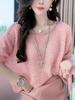 Otoño 2024 Nueva Llegada Suéter de Punto de Manga Larga de Industria Pesada Cuello Redondo Hueco Francés Casual Moda Elegante Top para Mujer Ins