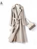 [Abrigo de cachemira para mujer] Nuevo abrigo de otoño e invierno para mujer, de cachemira pura, grueso, serie E, sencillo, de longitud media, con cordones, cómodo