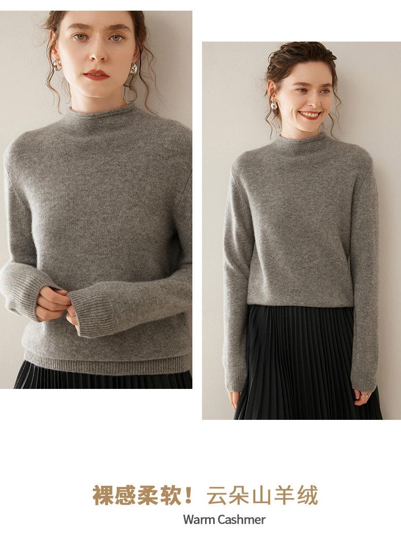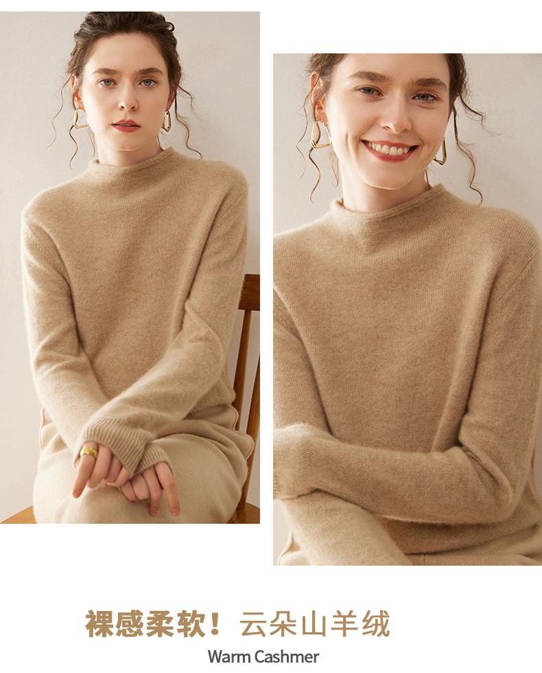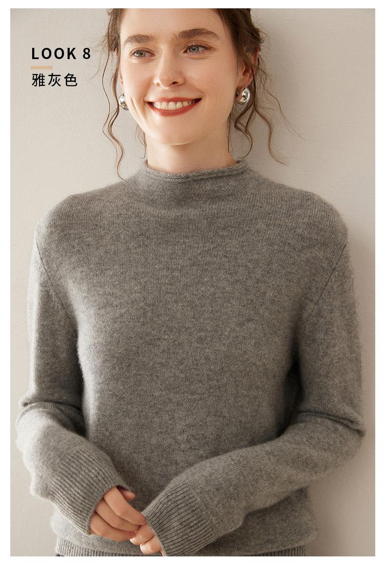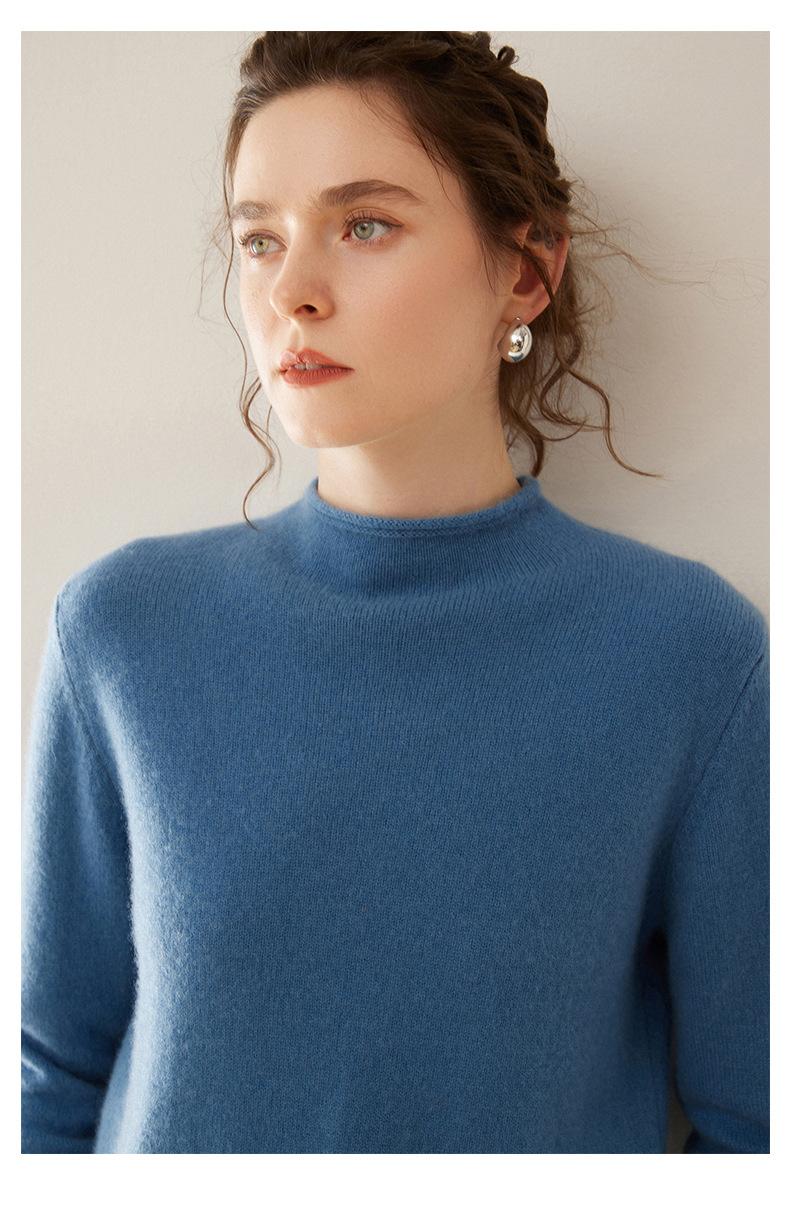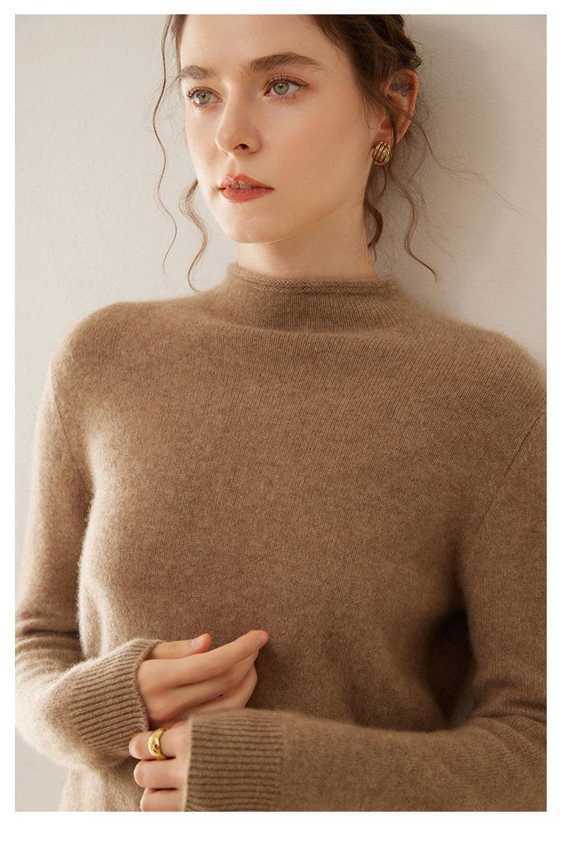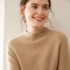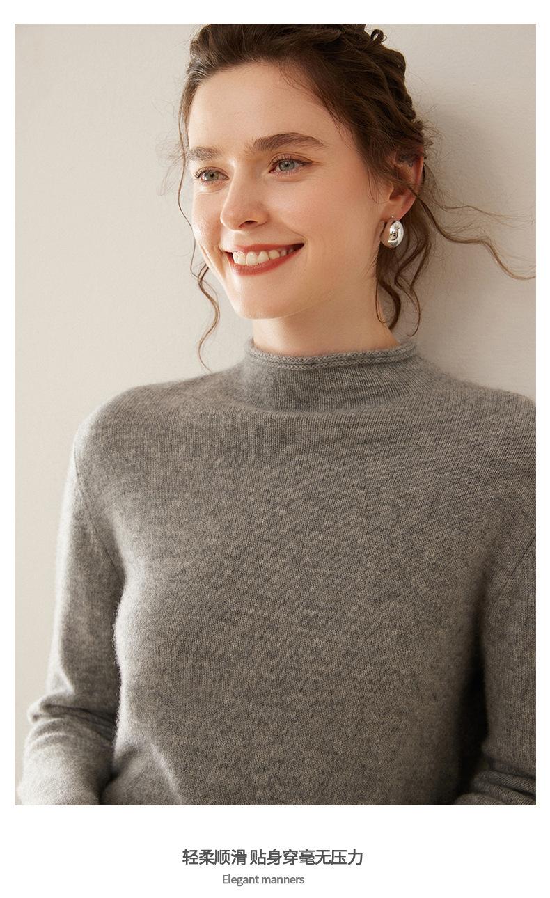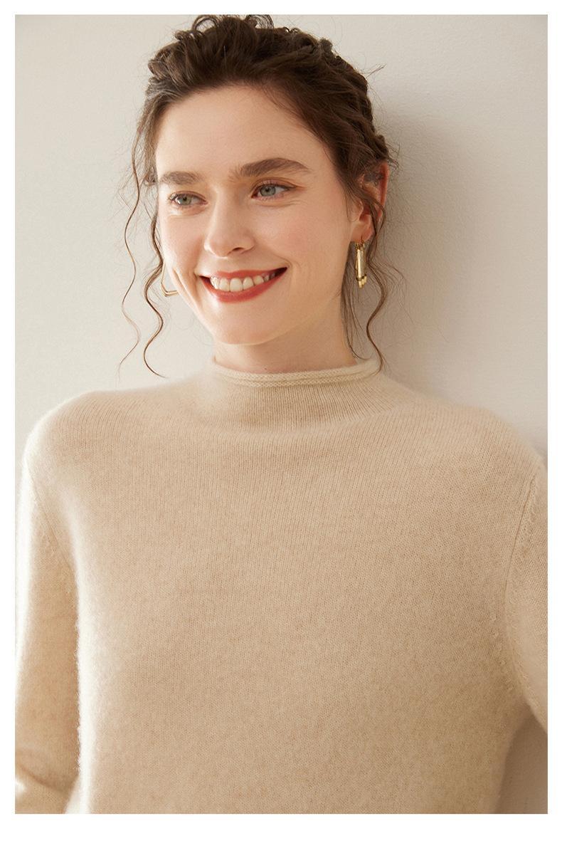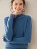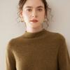 Camisa de punto de cachemira para mujer, de cuello medio alto, con rizo simple y moderno, con suéter grueso, holgado y ajustado de manga larga.