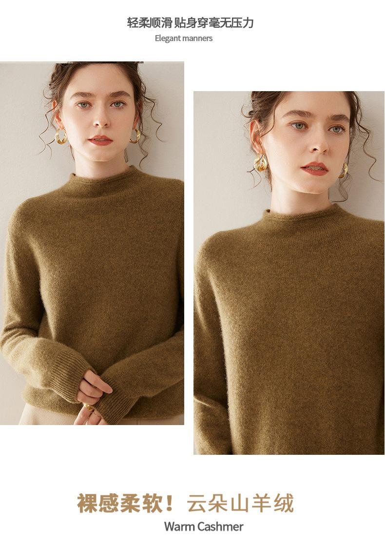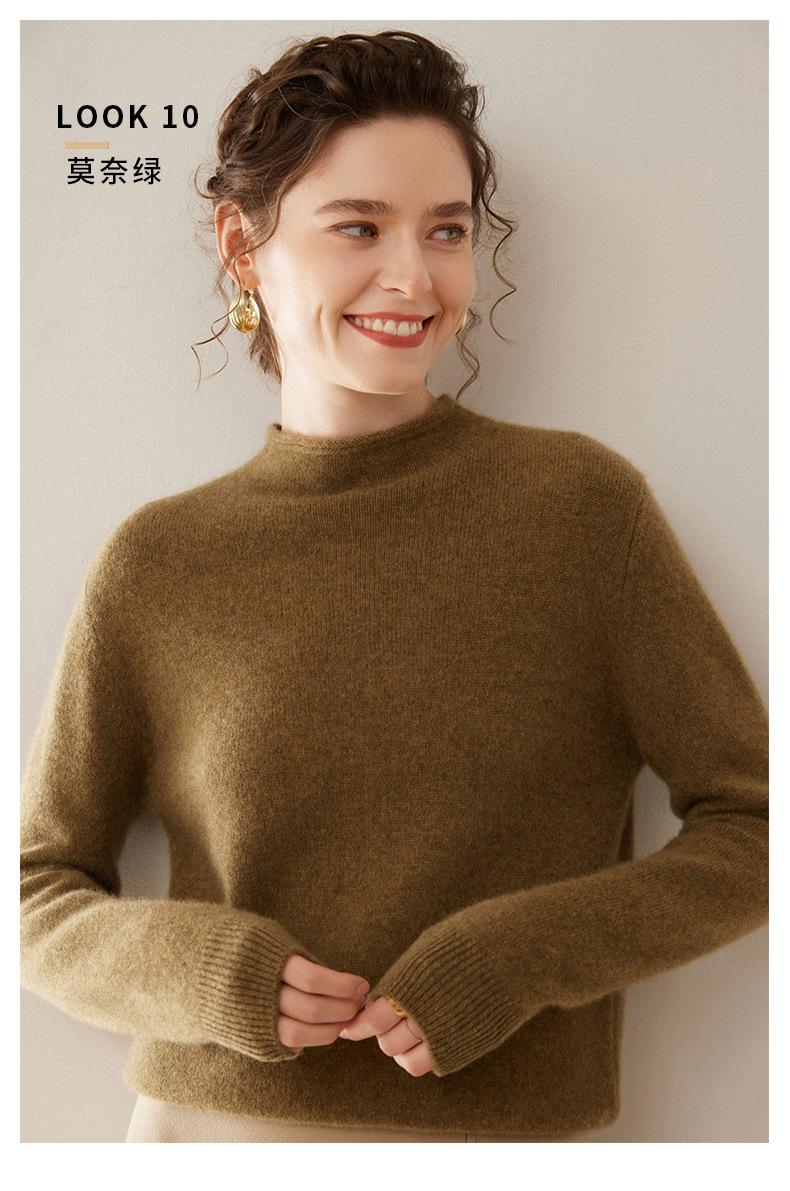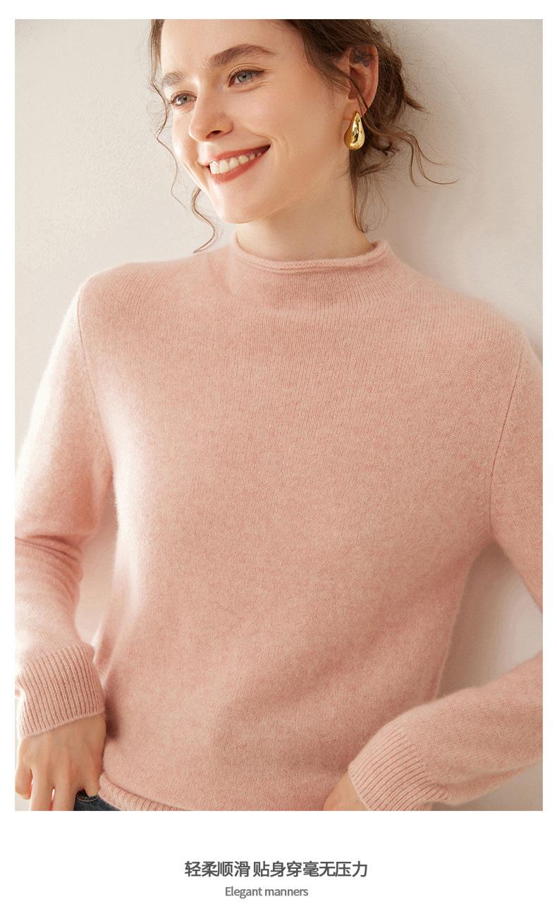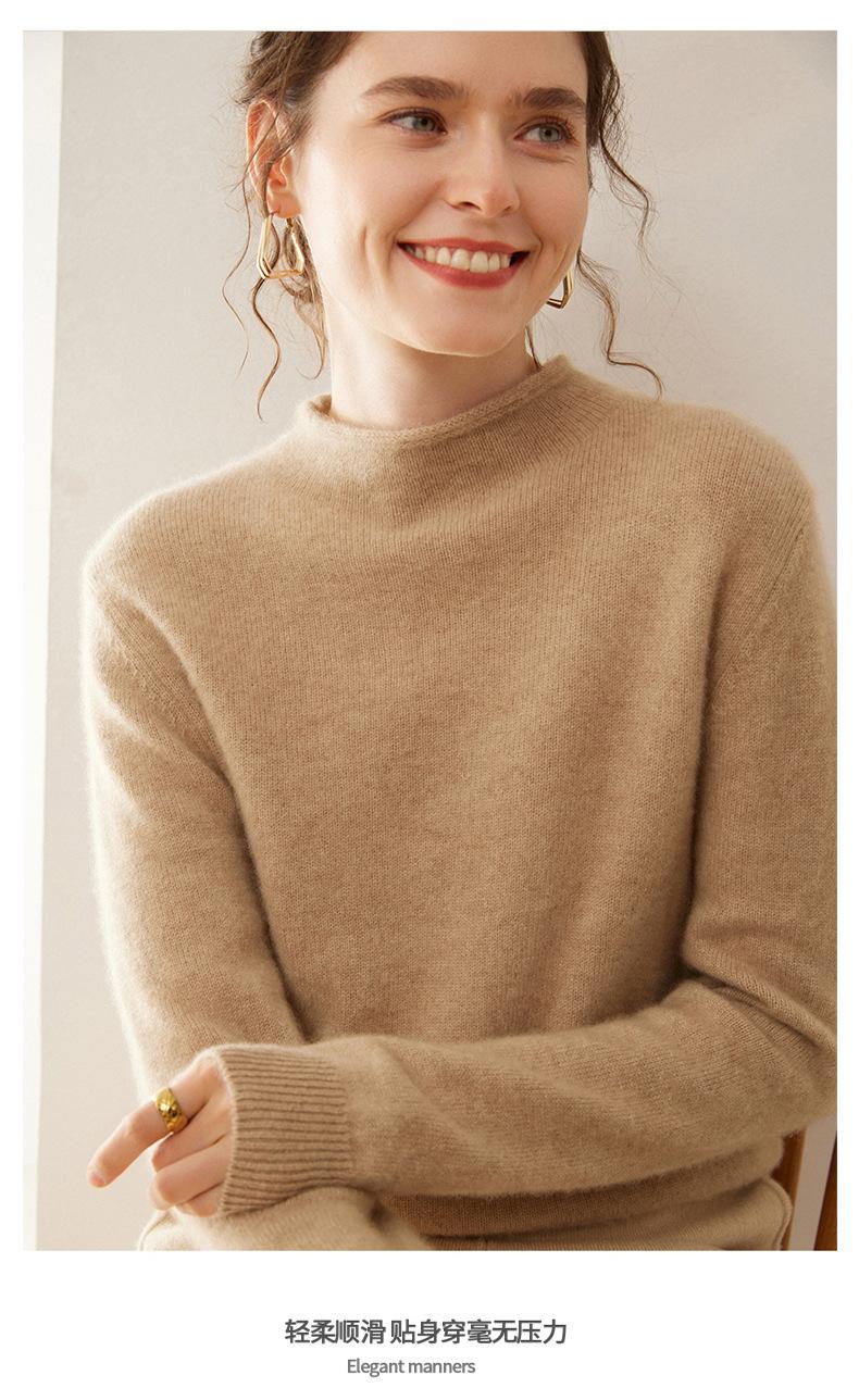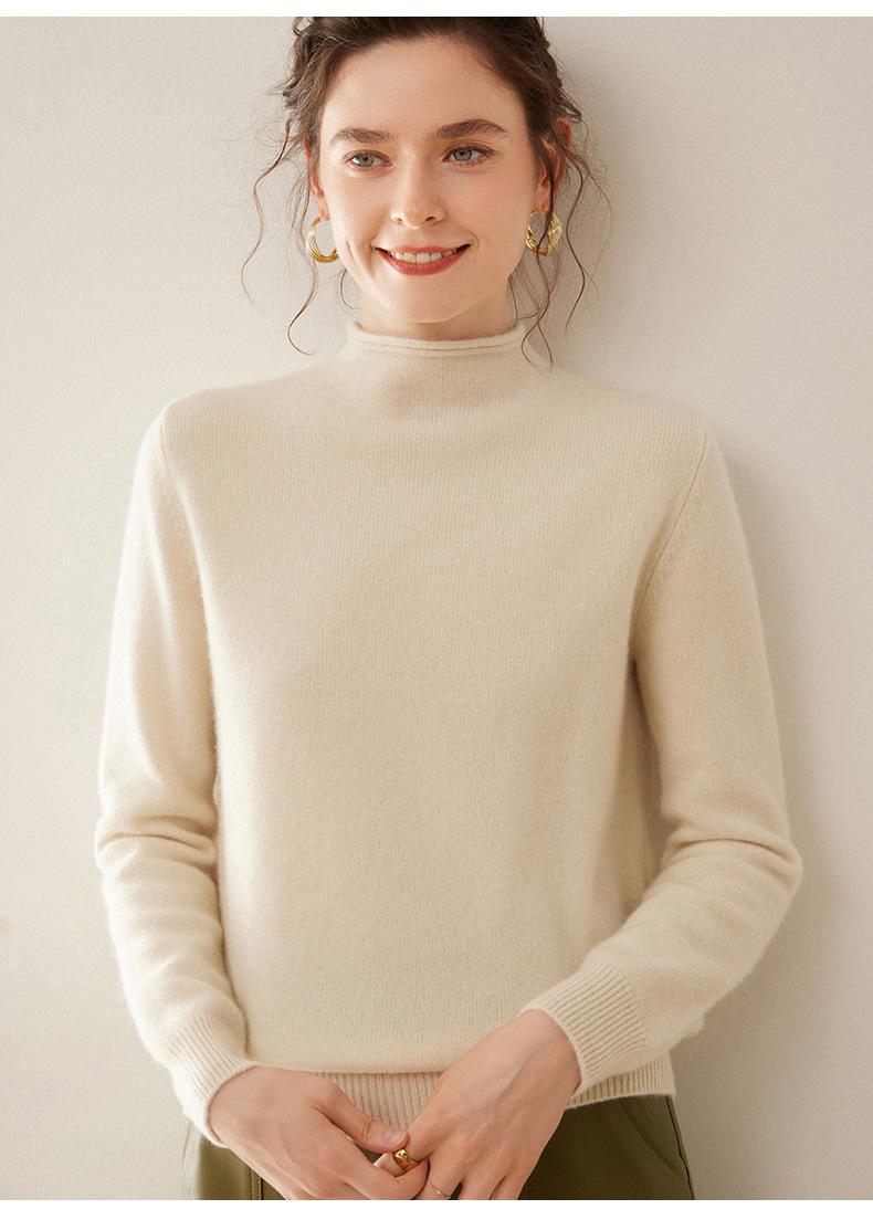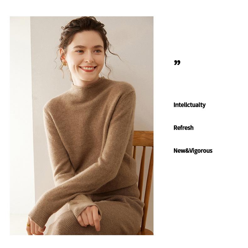 Camisa de punto de cachemira para mujer, de cuello medio alto, con rizo simple y moderno, con suéter grueso, holgado y ajustado de manga larga.
