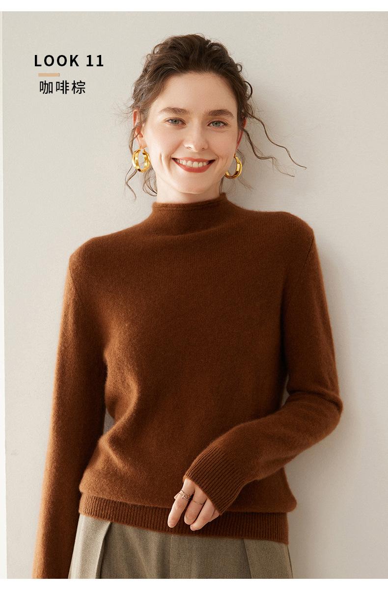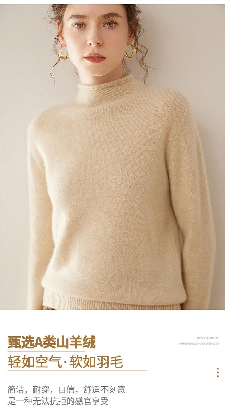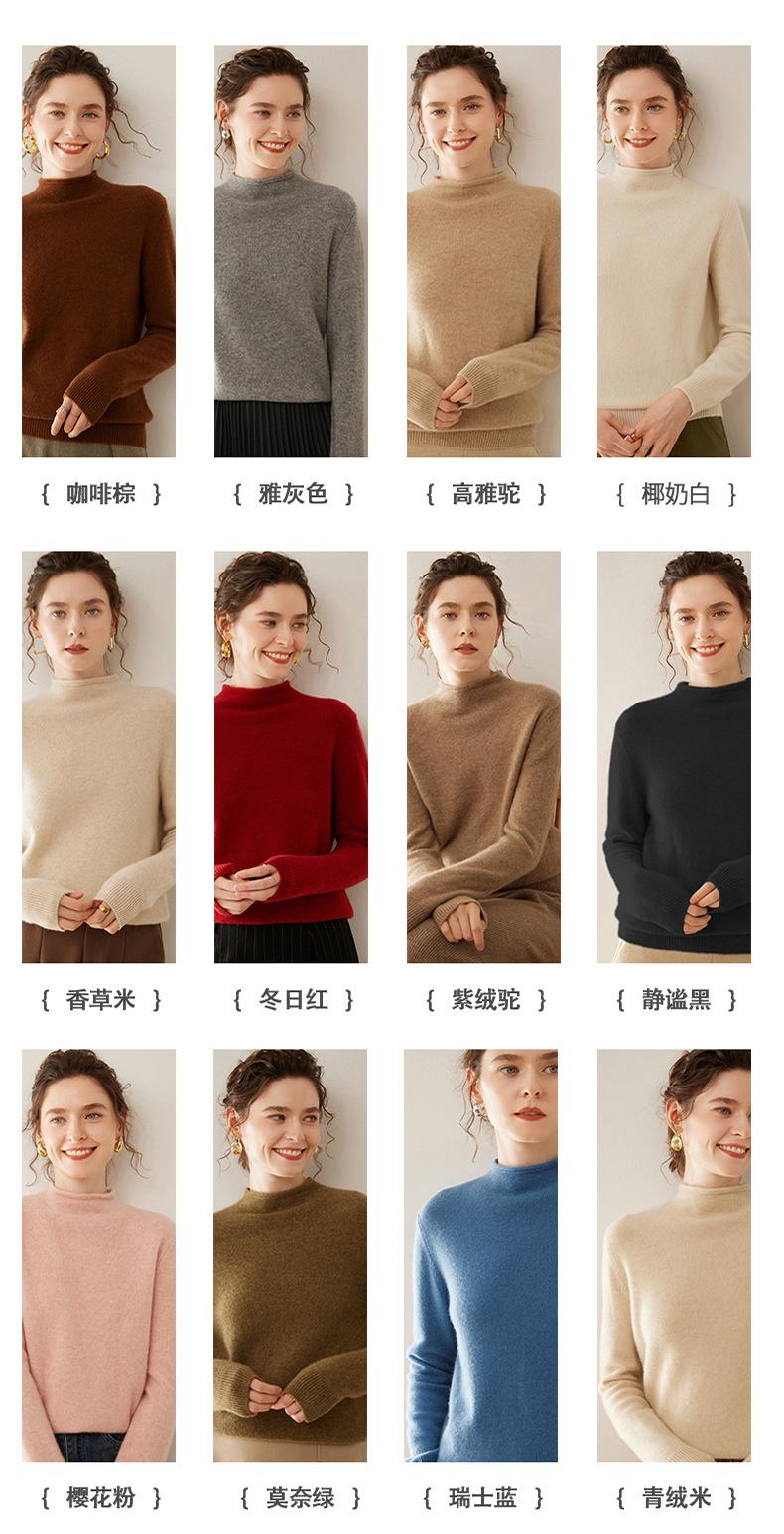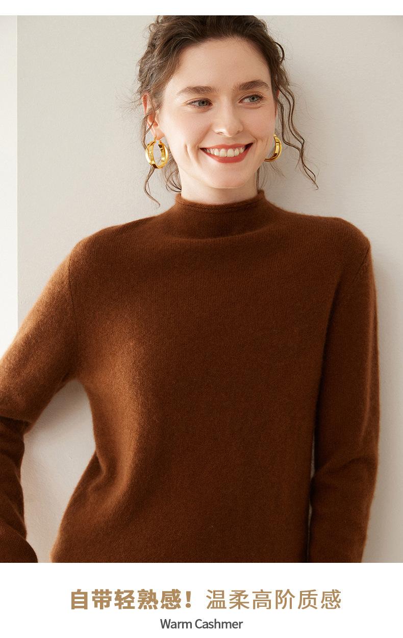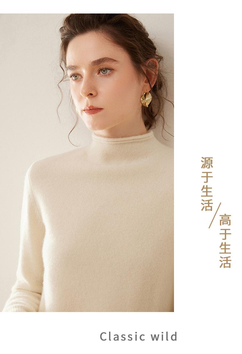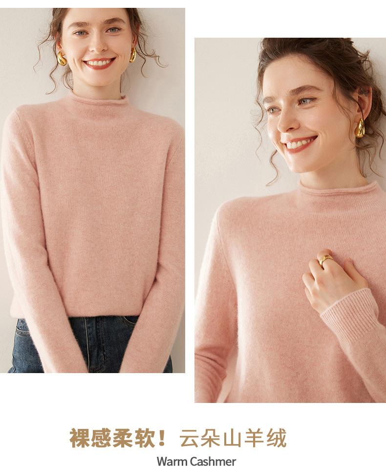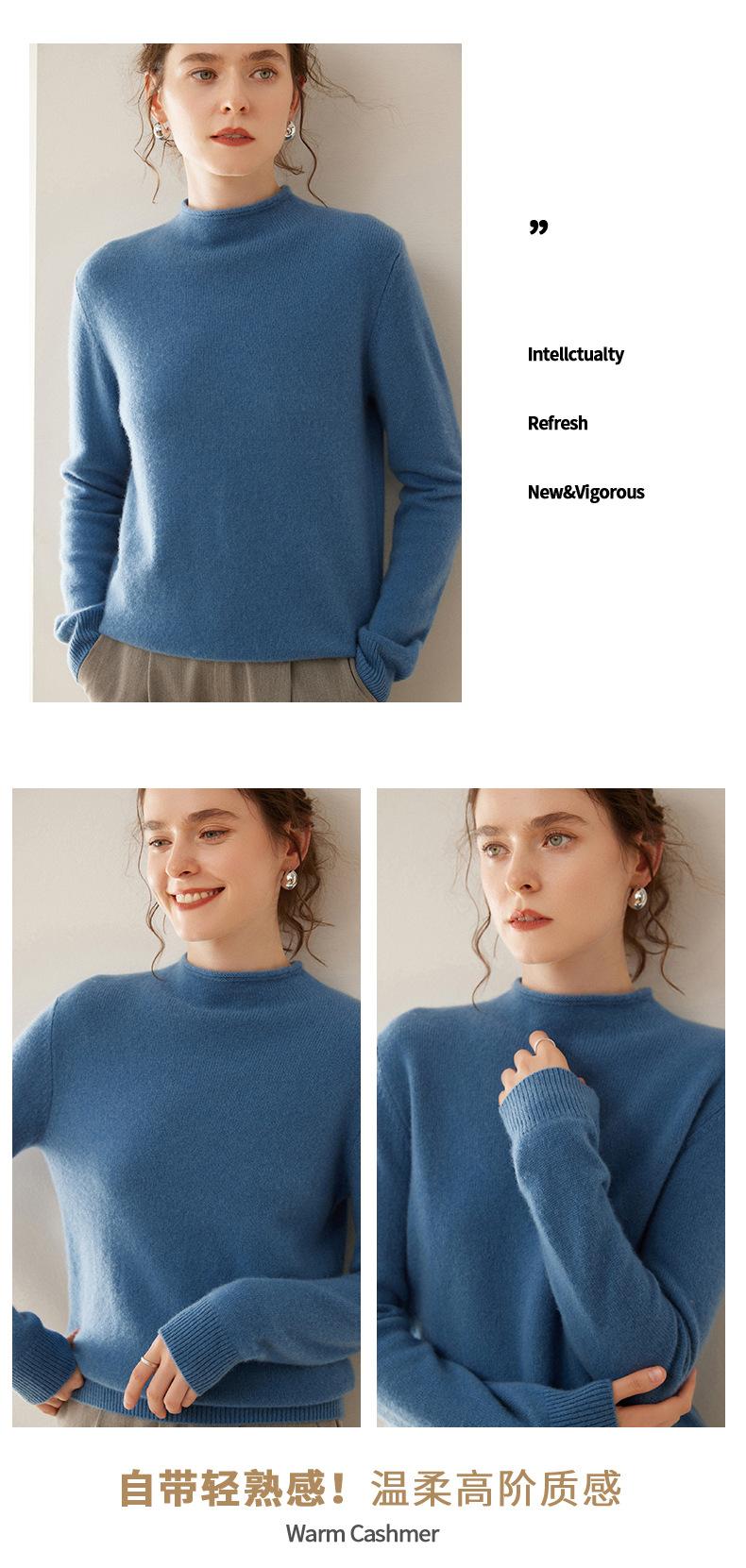 Camisa de punto de cachemira para mujer, de cuello medio alto, con rizo simple y moderno, con suéter grueso, holgado y ajustado de manga larga.