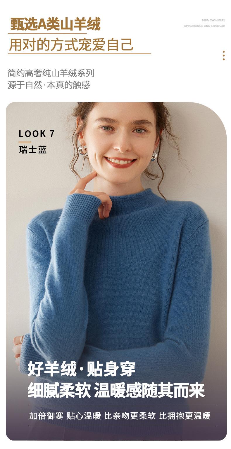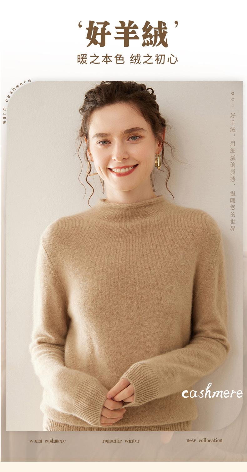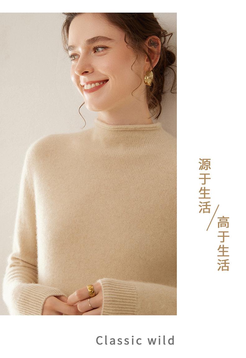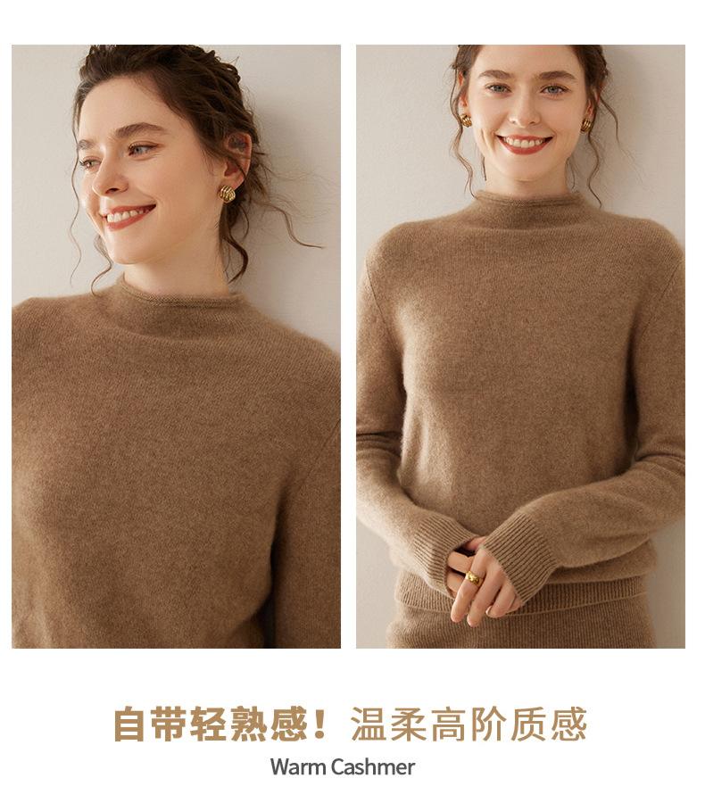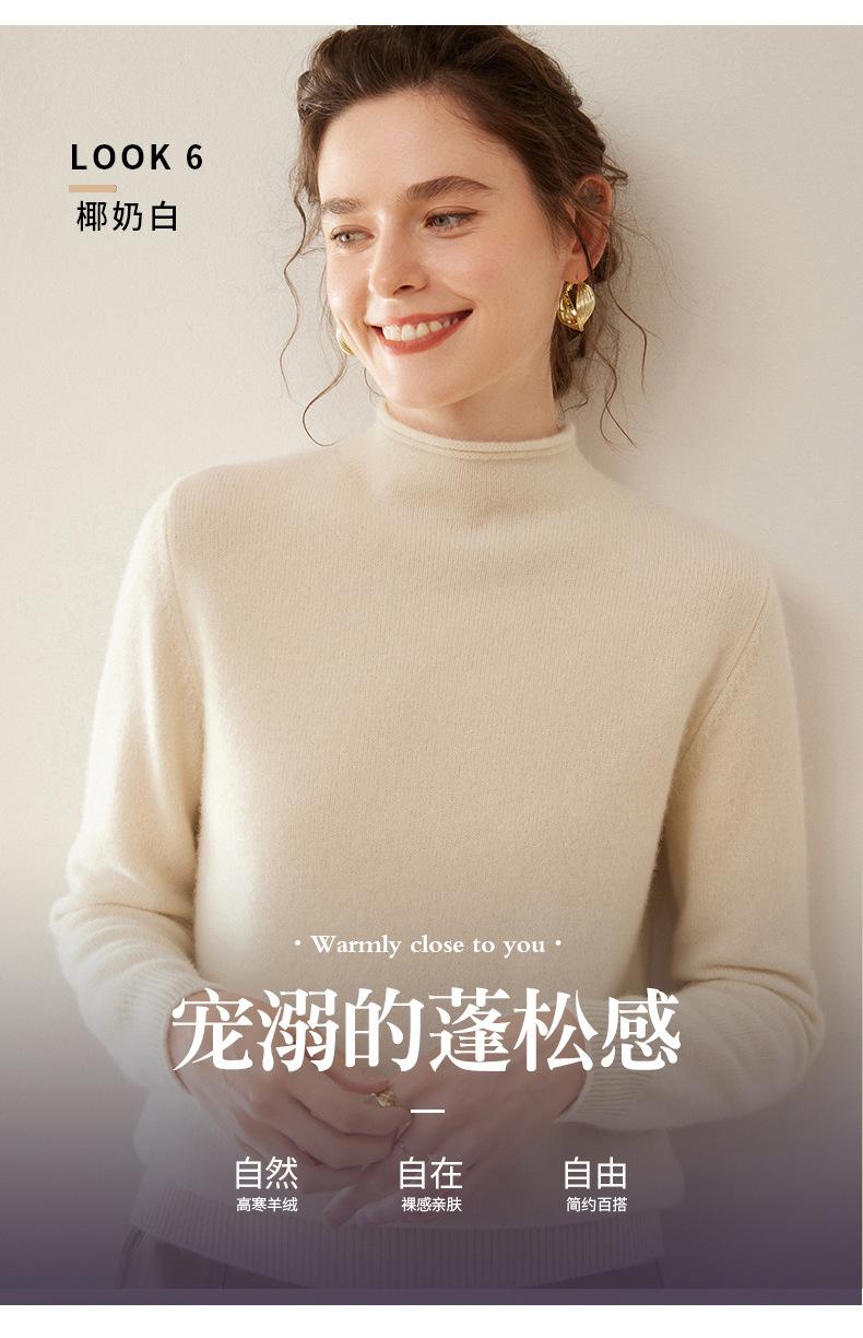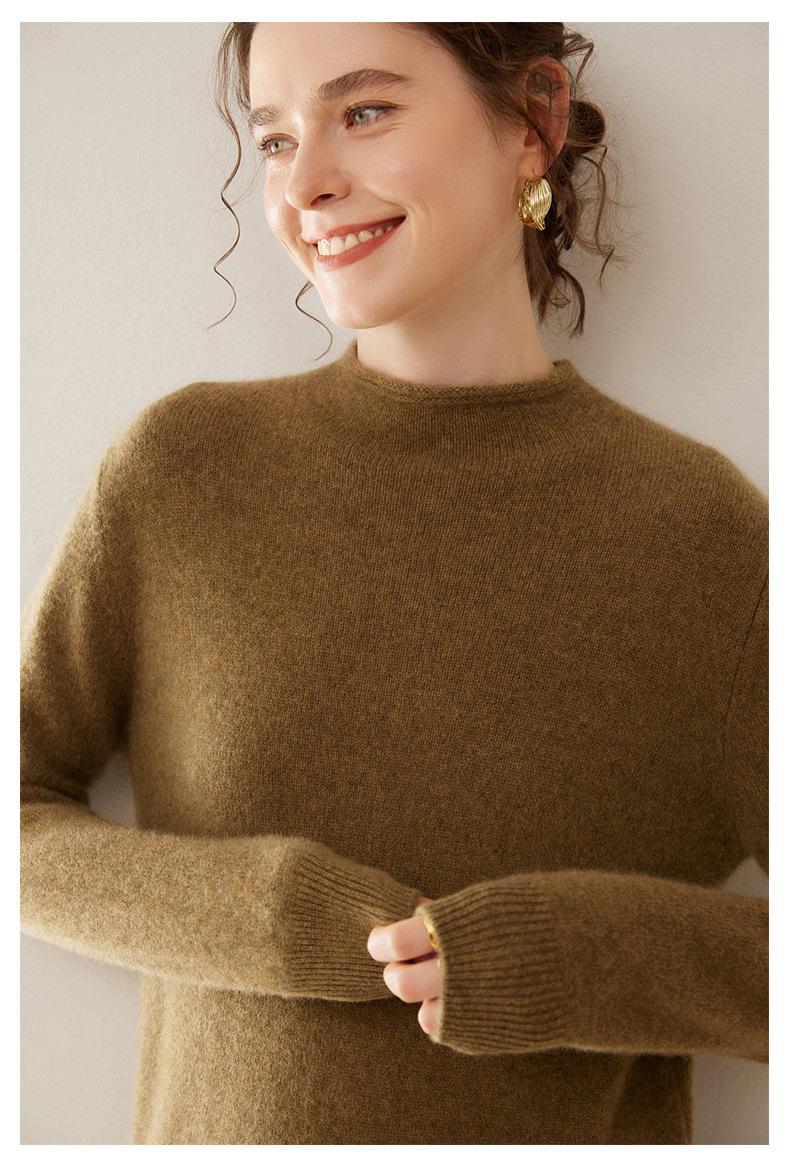 Camisa de punto de cachemira para mujer, de cuello medio alto, con rizo simple y moderno, con suéter grueso, holgado y ajustado de manga larga.