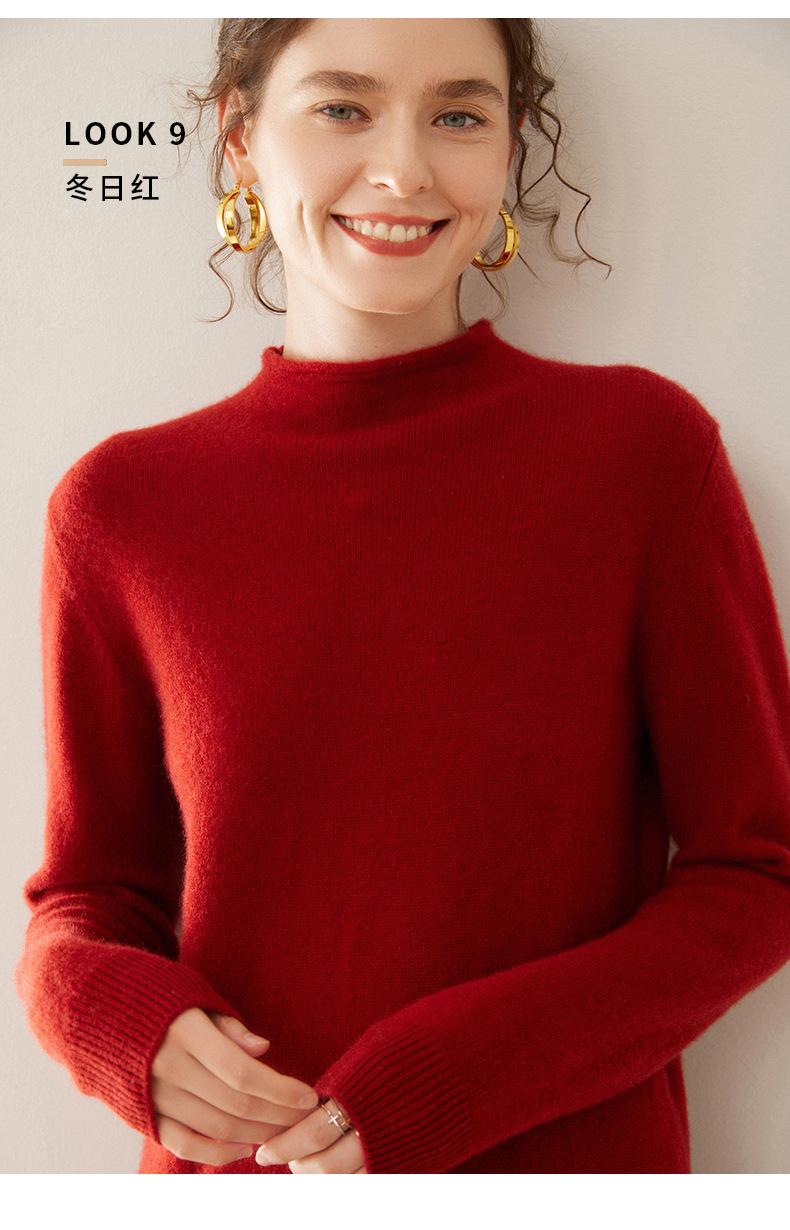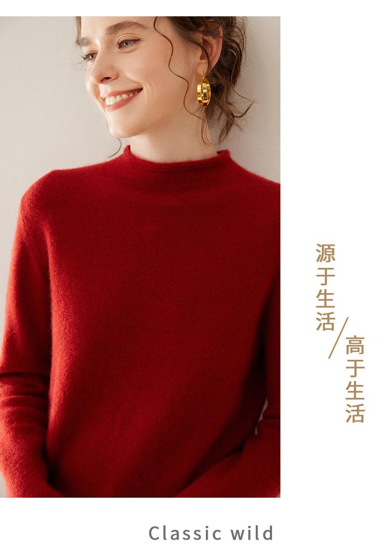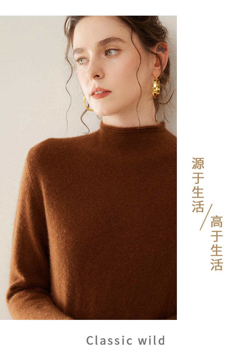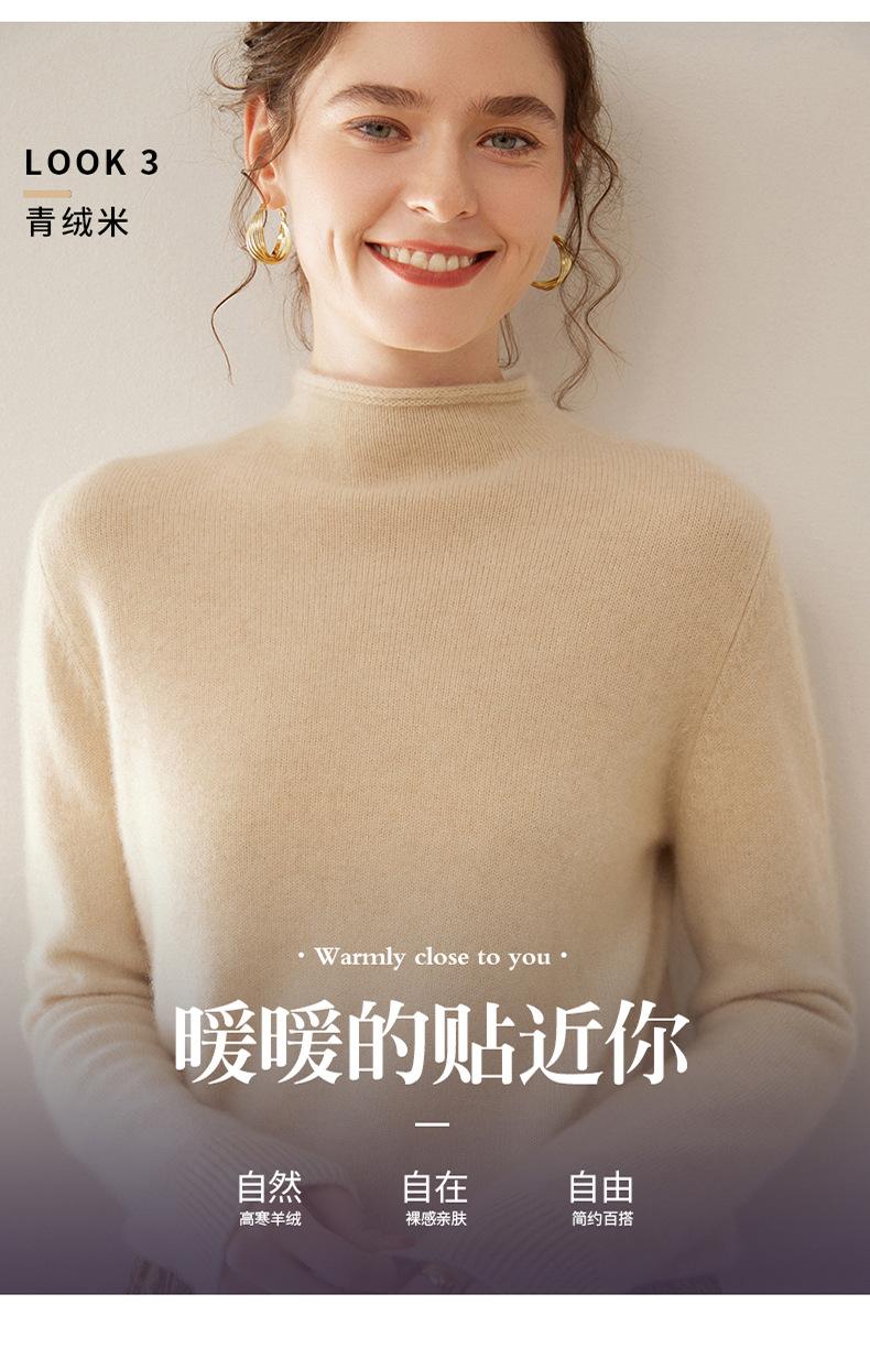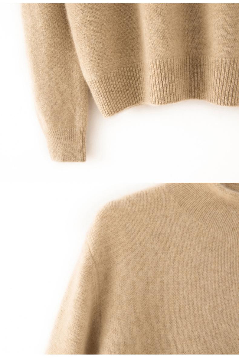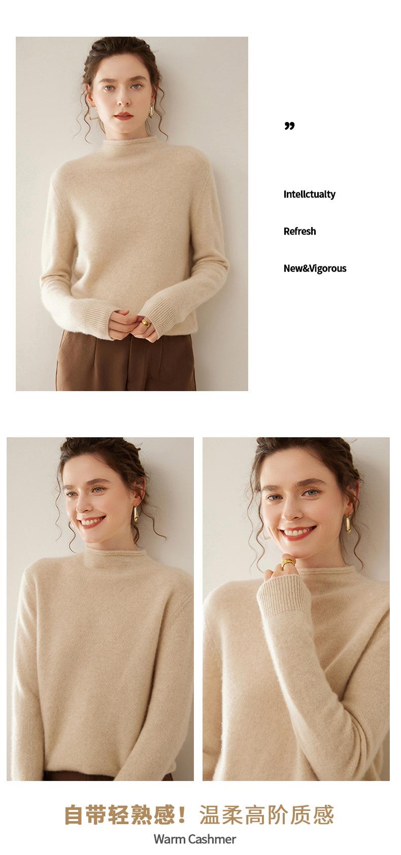 Camisa de punto de cachemira para mujer, de cuello medio alto, con rizo simple y moderno, con suéter grueso, holgado y ajustado de manga larga.