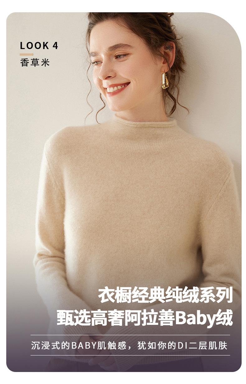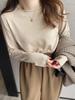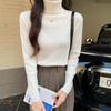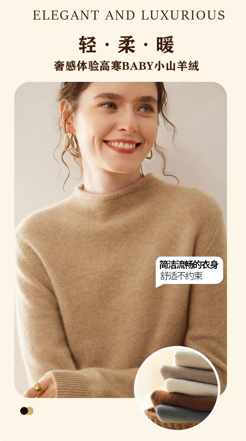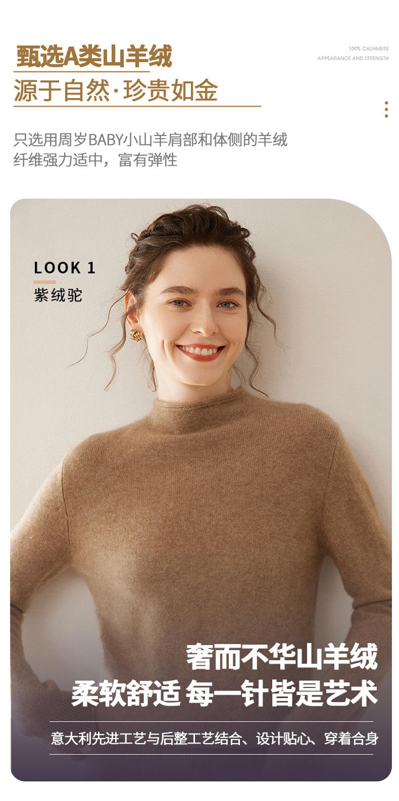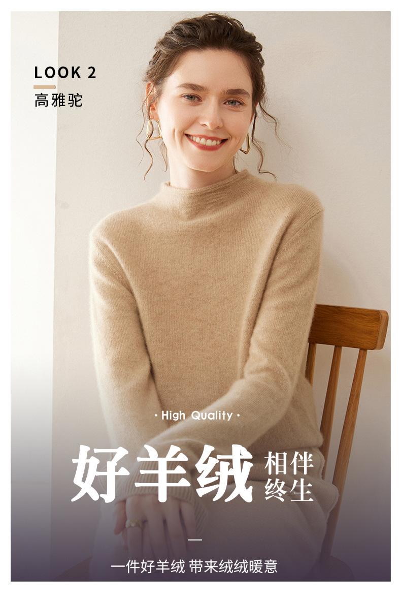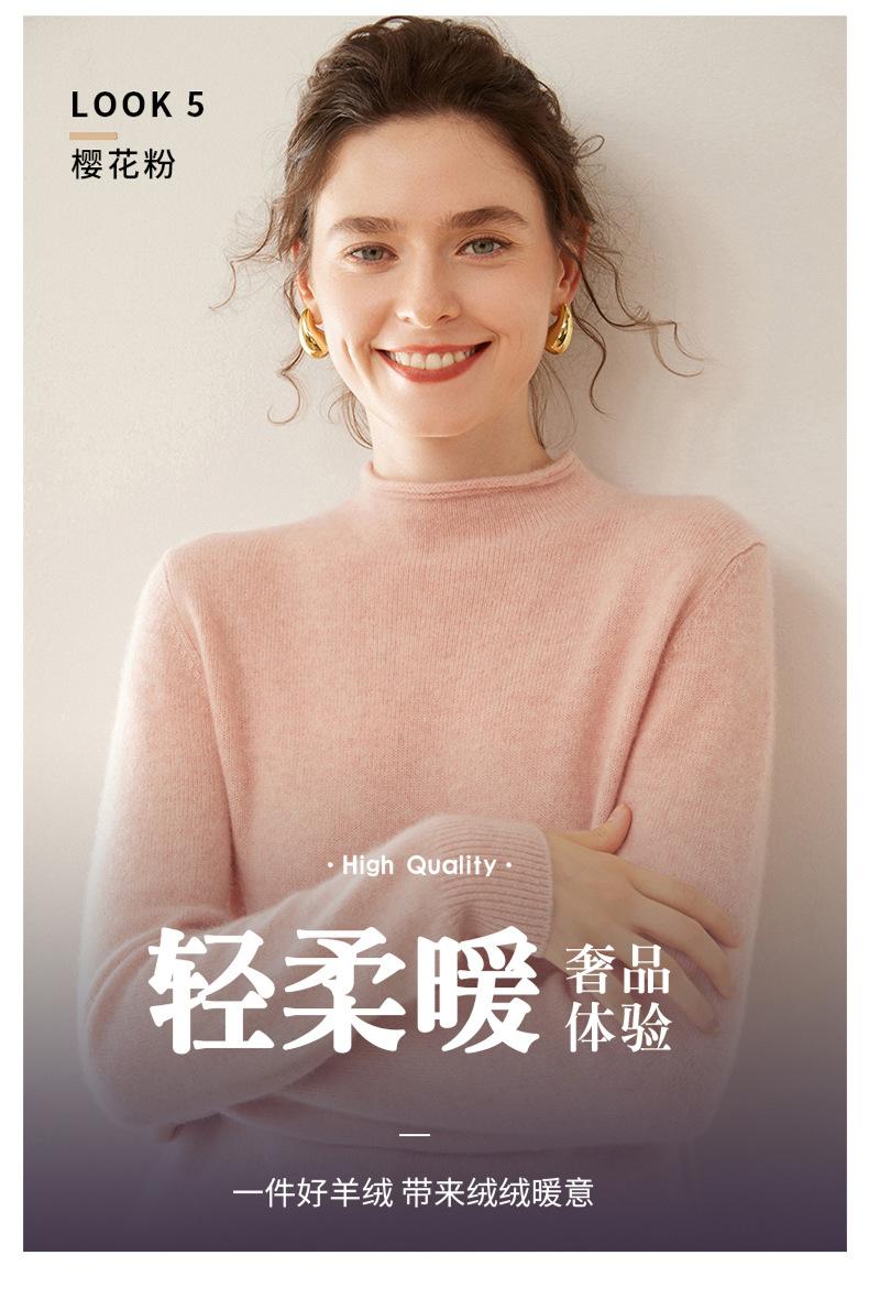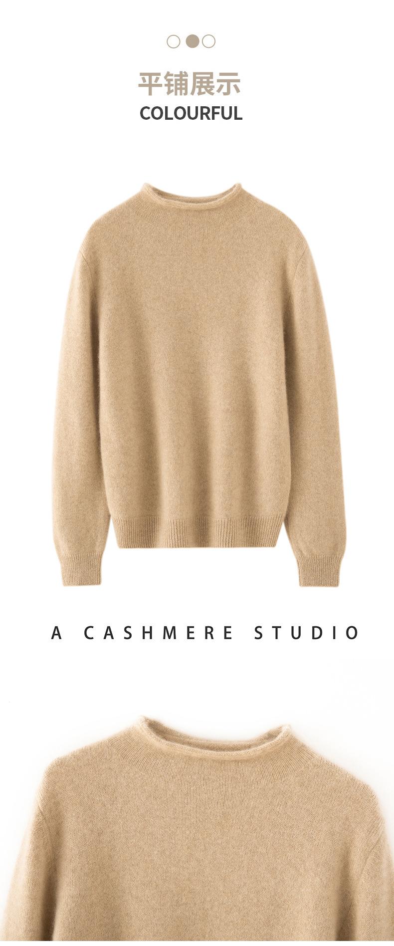 Camisa de punto de cachemira para mujer, de cuello medio alto, con rizo simple y moderno, con suéter grueso, holgado y ajustado de manga larga.