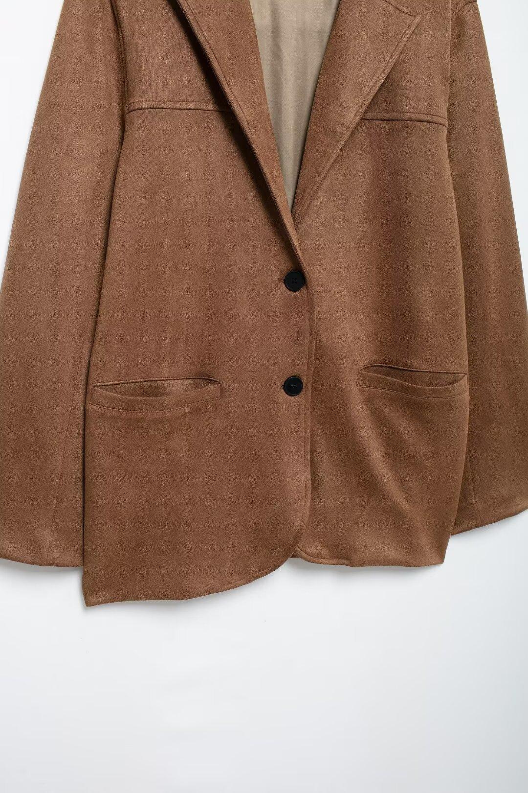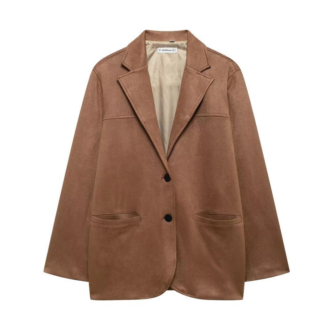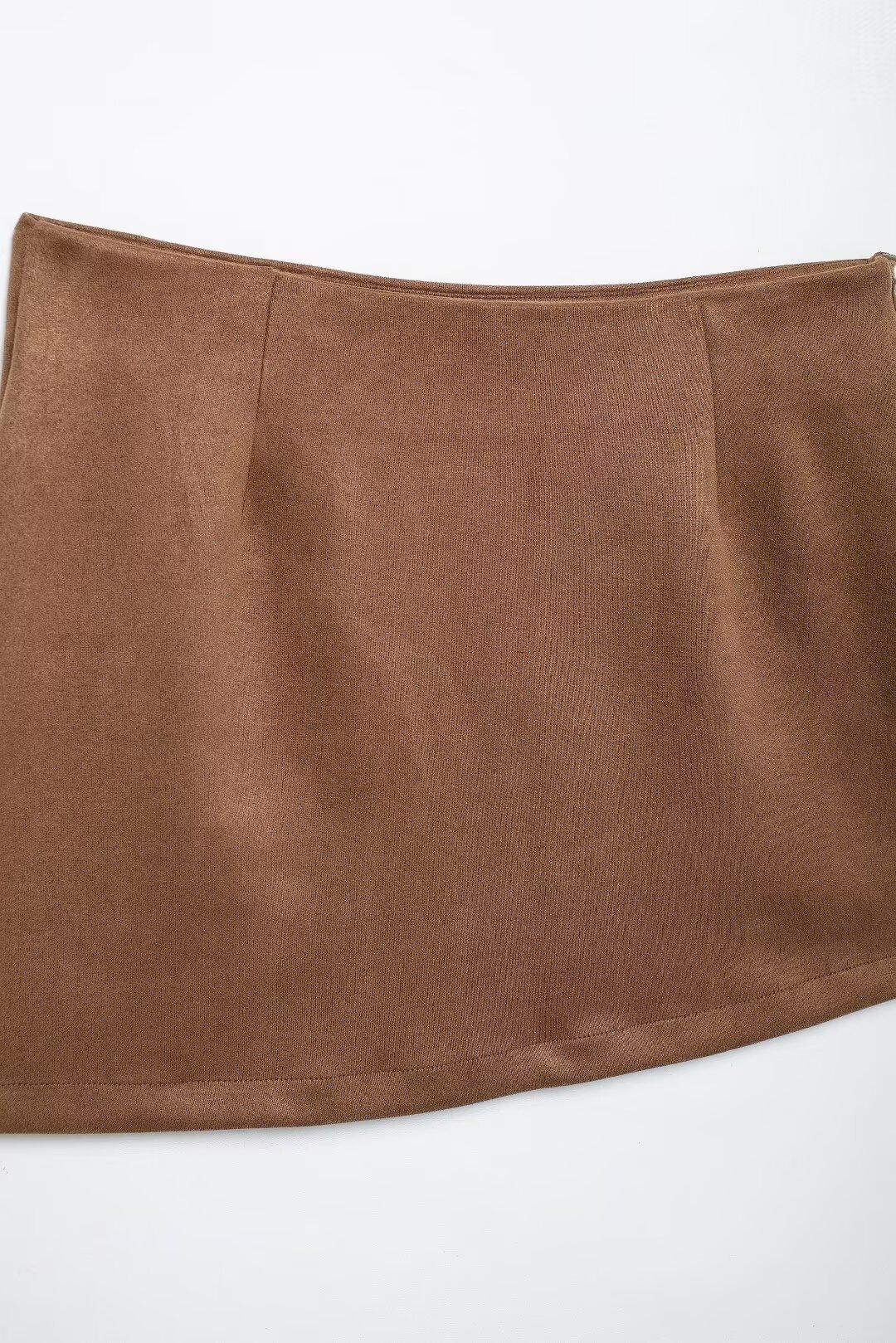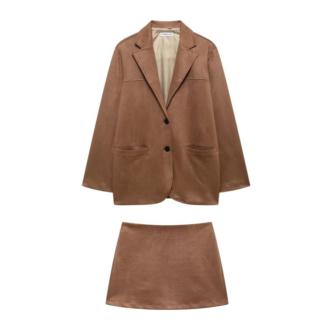 Moda Otoño 2024 Chaqueta de Cuero de Gamuza Traje de Falda de Cuero de Gamuza Transfronterizo Amazon Mujeres A35491