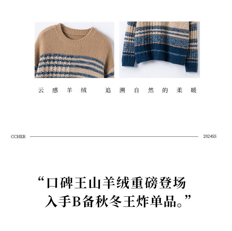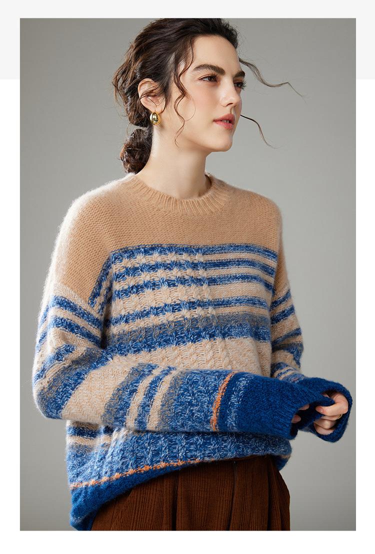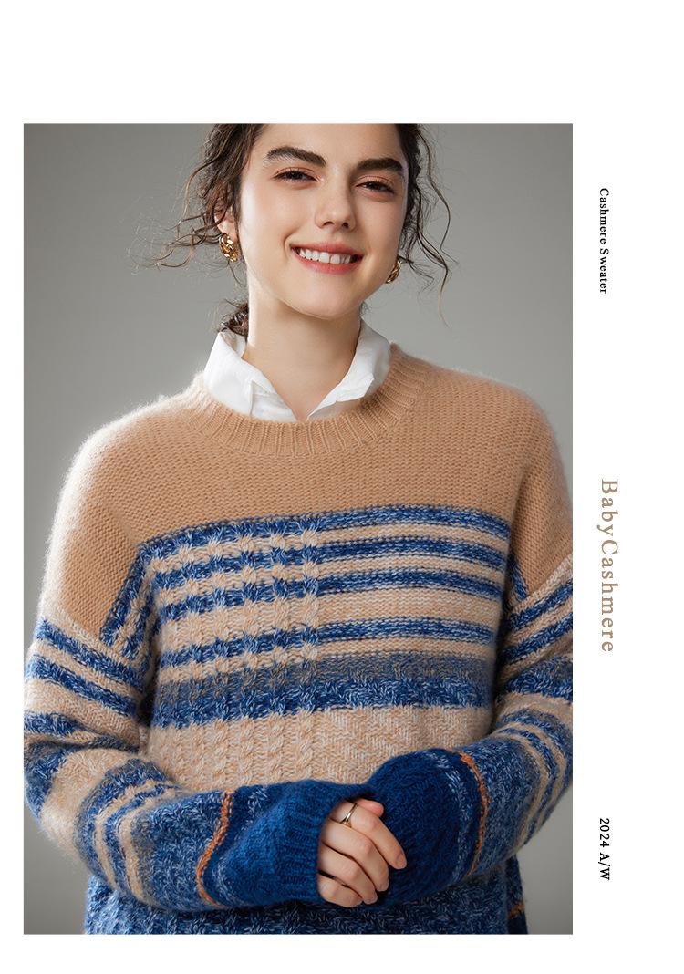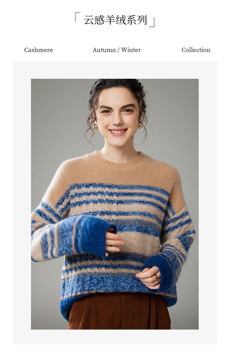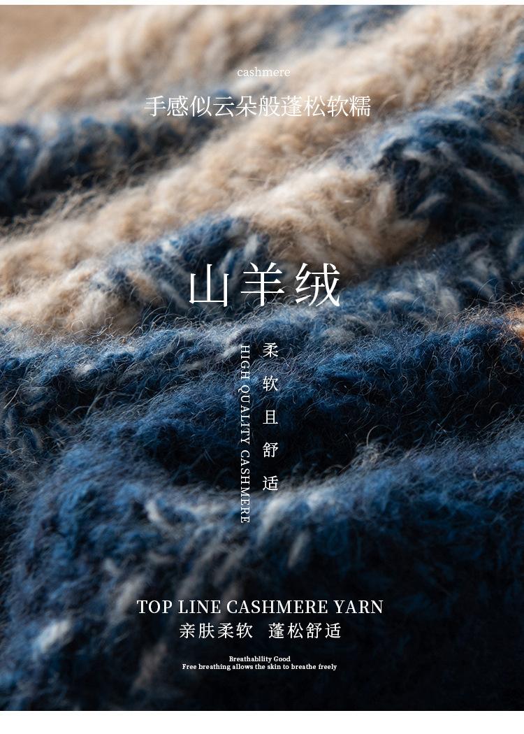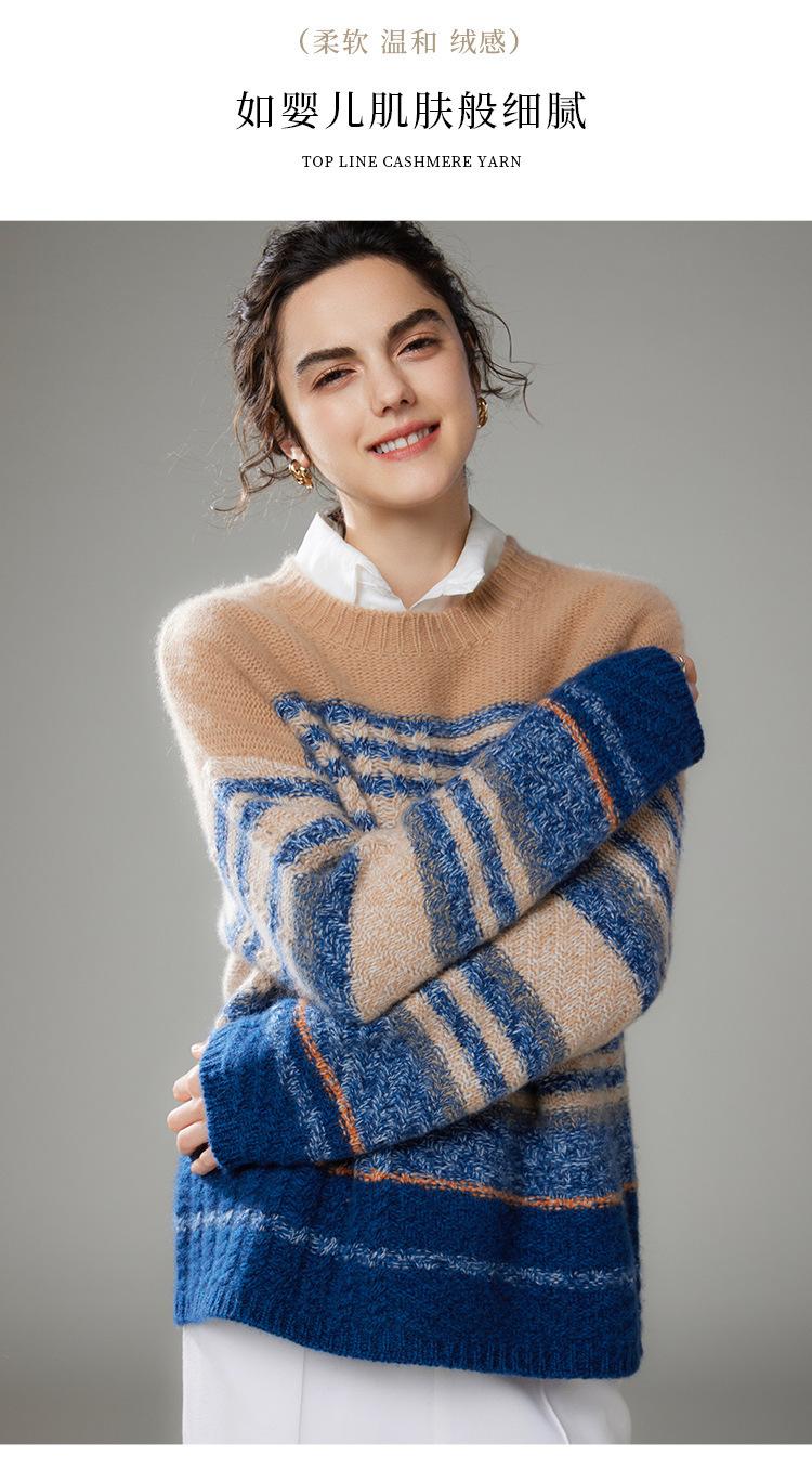 Otoño e Invierno Nuevo Flor Arena Color Contraste Cuello Redondo Suéter de Cachemira para Mujer Top Grueso Jersey Jacquard Cachemira Suéter Tejido Suéter