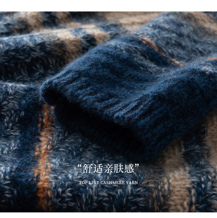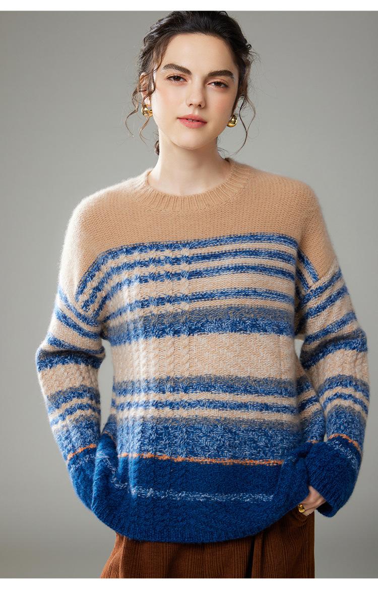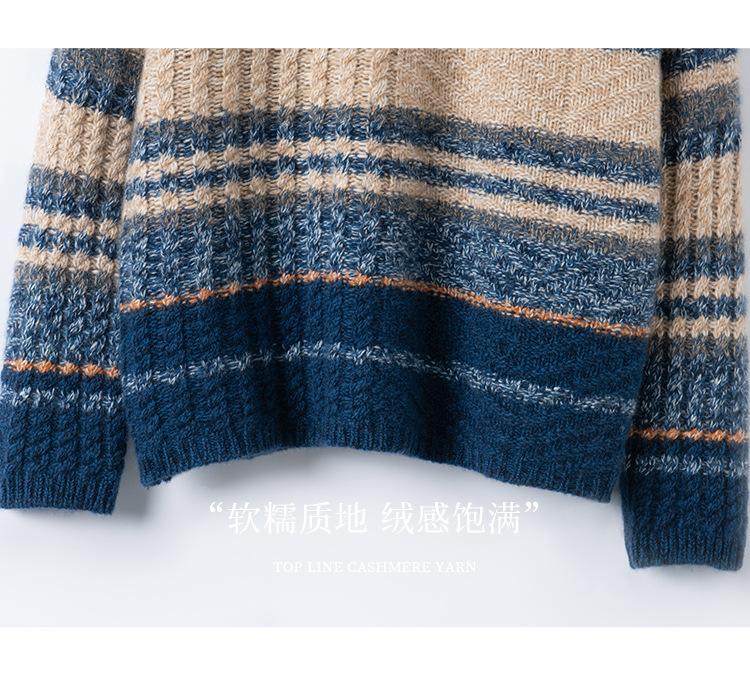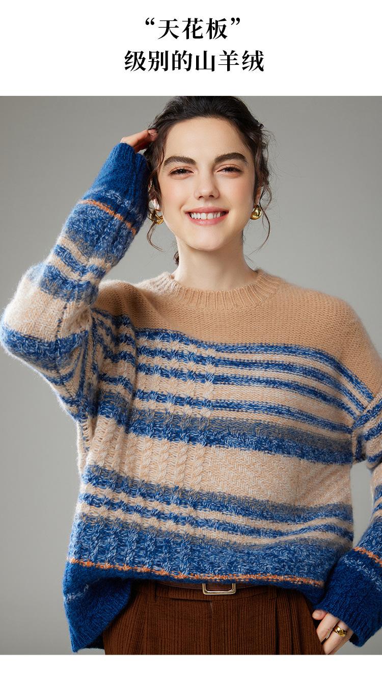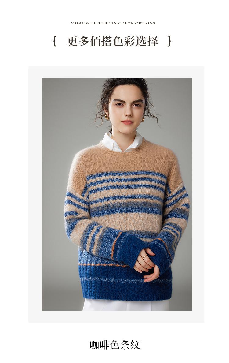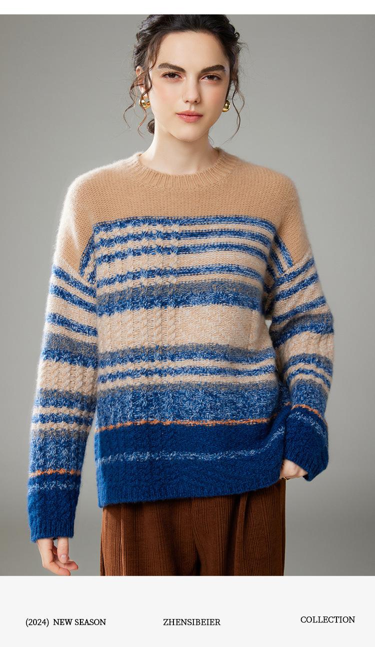 Otoño e Invierno Nuevo Flor Arena Color Contraste Cuello Redondo Suéter de Cachemira para Mujer Top Grueso Jersey Jacquard Cachemira Suéter Tejido Suéter