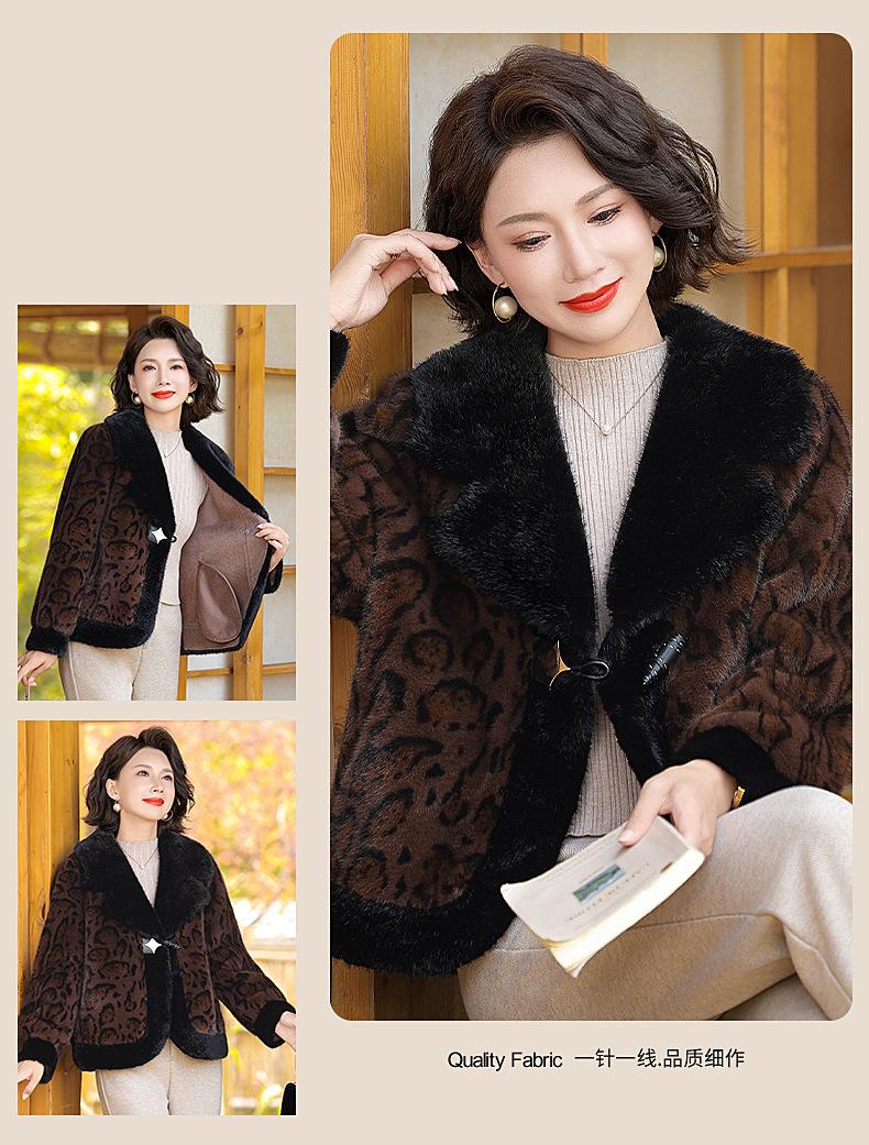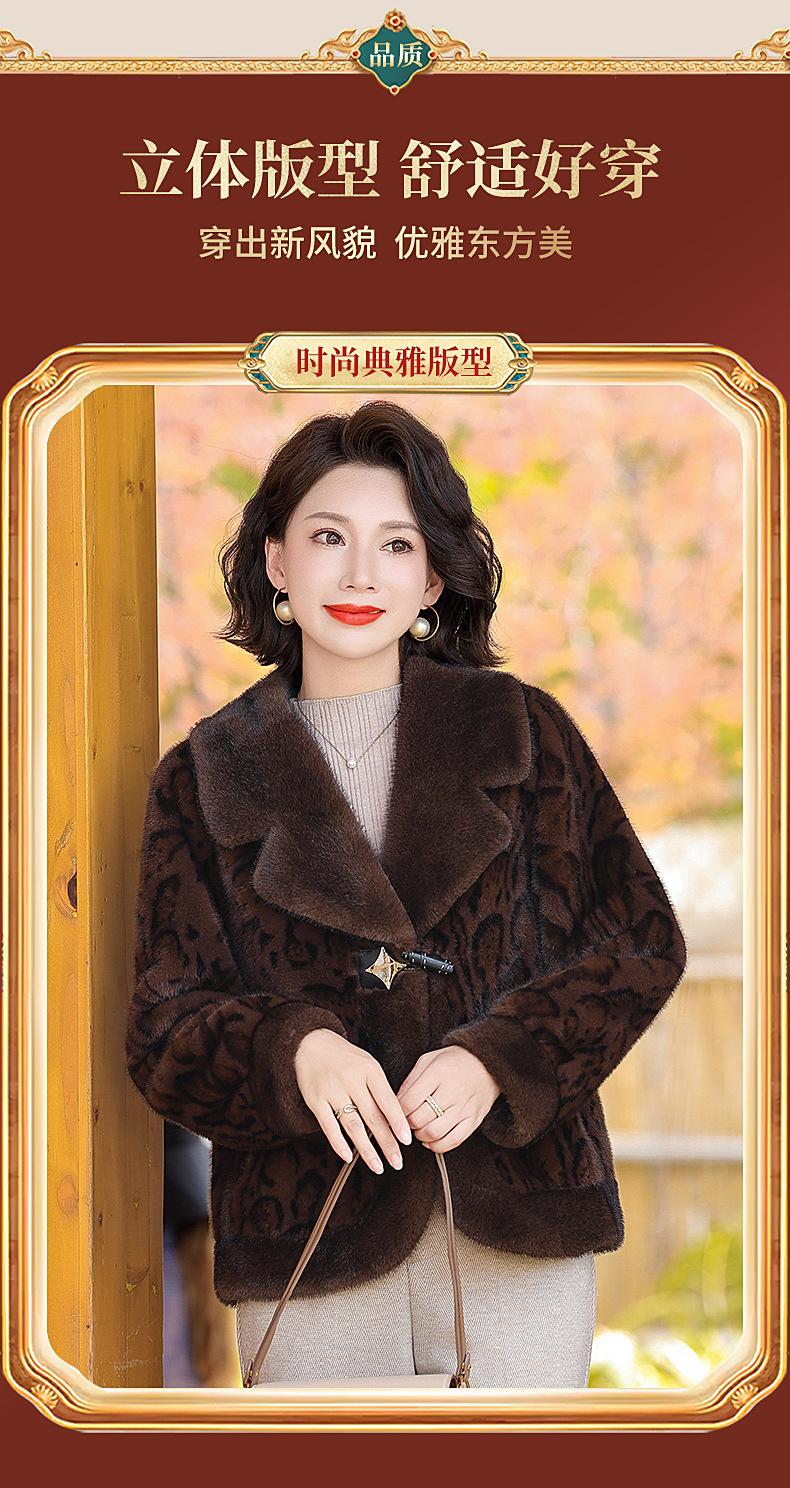 Abrigo Corto de Estilo Extranjero para Madre Abrigo de Piel Sintética para Mujeres de Mediana Edad y Mayores de 50 Años Noble Grueso Imitación Visón Forro Polar Top para Mujer