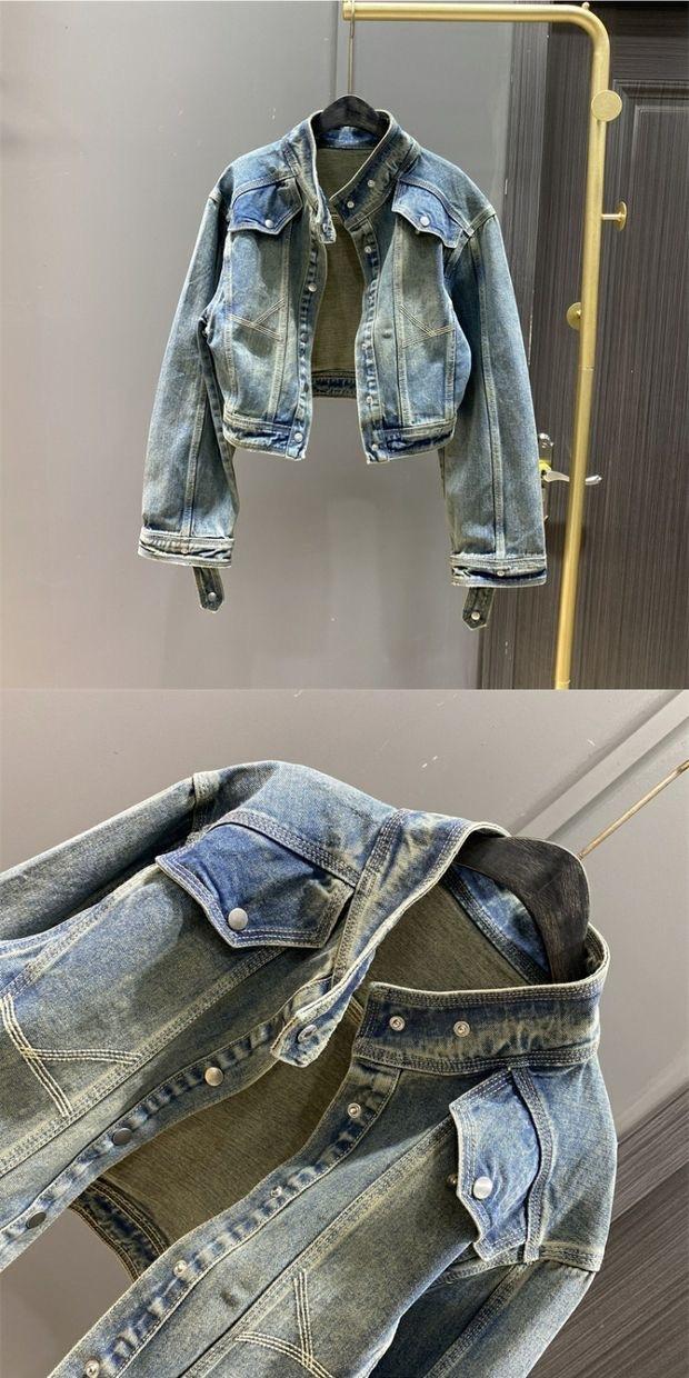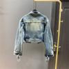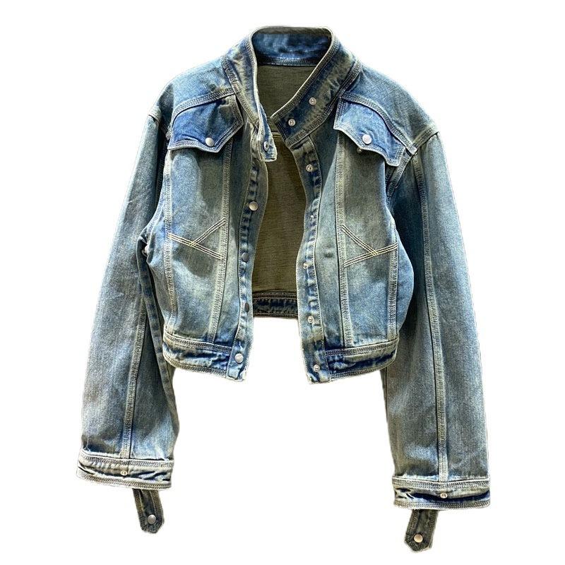 Chaqueta vaquera corta estilo retro de Hong Kong para mujer, chaqueta de cuello holgado, top de moda, primavera y otoño