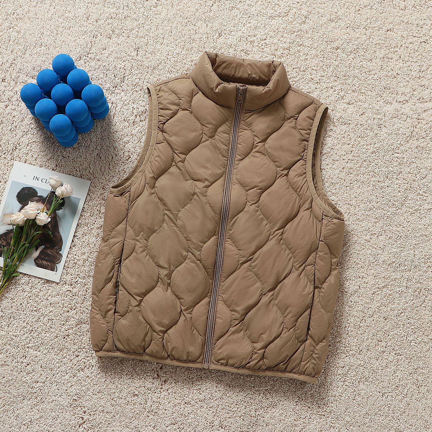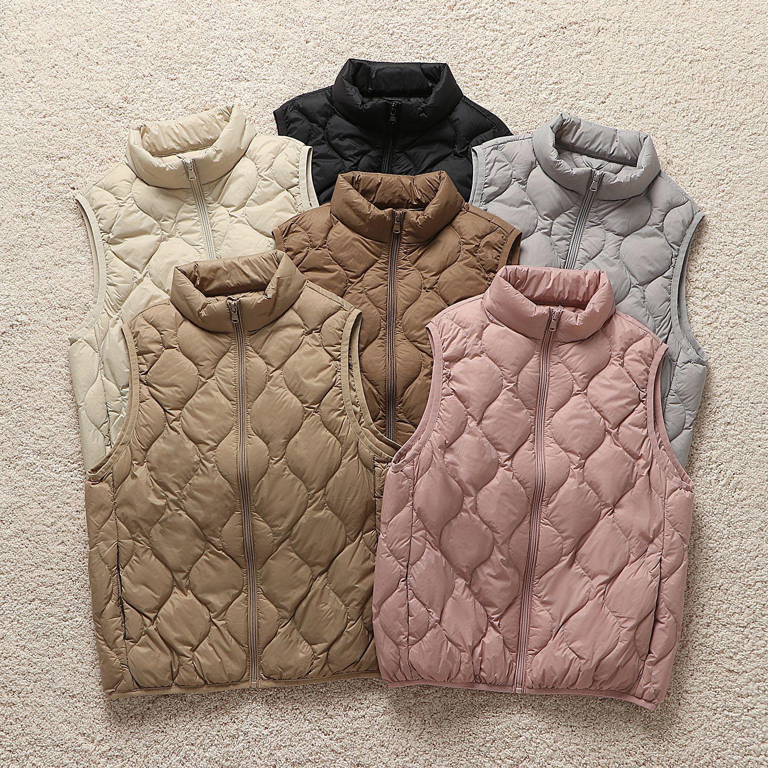 2025 Nuevo Otoño e Invierno Chaqueta de Plumón Chaleco para Mujer Delgado Casual Ligero Cuello Alto Sin Mangas Plumón de Pato Blanco Chaleco Térmico