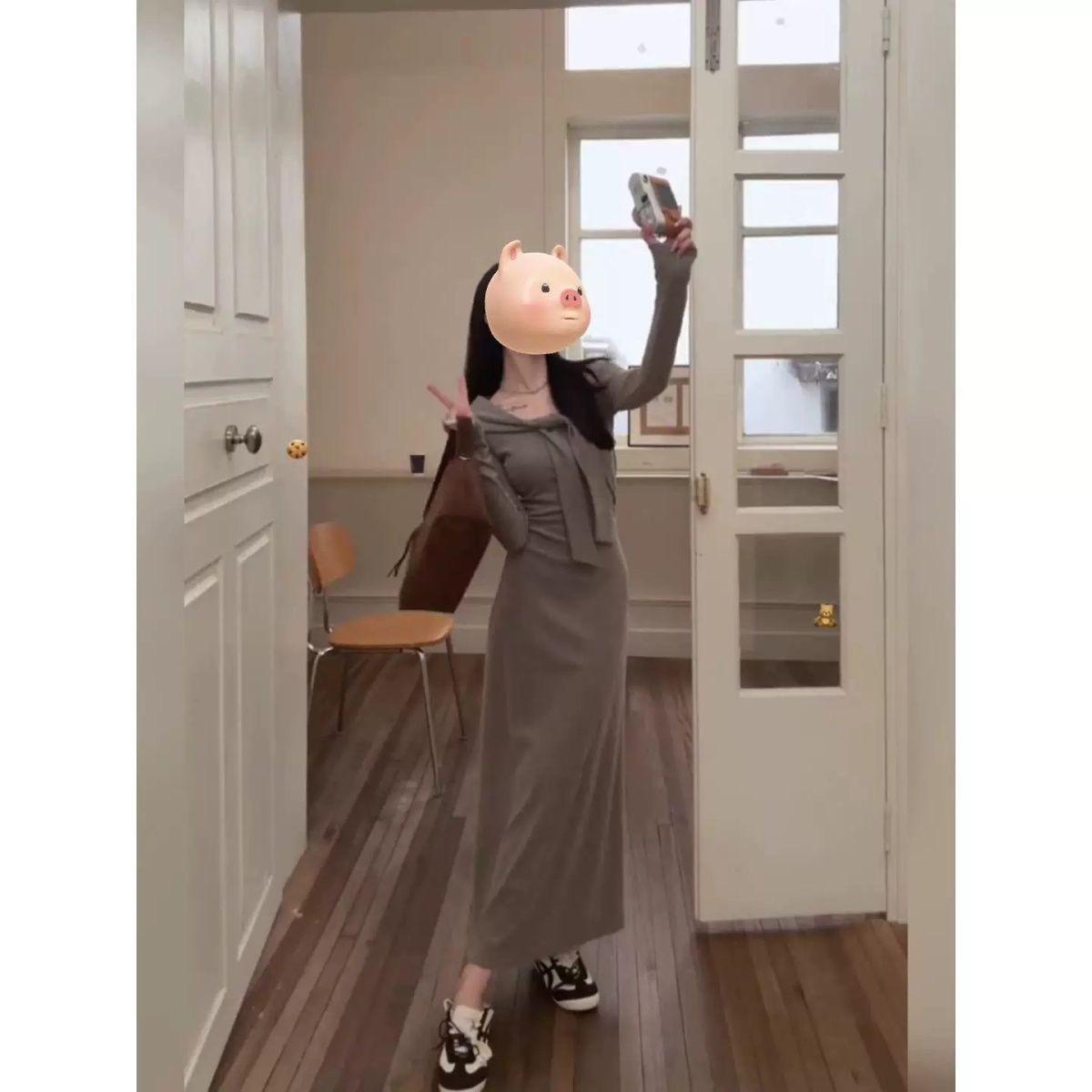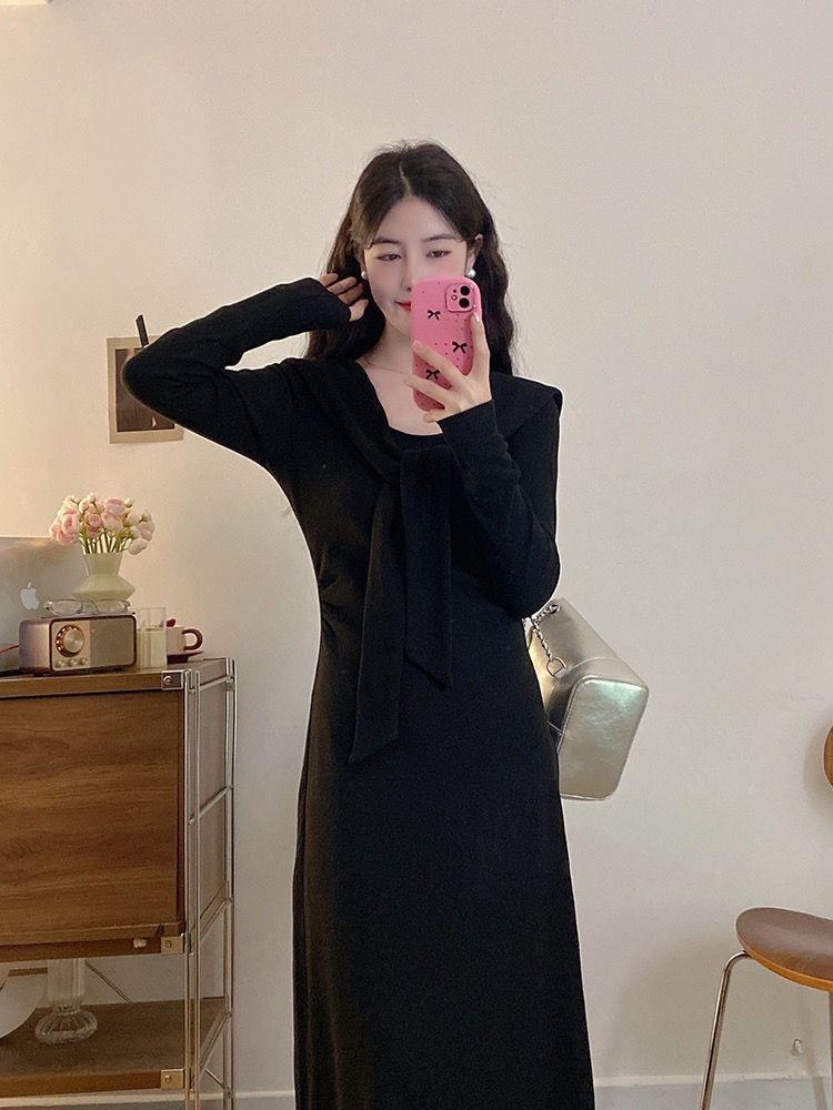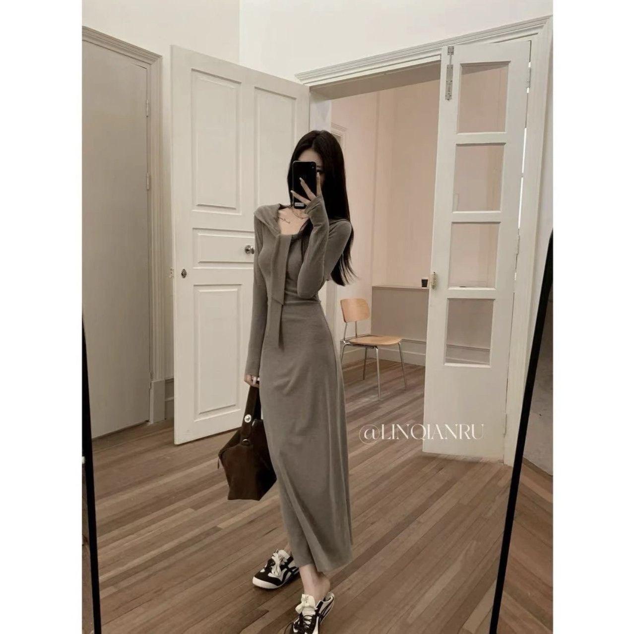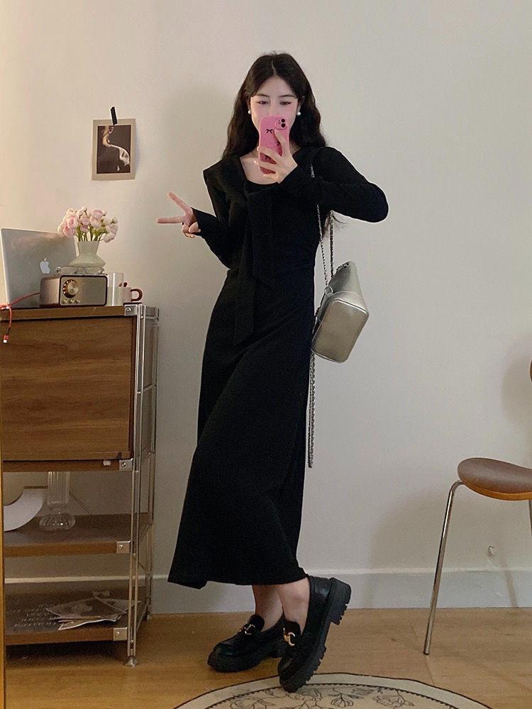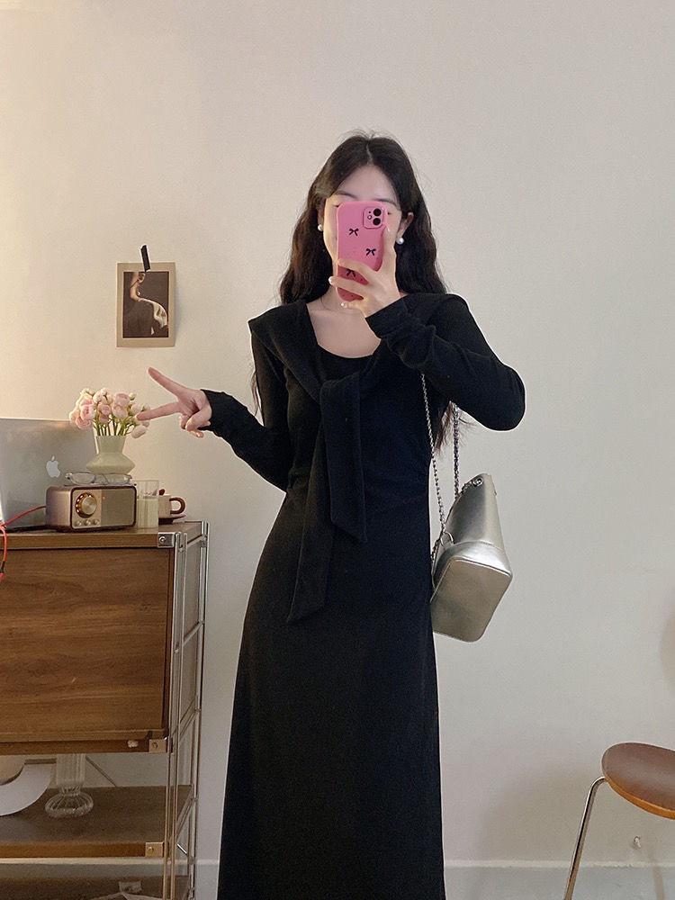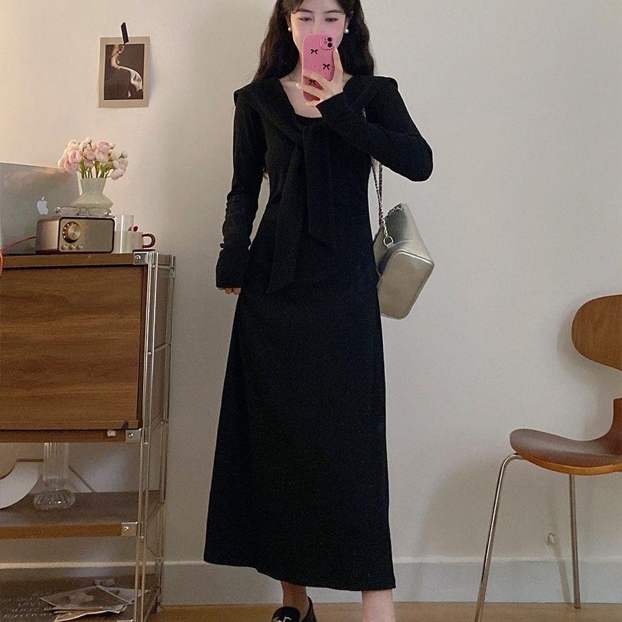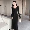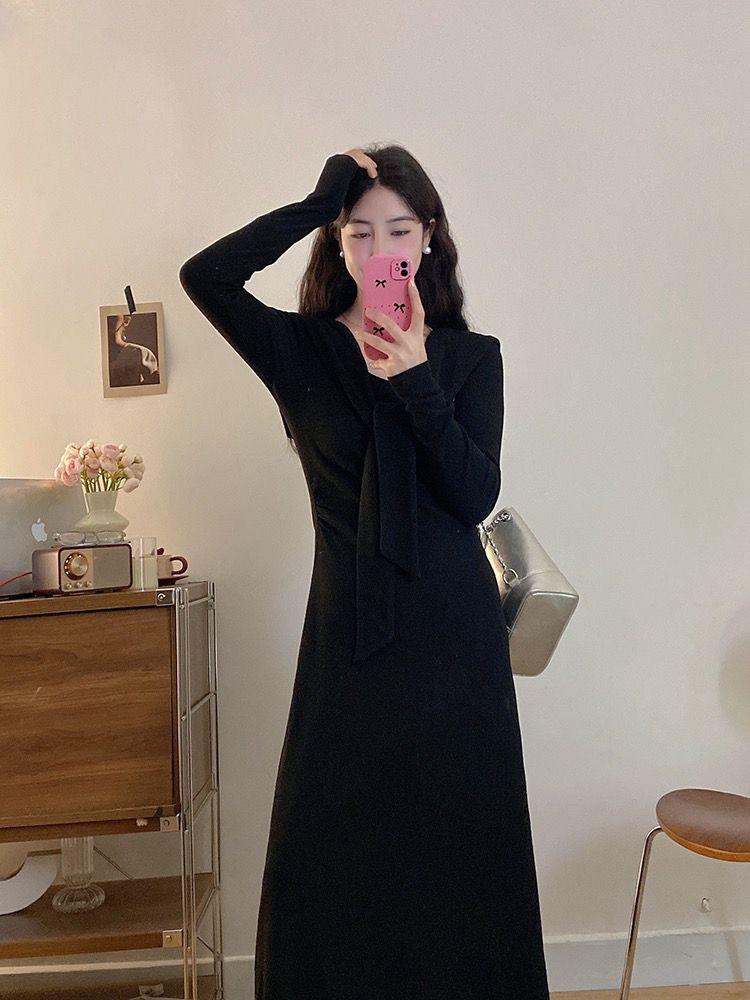 Vestido de punto elegante francés de cintura alta con nuevo diseño de nicho para mujer de principios de otoño.