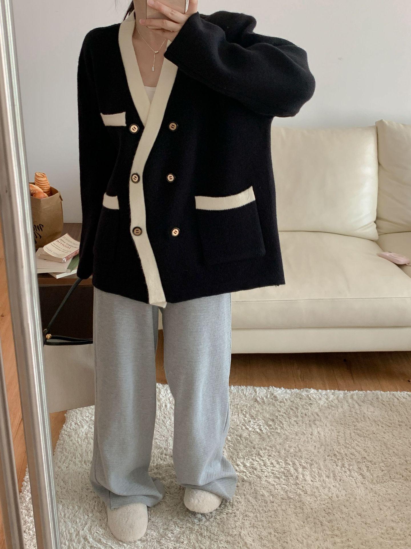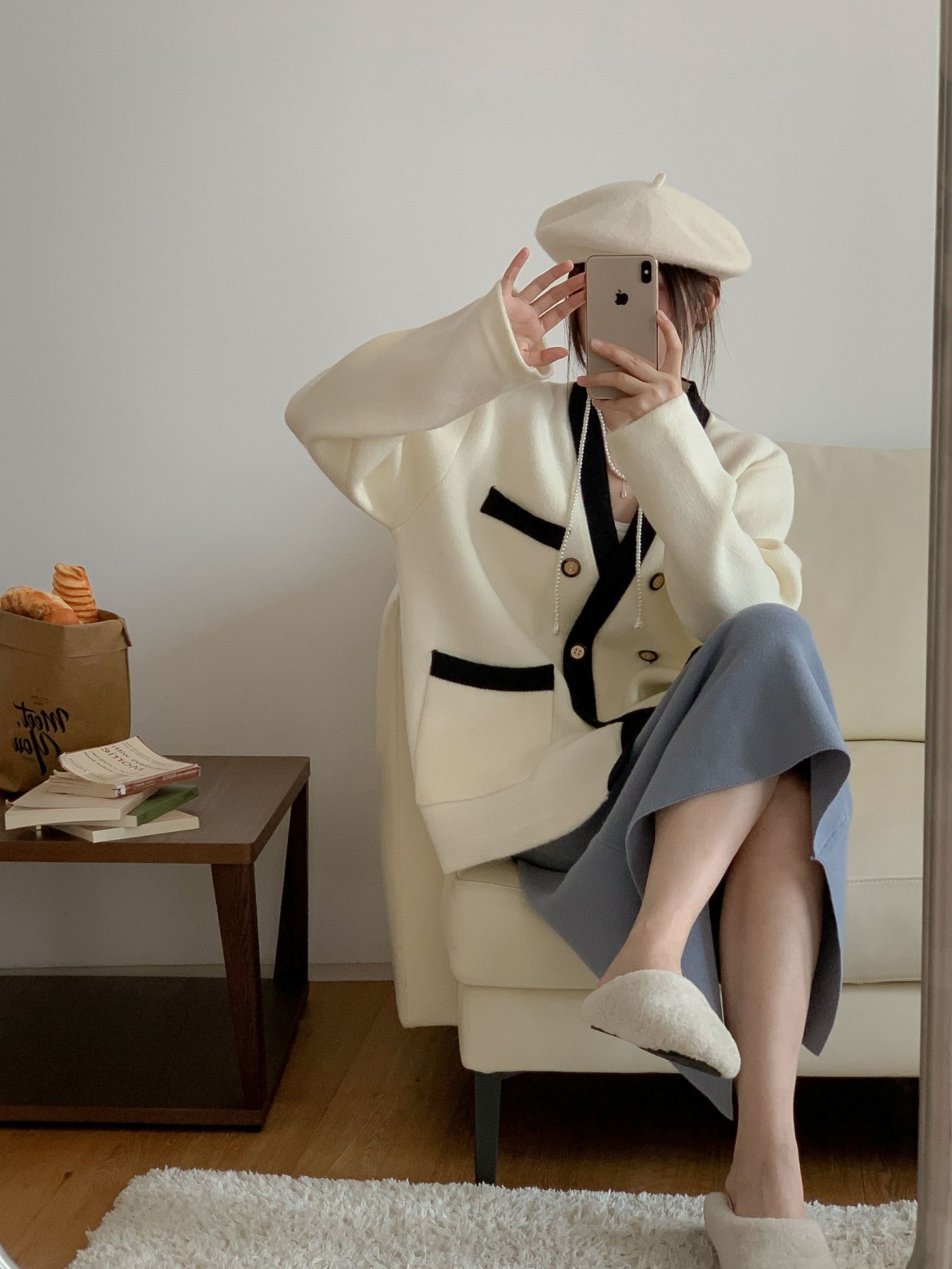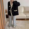 Moda Estilo Coreano Retro Estilo Chanel Abrigo Suéter para Mujer Otoño e Invierno Estilo Holgazán de Alta Gama Cárdigan de Punto de Doble Botonadura