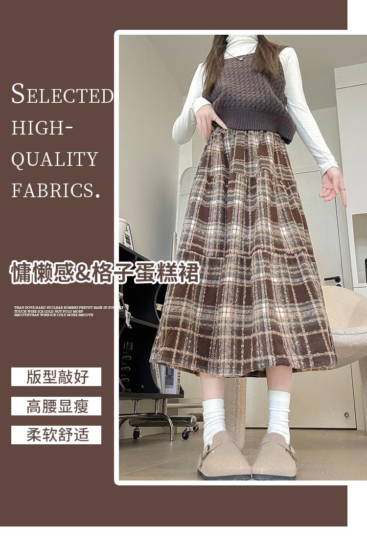 Falda de Cuadros Negra para Mujer Primavera y Otoño 2025 Nuevo Estilo Estilo Relajado Look Adelgazante Falda A-Línea Falda Pastel Largo Medio Falda de Lana