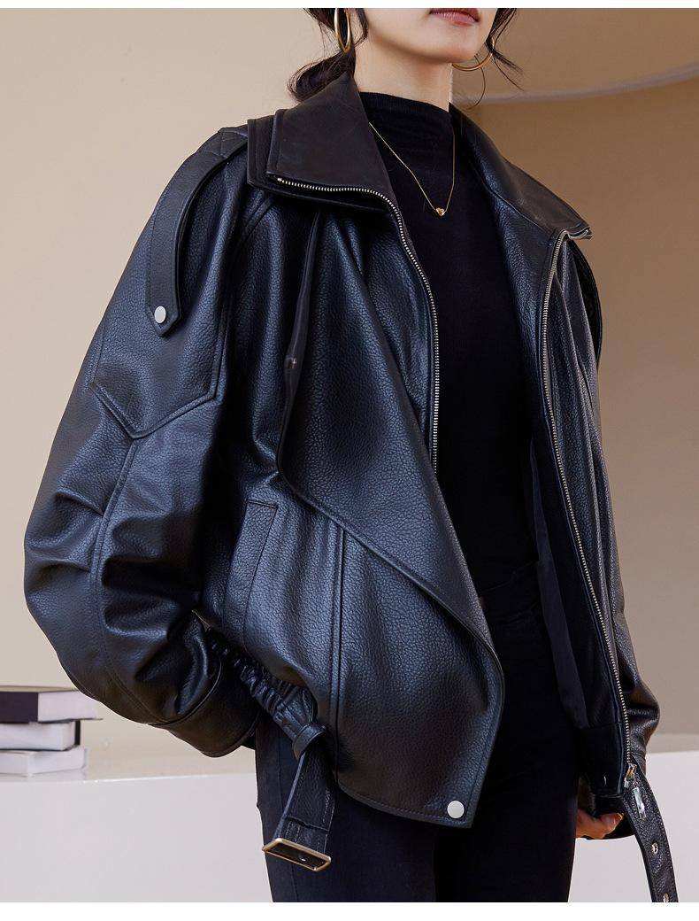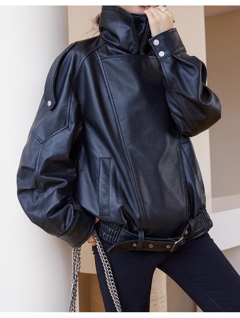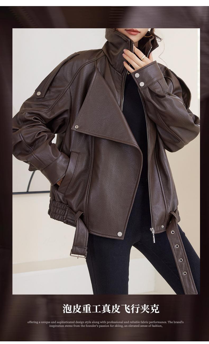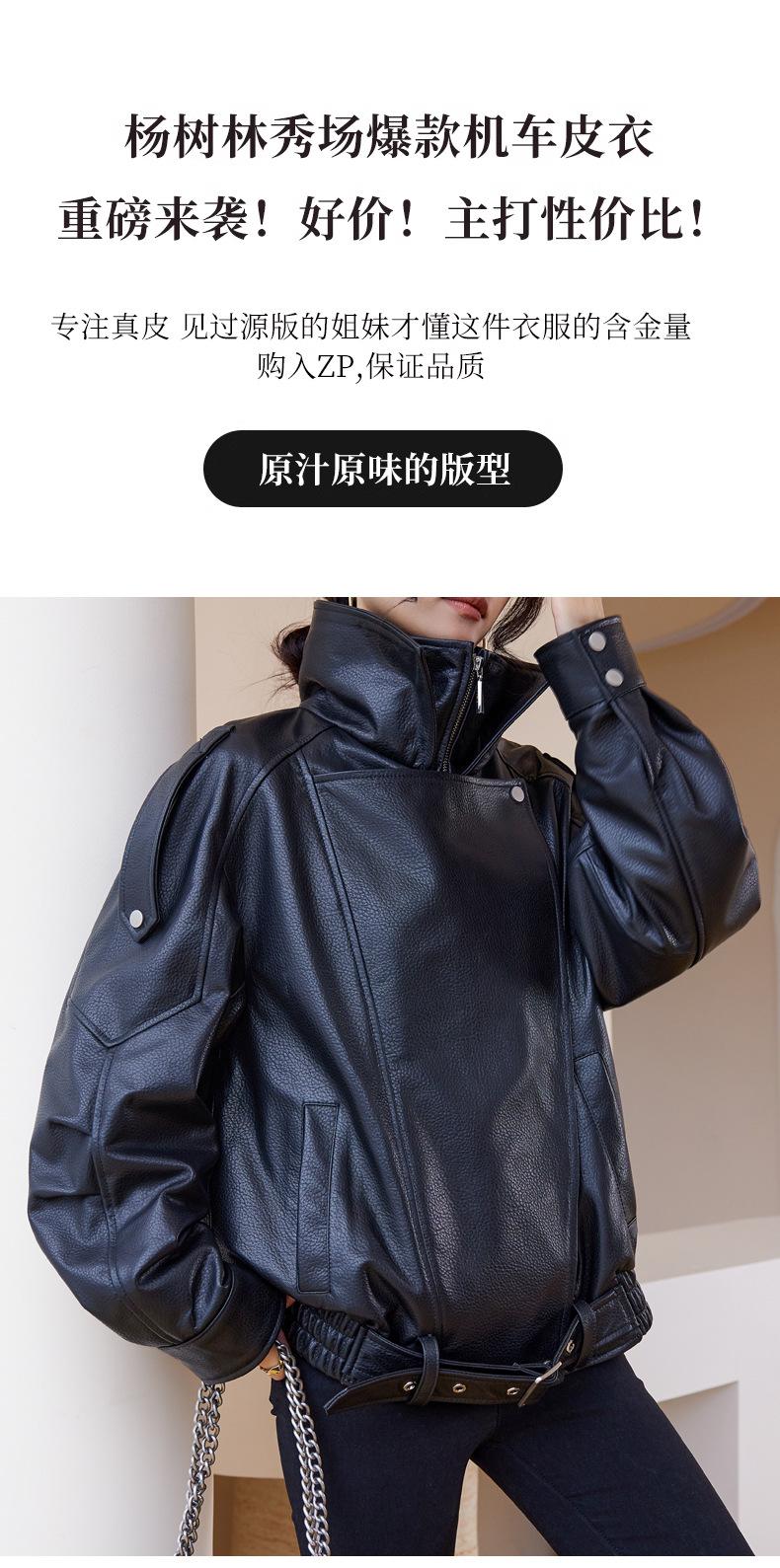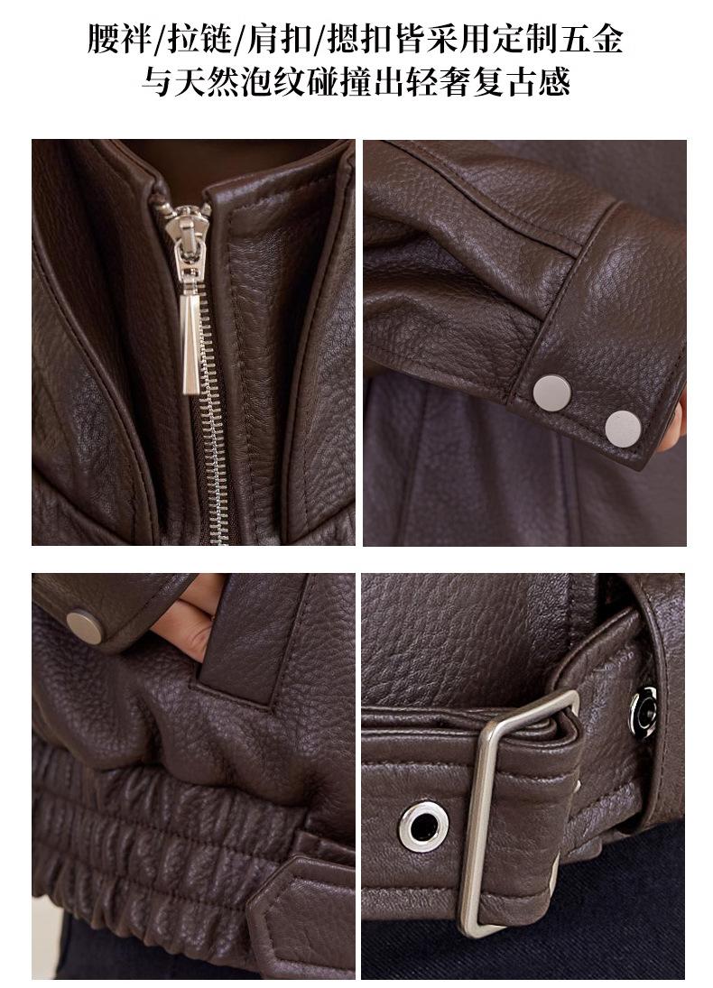 Chaqueta de cuero genuino de alta gama europea para mujer, de moda de otoño, con perfil de motocicleta, chaqueta de piel de oveja genuina de moda