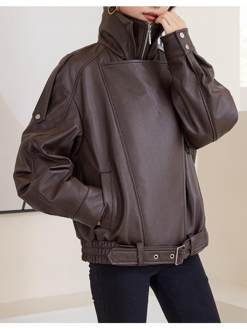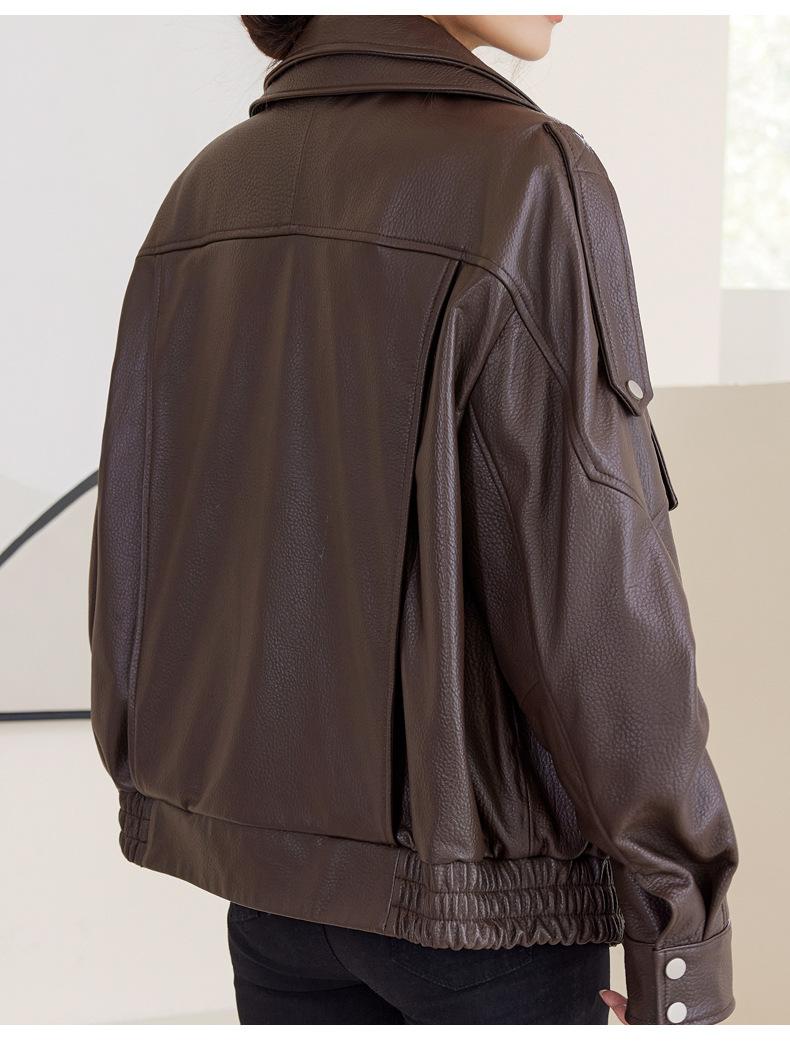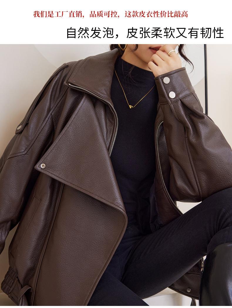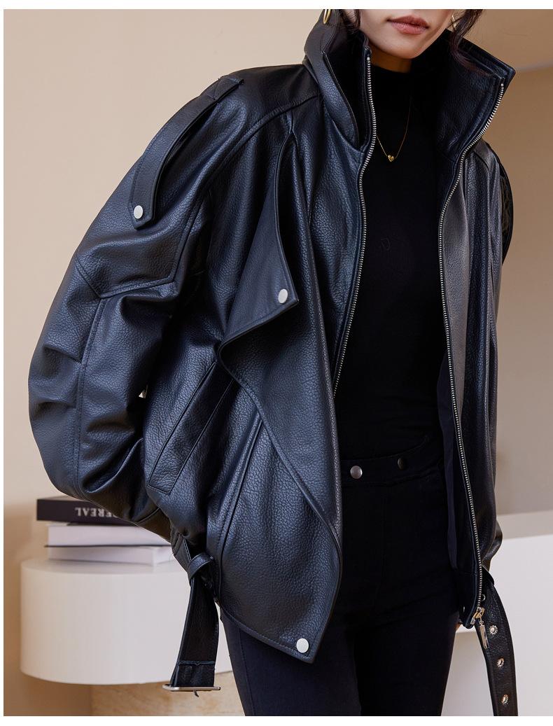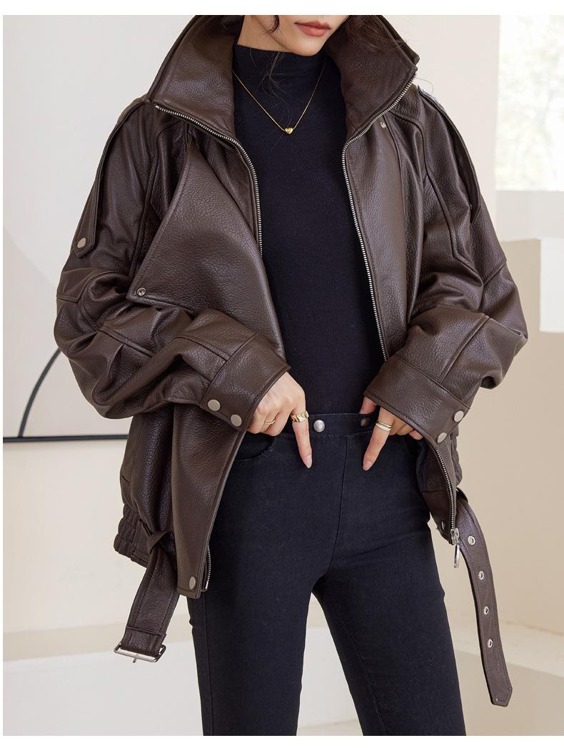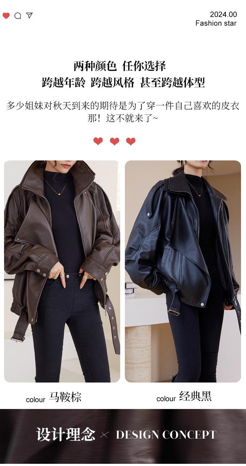 Chaqueta de cuero genuino de alta gama europea para mujer, de moda de otoño, con perfil de motocicleta, chaqueta de piel de oveja genuina de moda