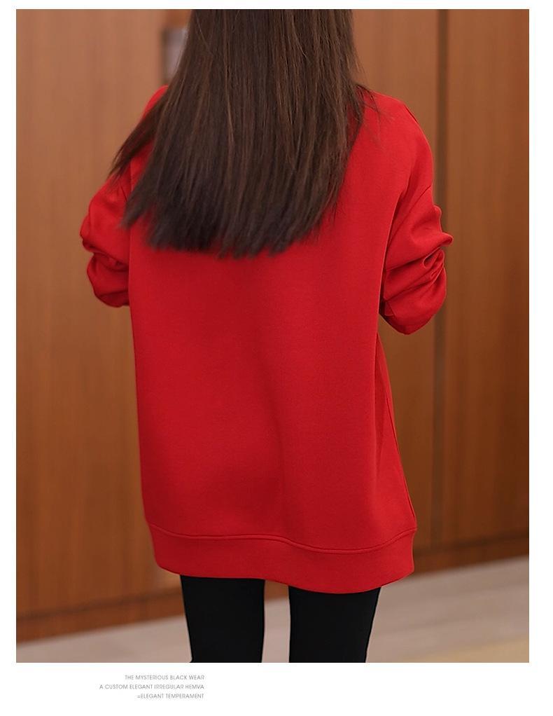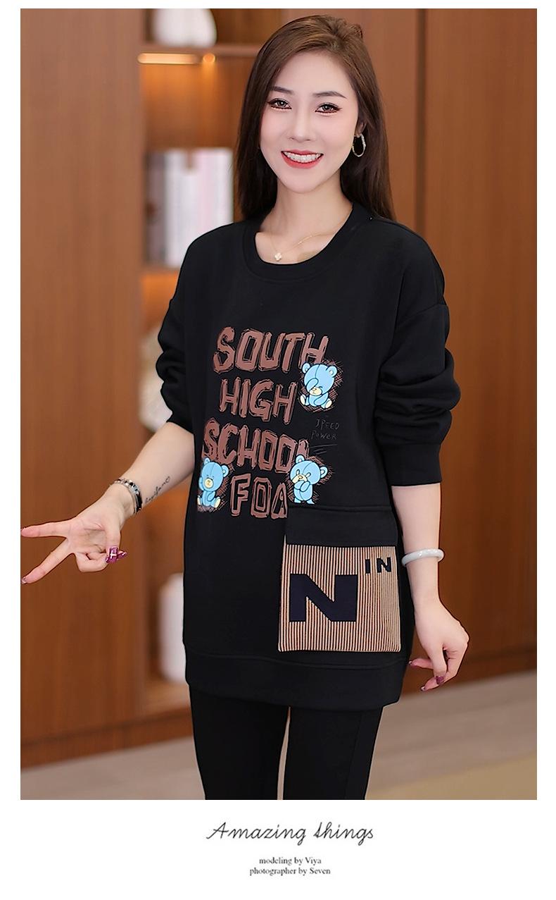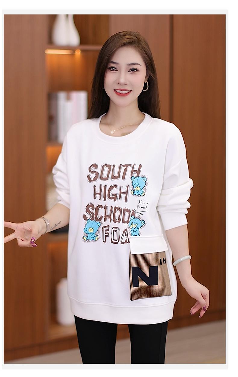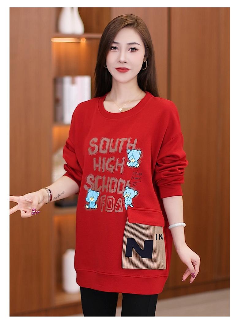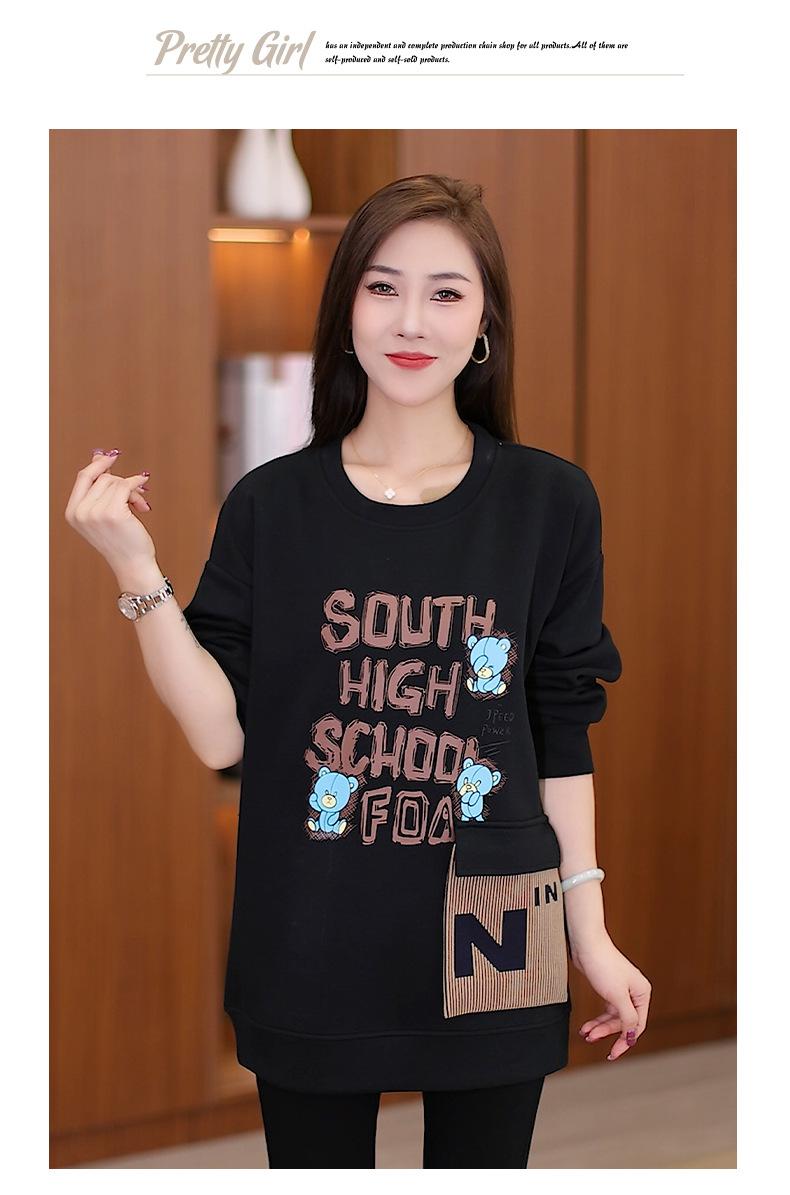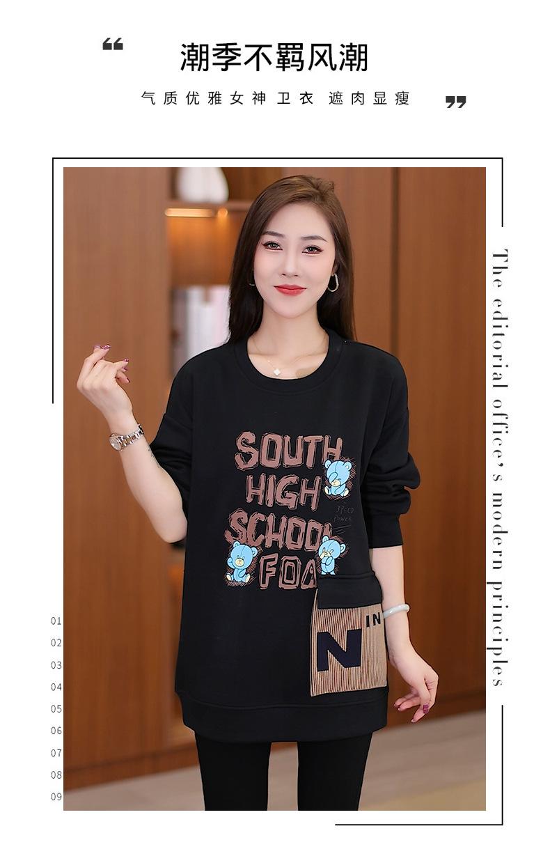 2025 Nuevo Popular Negro Primavera, Otoño e Invierno Sudadera Holgada de Cuello Redondo que Cubre los Glúteos para Mujer con Tops con Letras para Cubrir la Carne