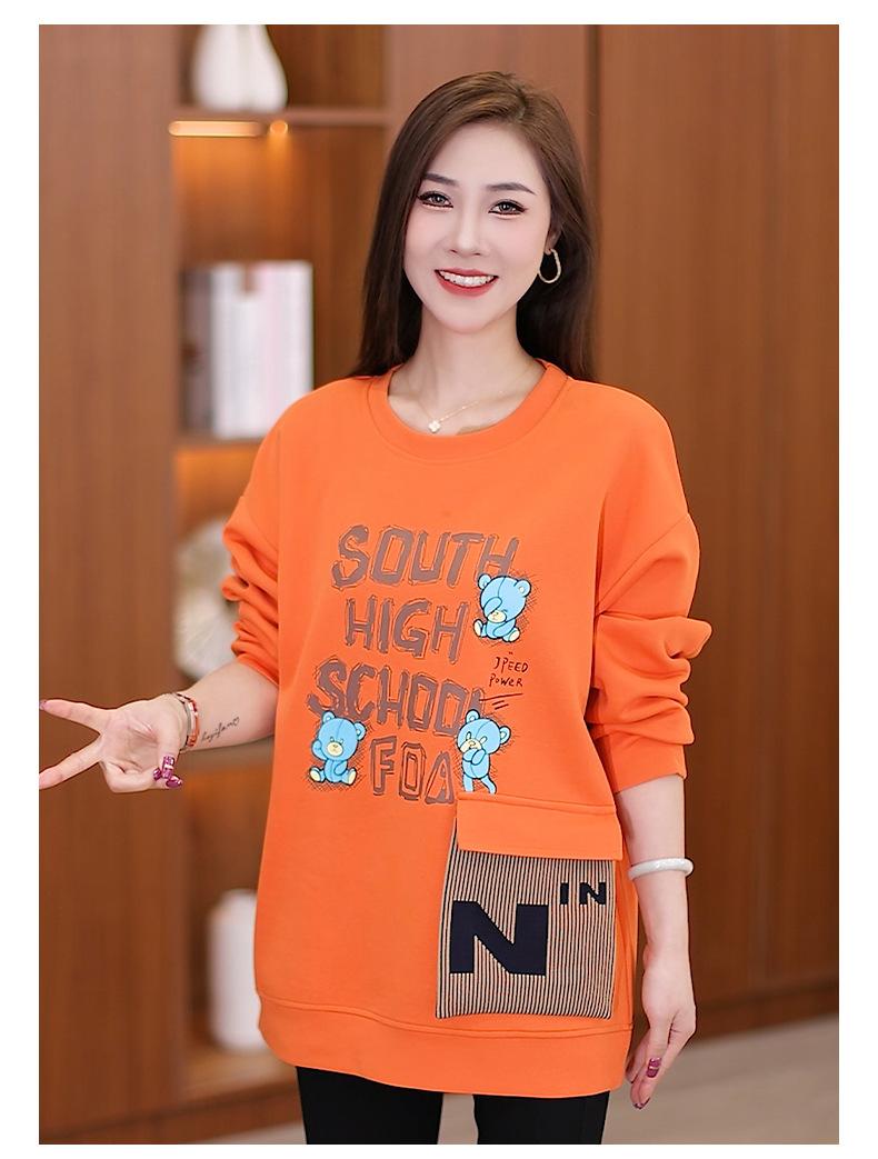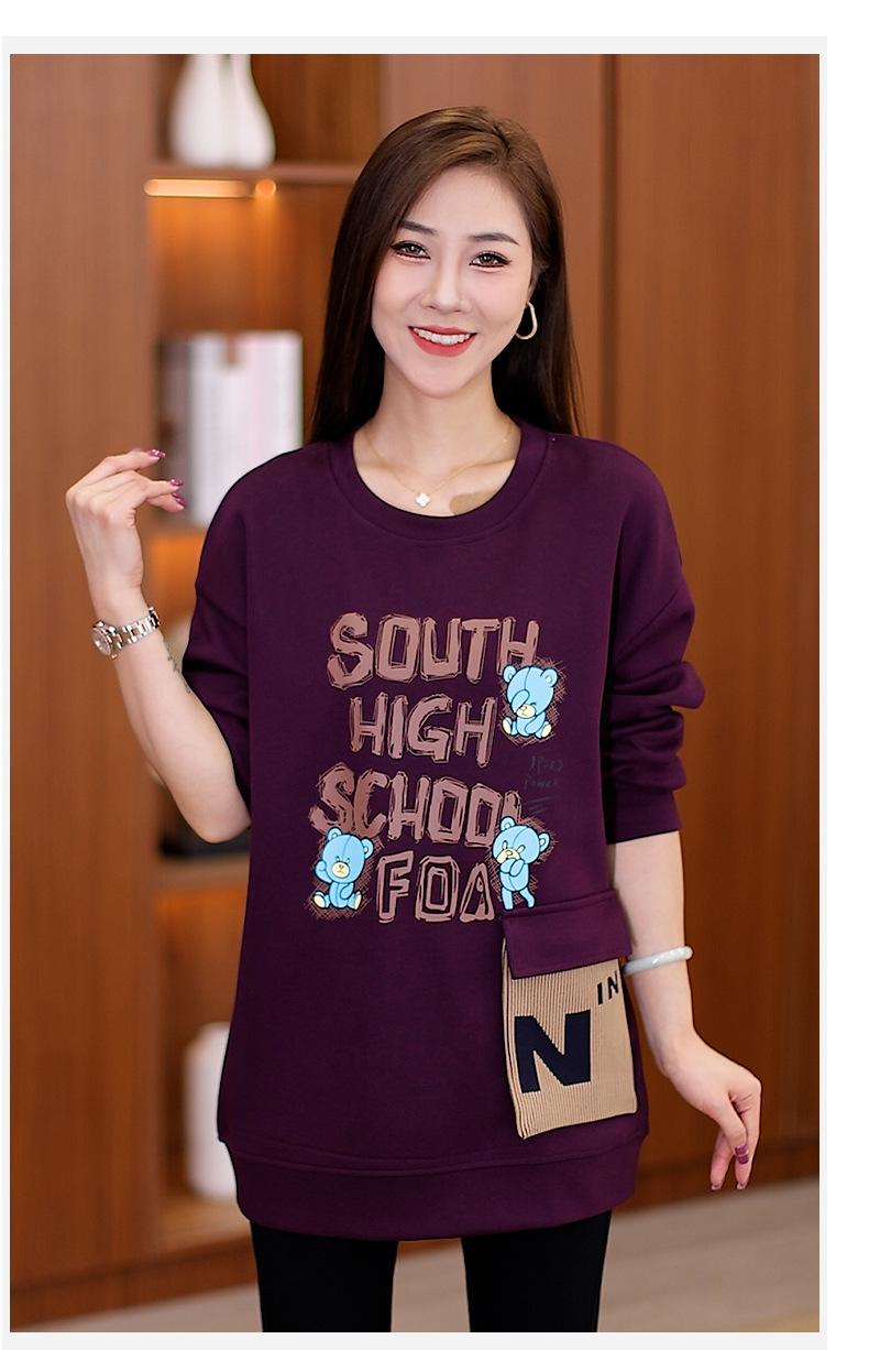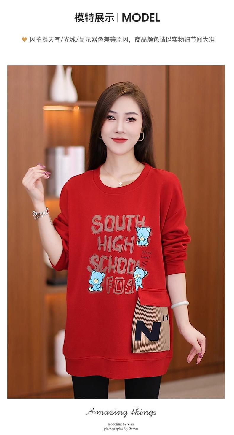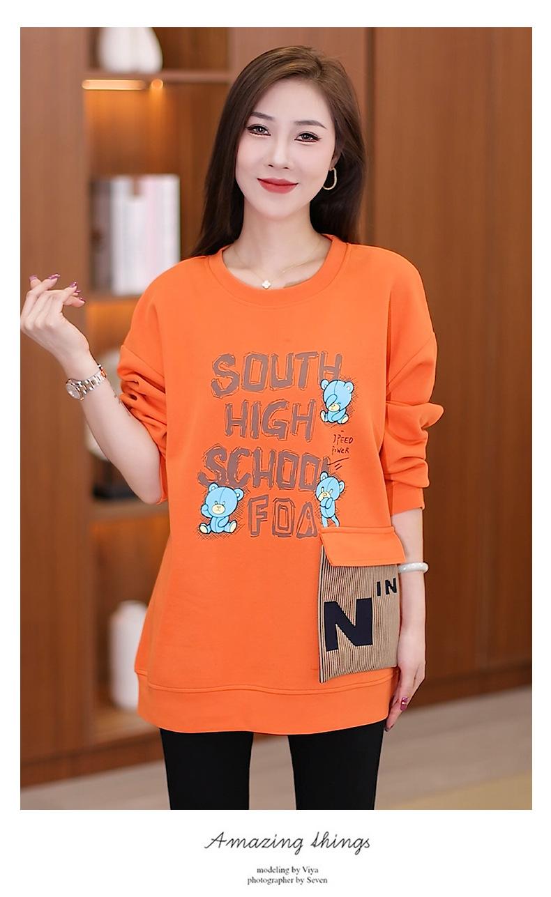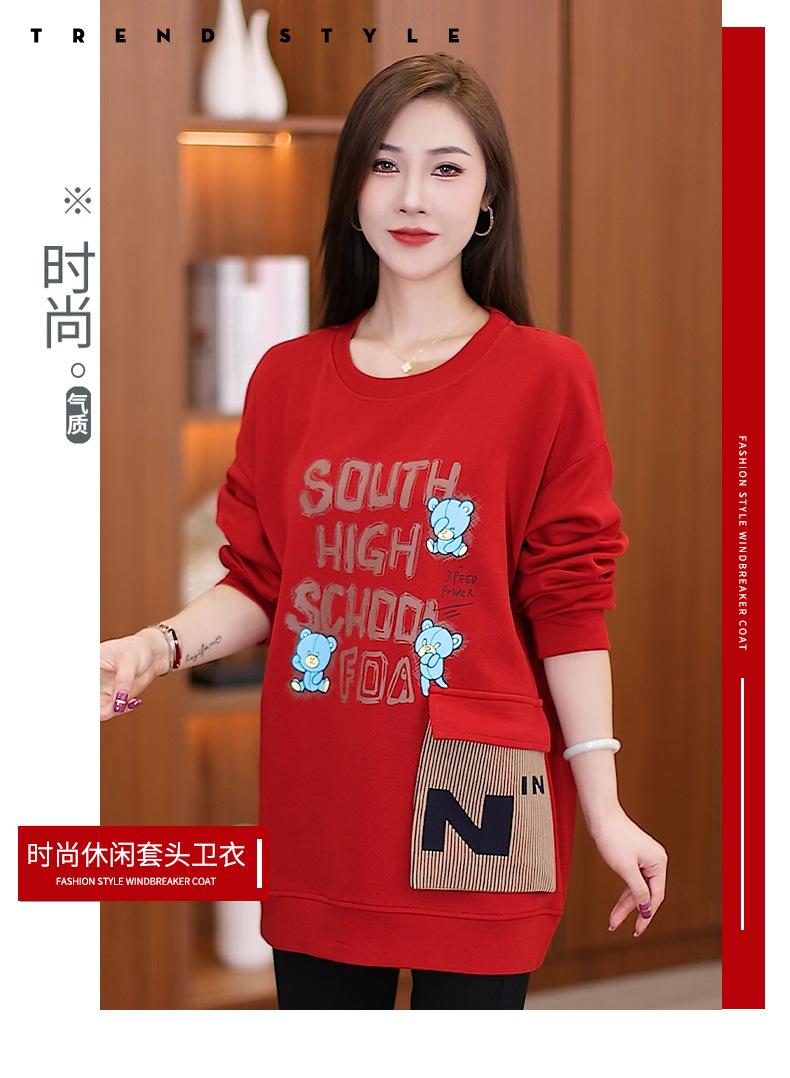 2025 Nuevo Popular Negro Primavera, Otoño e Invierno Sudadera Holgada de Cuello Redondo que Cubre los Glúteos para Mujer con Tops con Letras para Cubrir la Carne