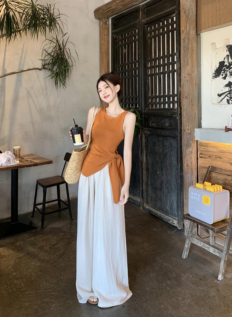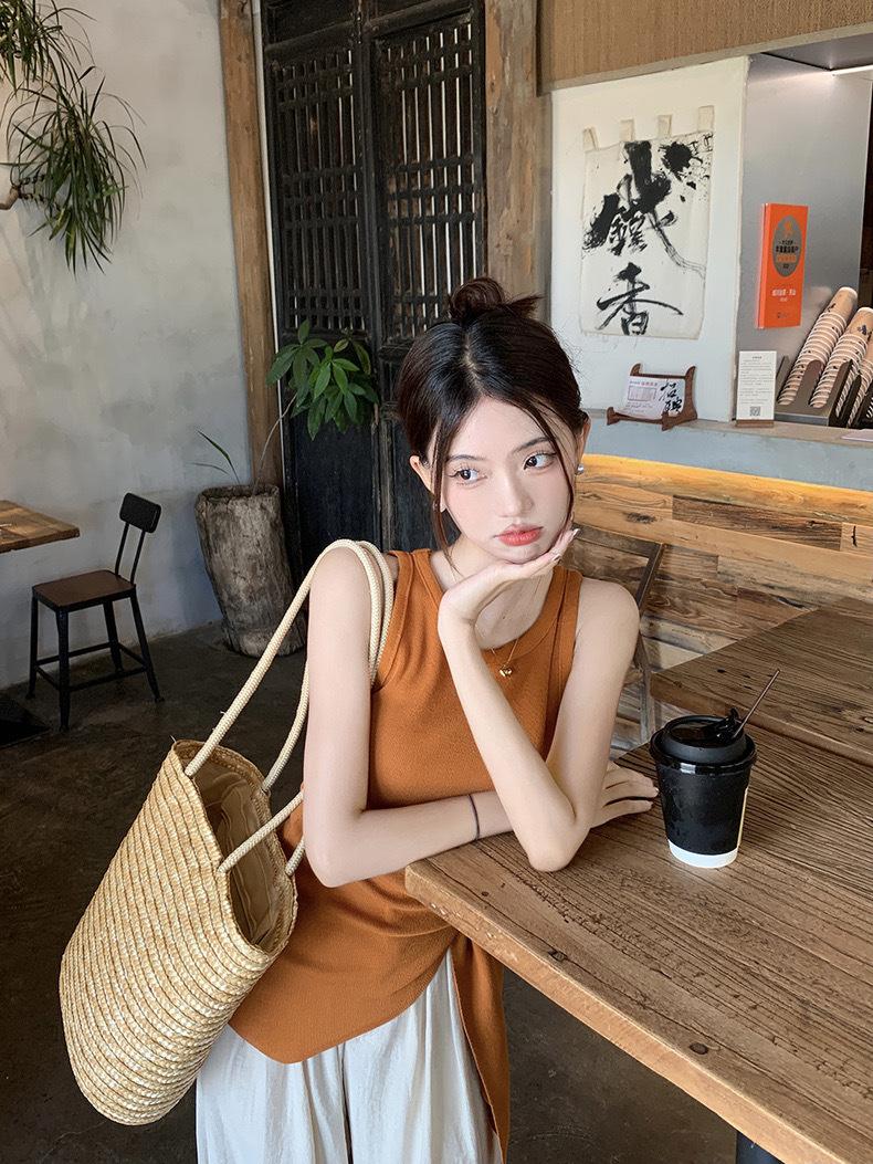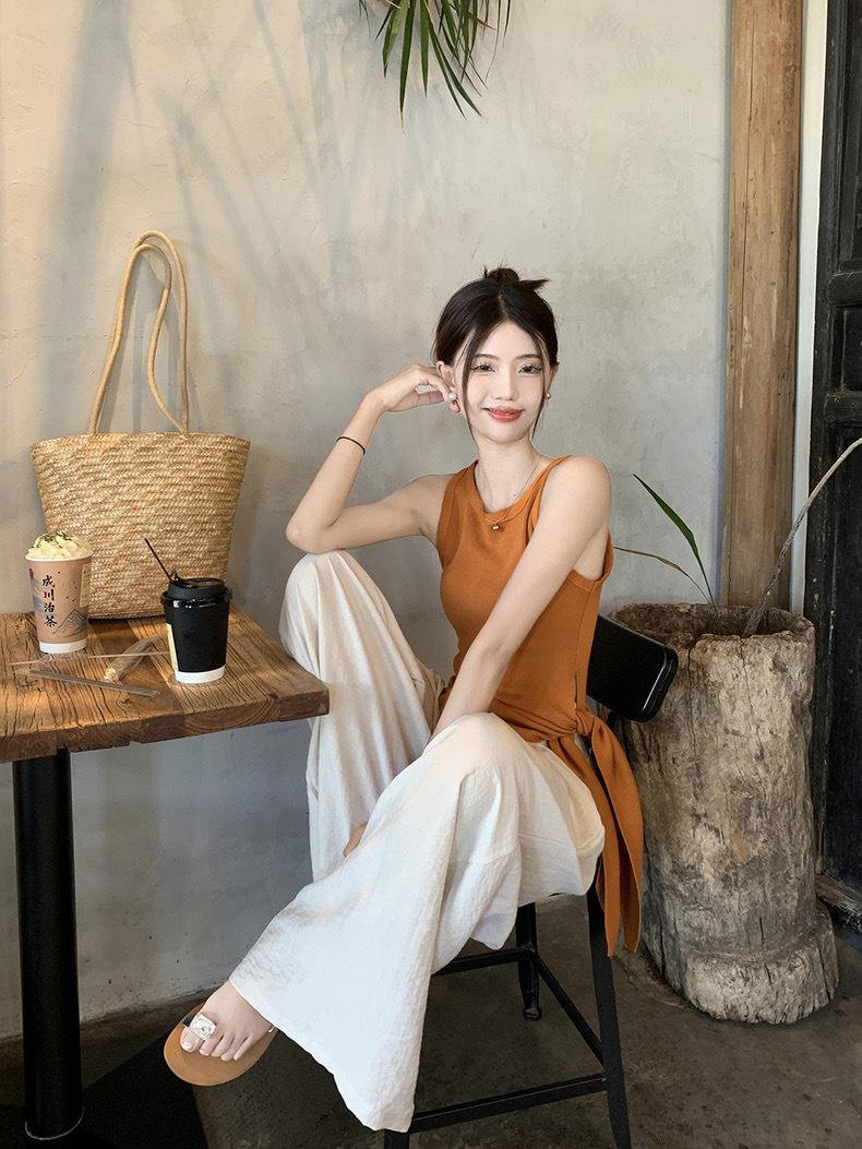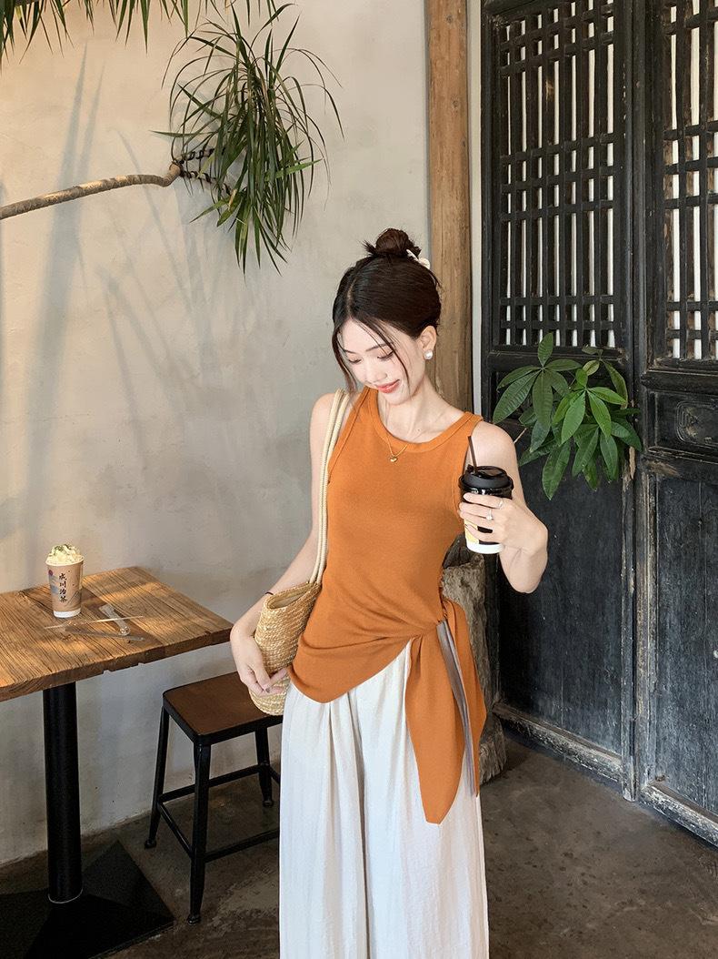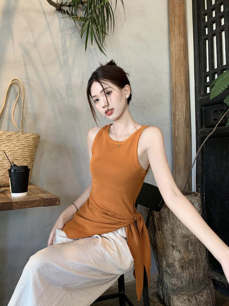 Chaleco sin mangas con tirantes laterales y diseño de estilo coreano para mujer, prenda de punto fina y ajustada, top adelgazante que combina con todo.