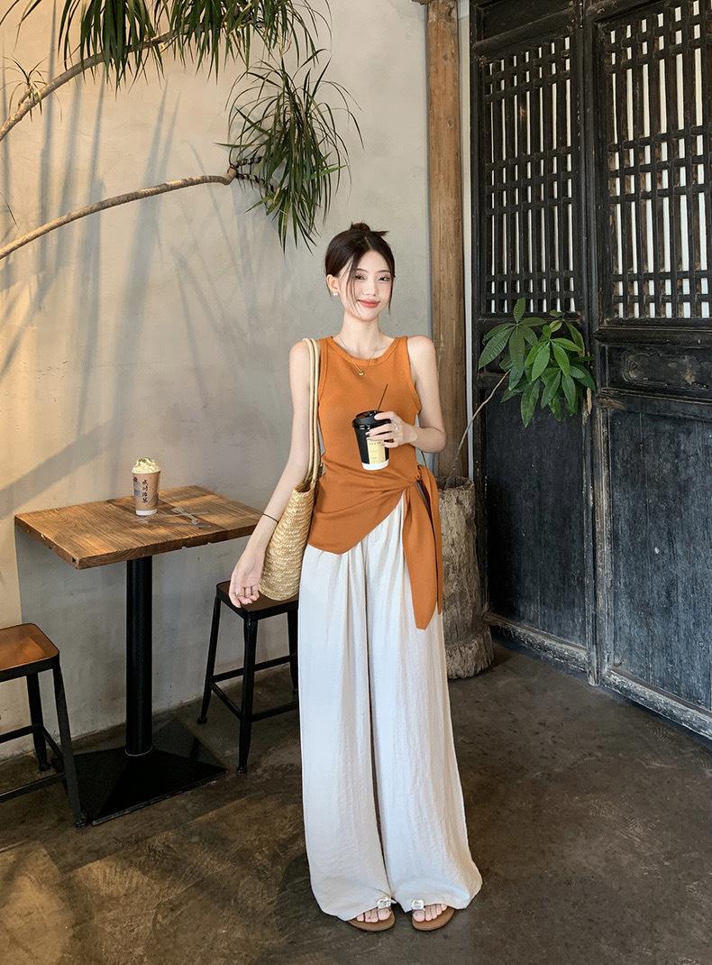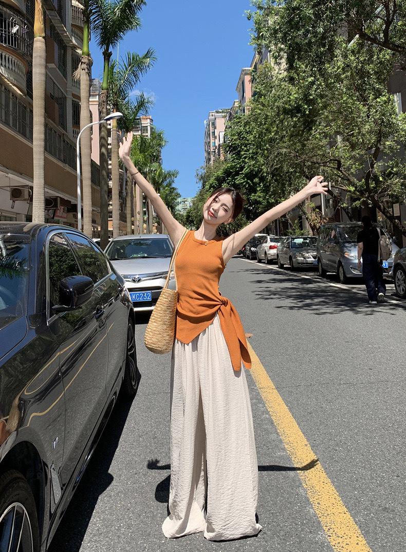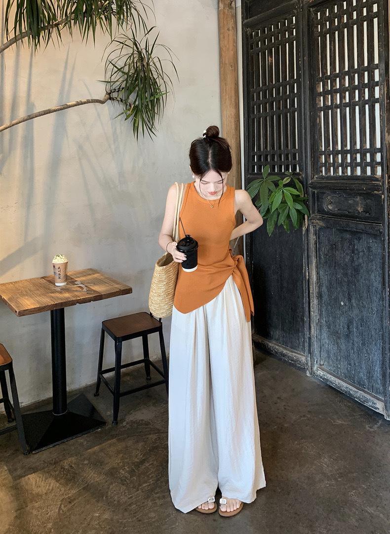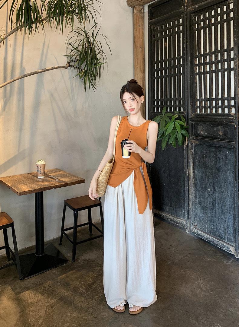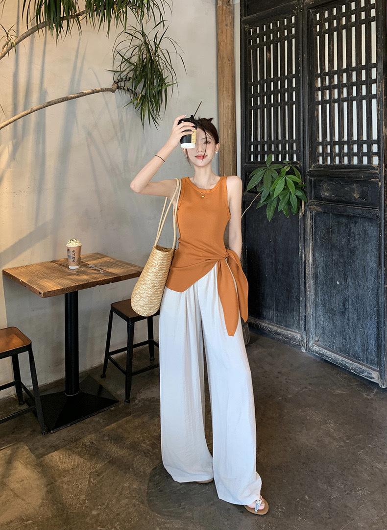 Chaleco sin mangas con tirantes laterales y diseño de estilo coreano para mujer, prenda de punto fina y ajustada, top adelgazante que combina con todo.