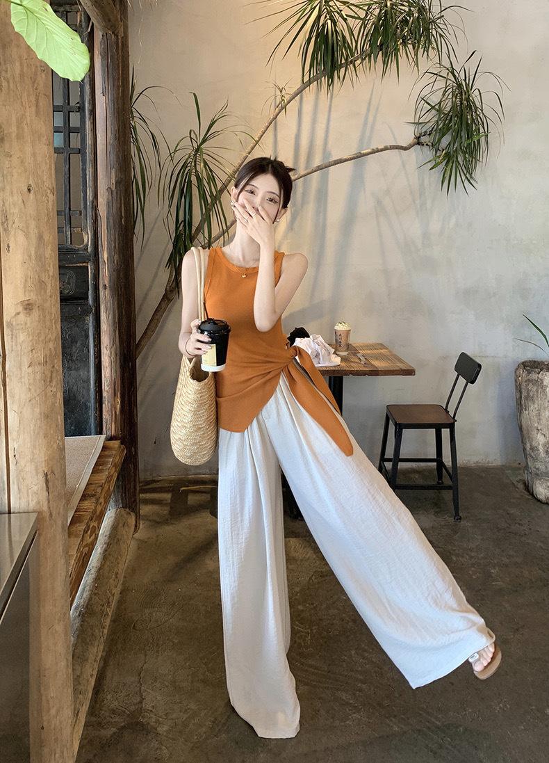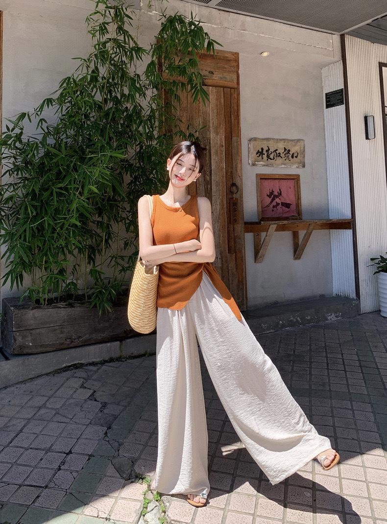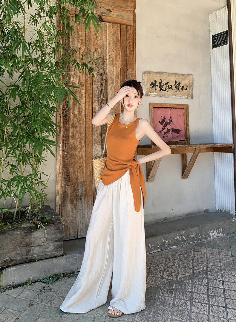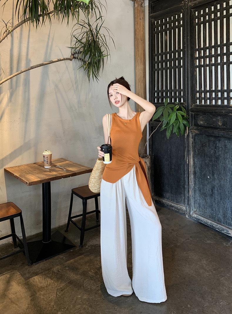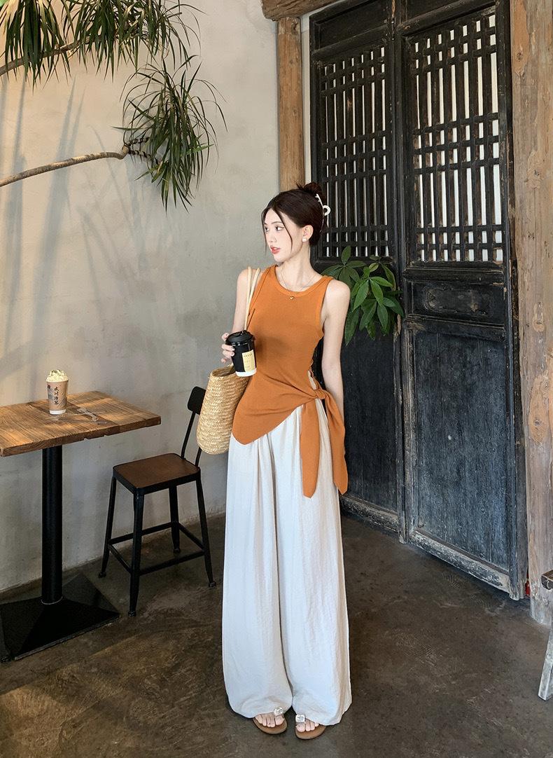 Chaleco sin mangas con tirantes laterales y diseño de estilo coreano para mujer, prenda de punto fina y ajustada, top adelgazante que combina con todo.