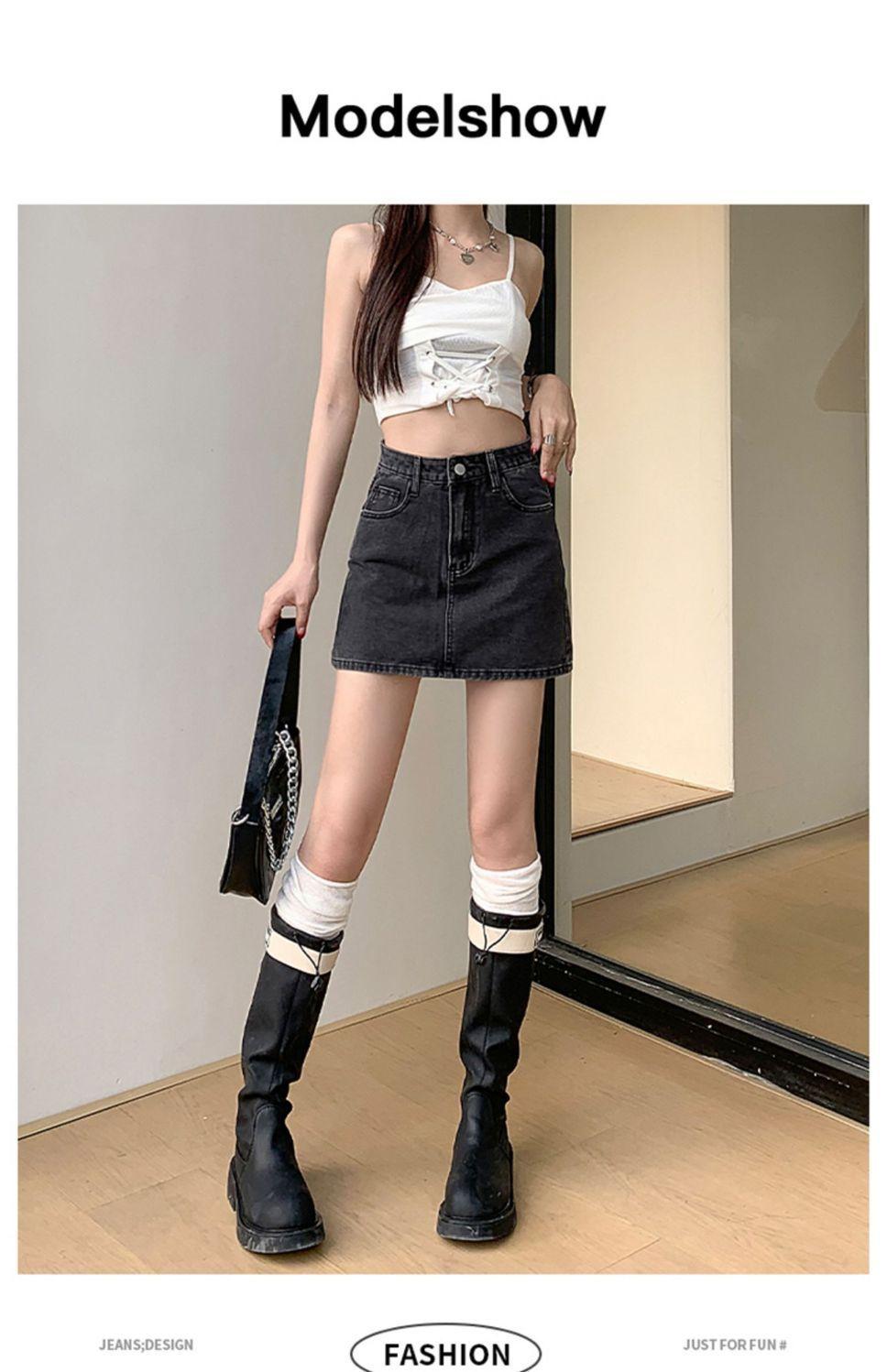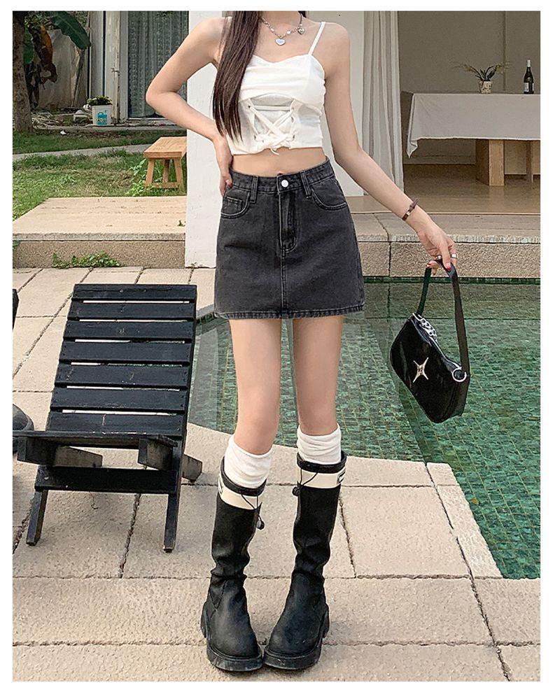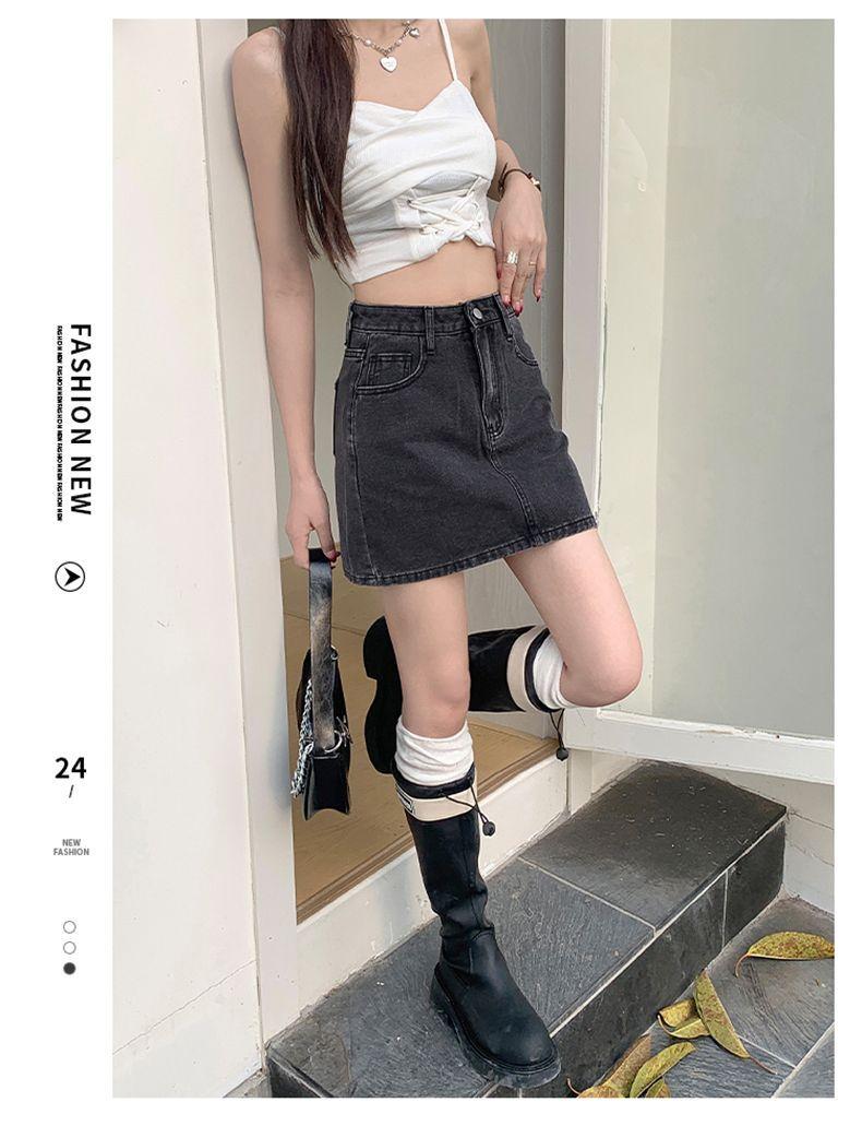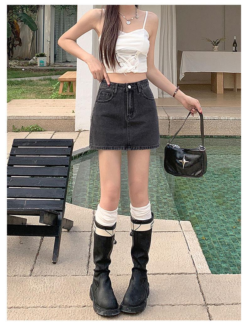 Falda vaquera de verano, nueva llegada, falda de corte A para mujer, de moda, negra, gris, de cintura alta, adelgazante, combina con todo, falda de cadera para mujer
