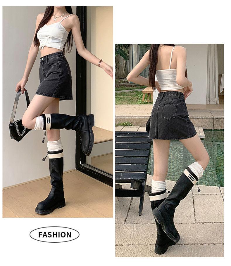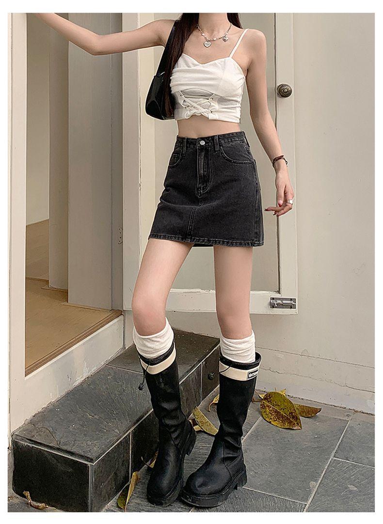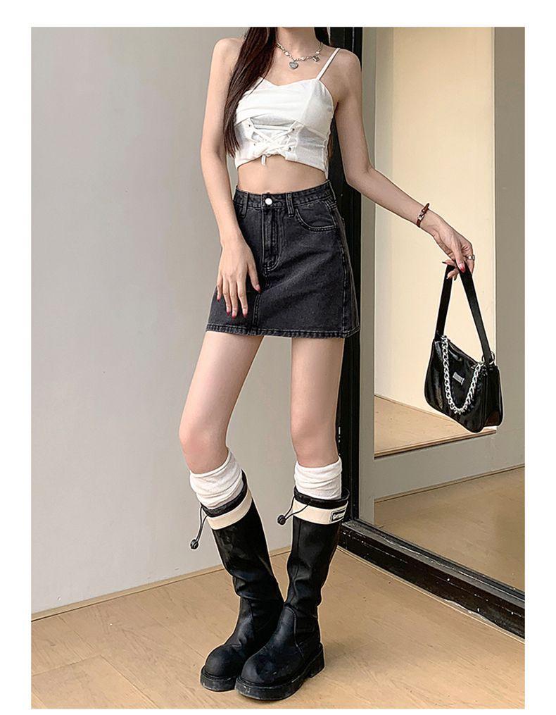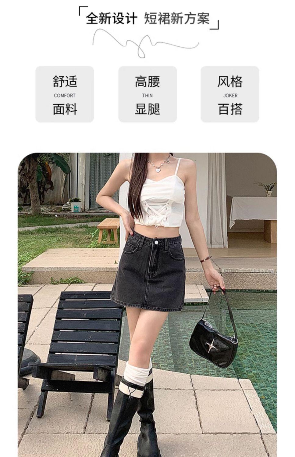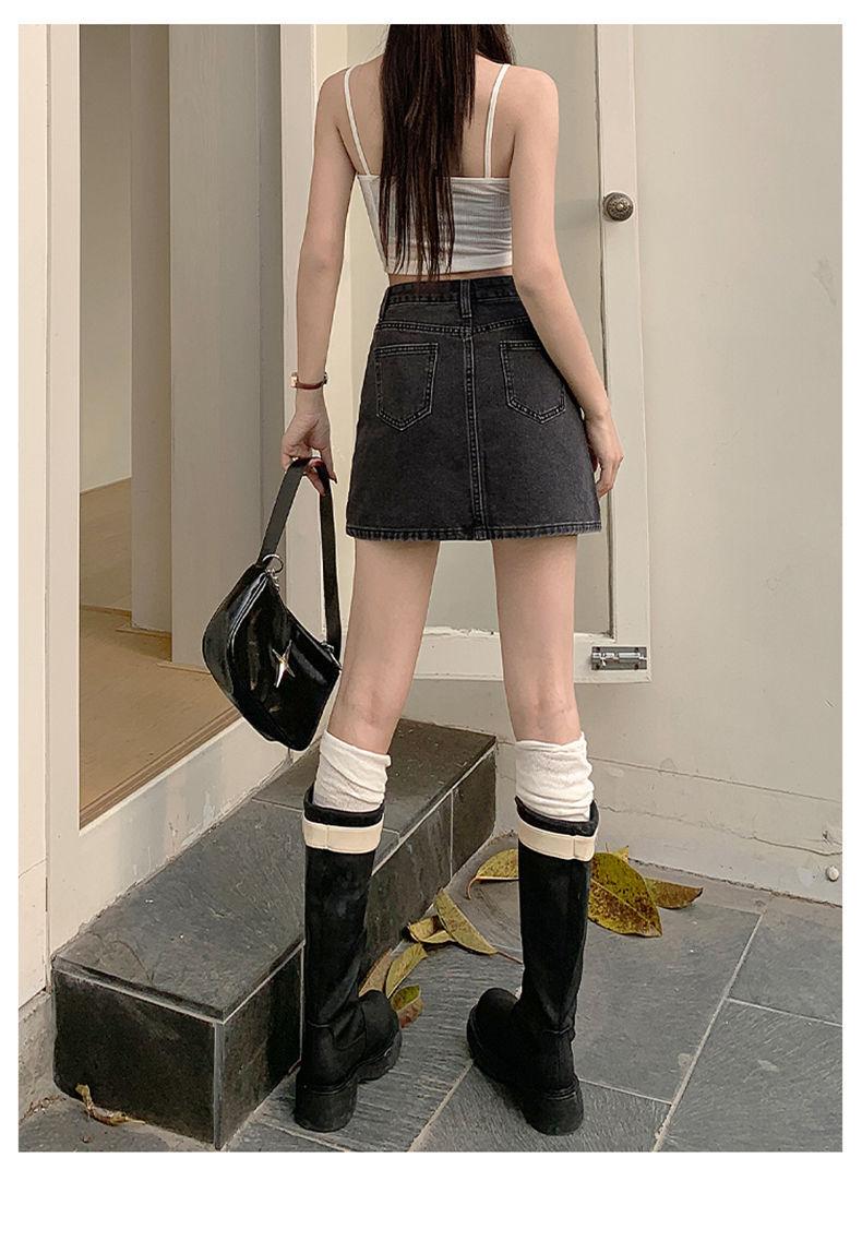 Falda vaquera de verano, nueva llegada, falda de corte A para mujer, de moda, negra, gris, de cintura alta, adelgazante, combina con todo, falda de cadera para mujer
