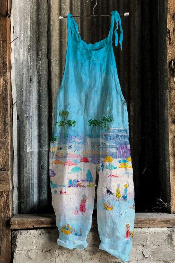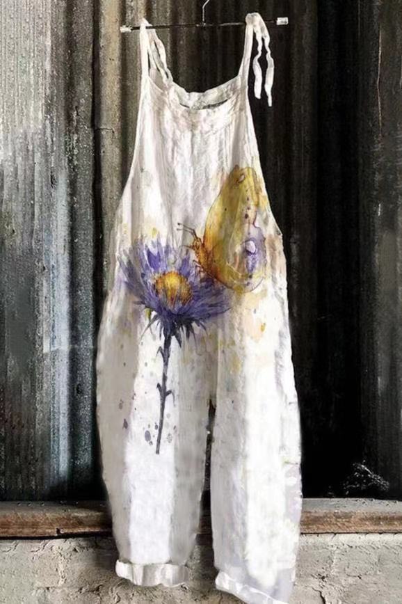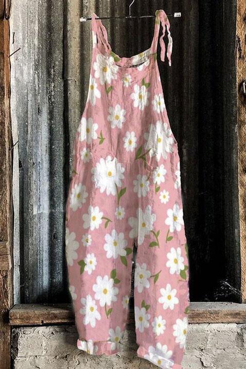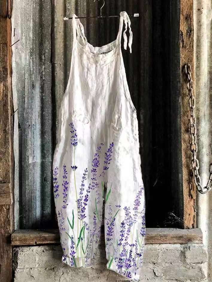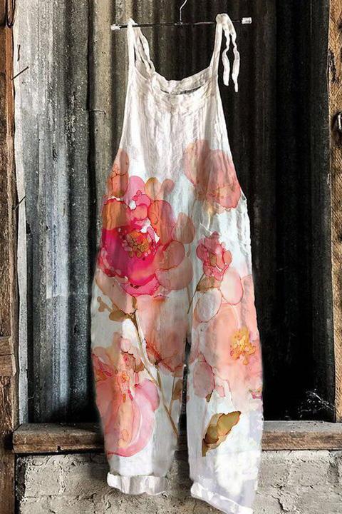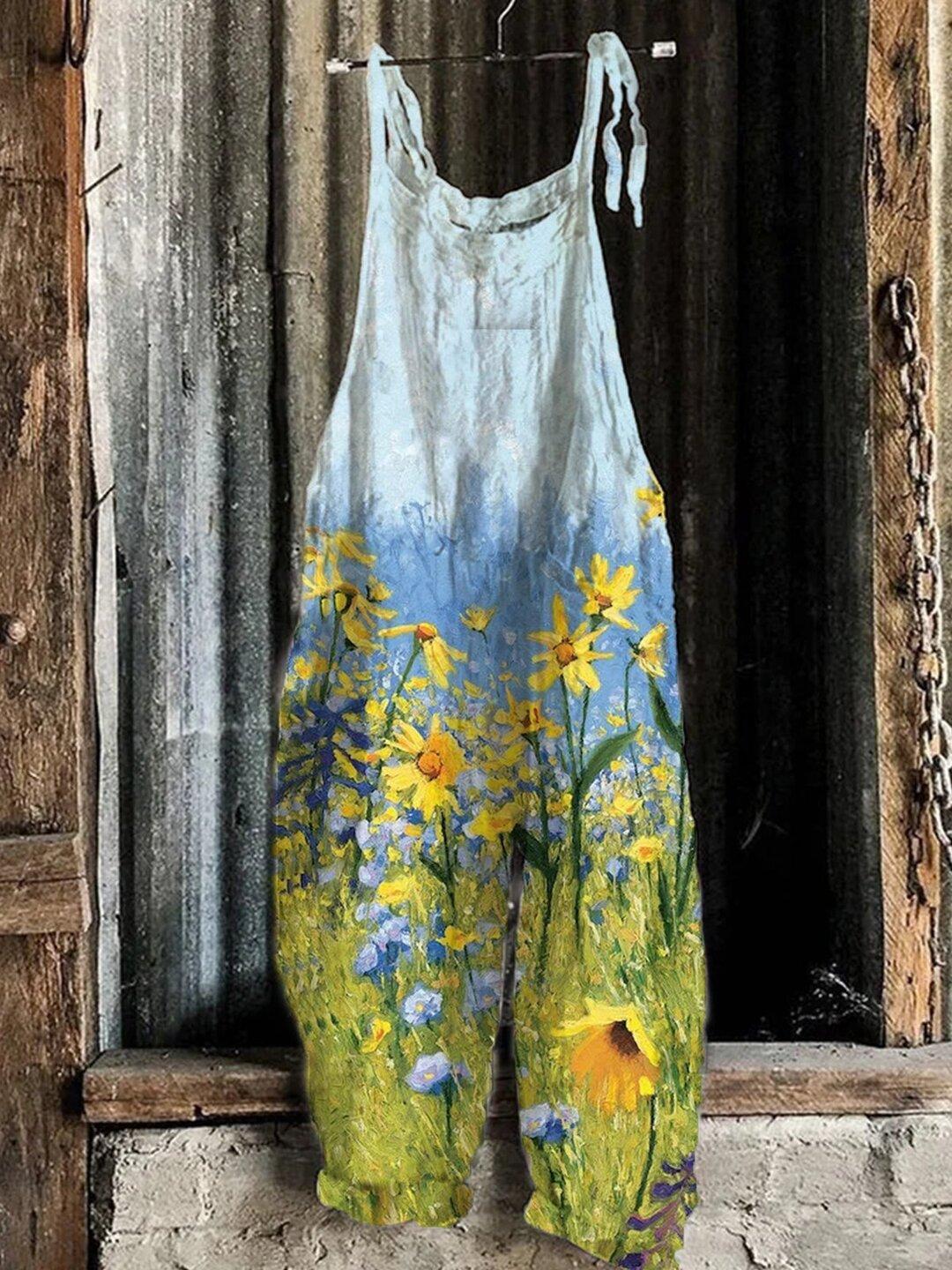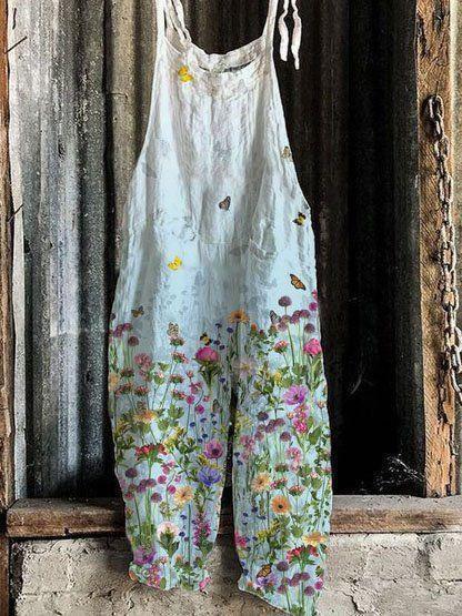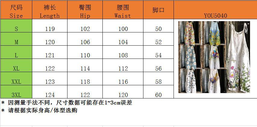 2023 Ropa de Mujer Transfronteriza Amazon Europeo y Americano Verano Nuevo Dulce Pequeño Fresco Estampado Retro Mono de Pierna Ancha para Mujer