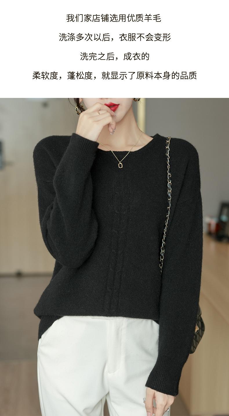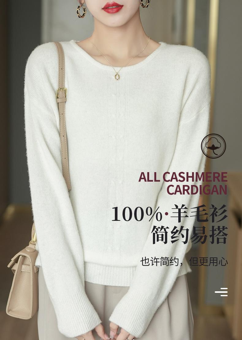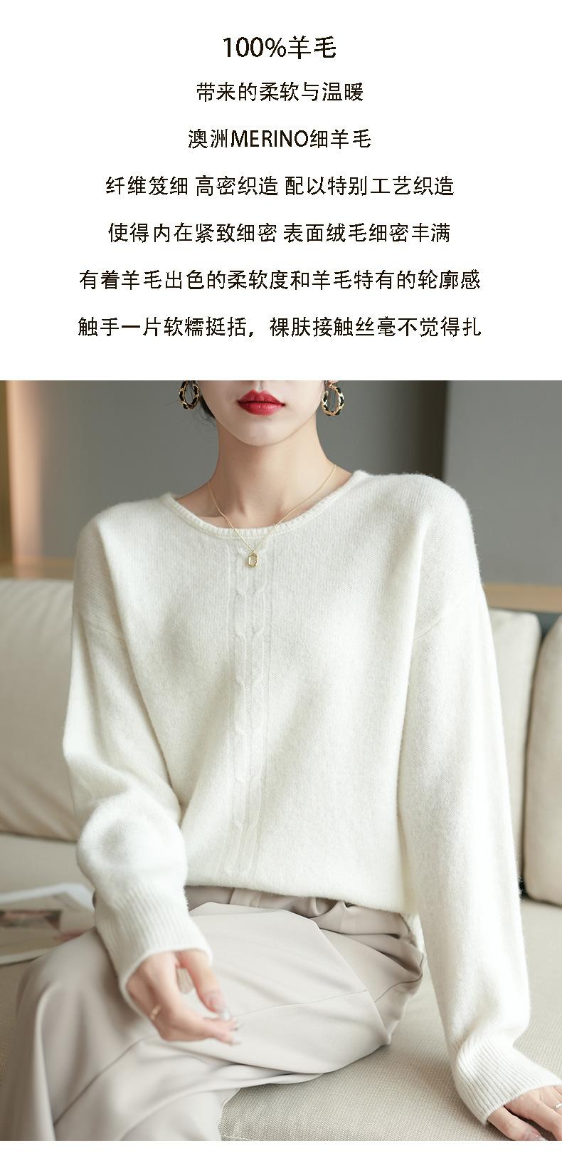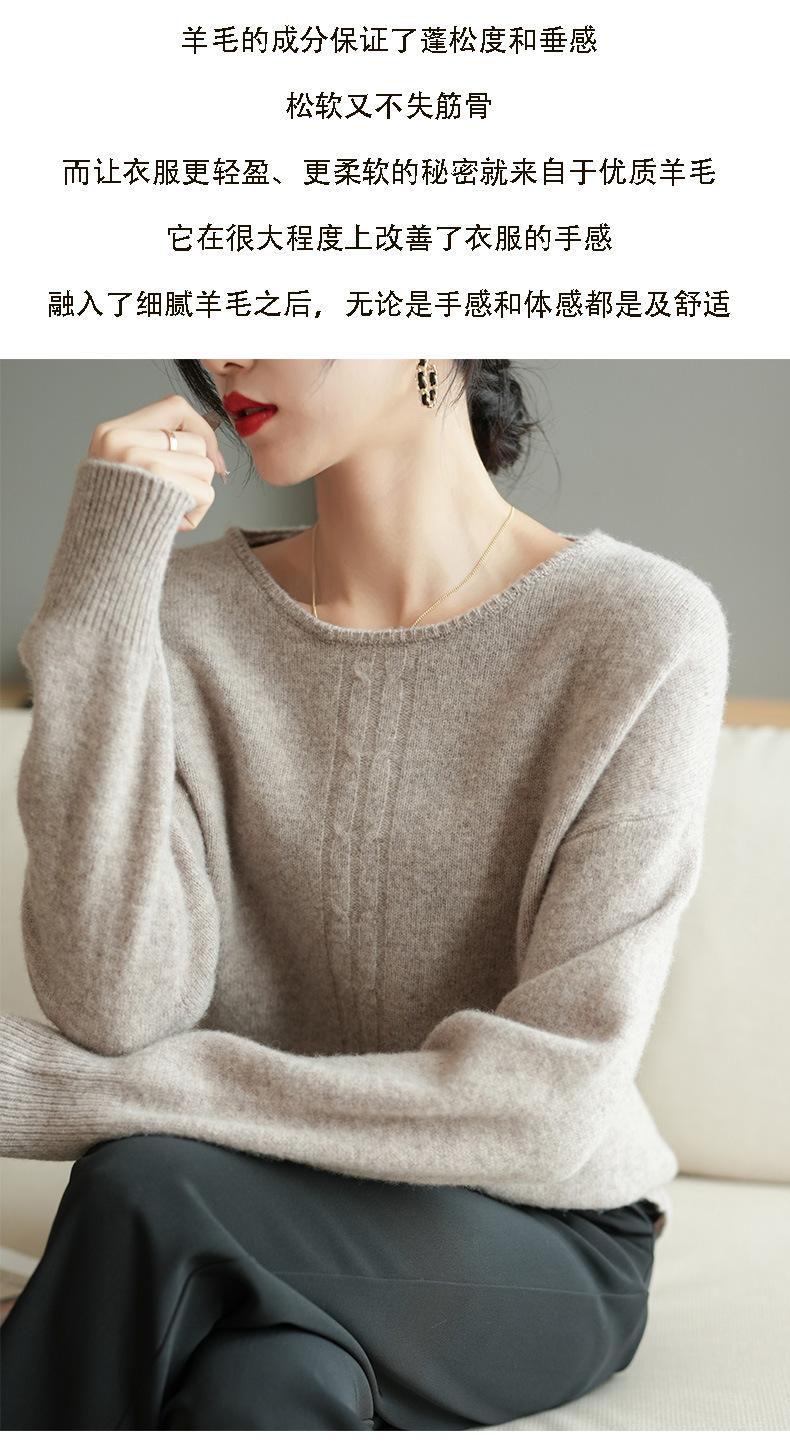 Suéter de lana pura con cuello redondo para otoño e invierno, prendas refinadas de primera línea para mujer, suéter suelto coreano, suéter de punto para mujer, camisa elegante con base encordada