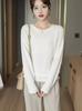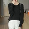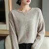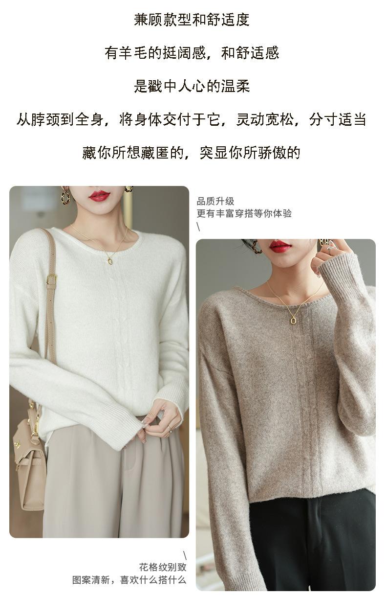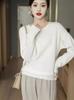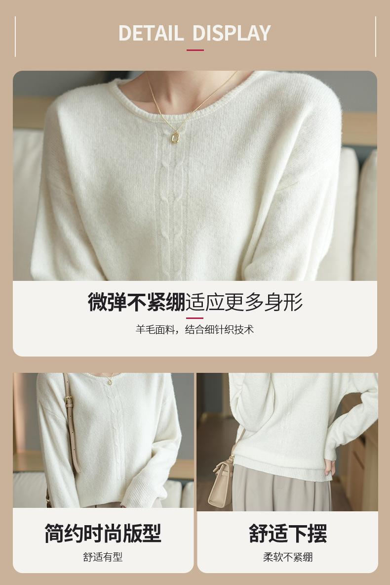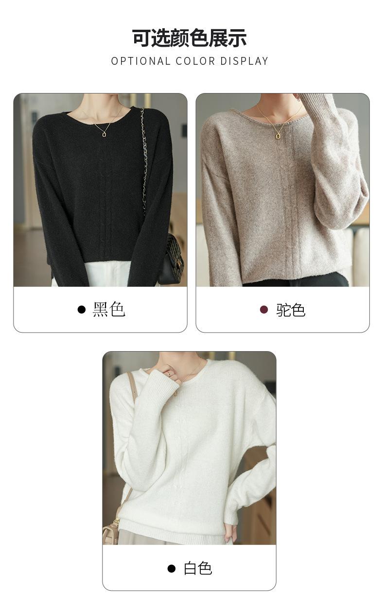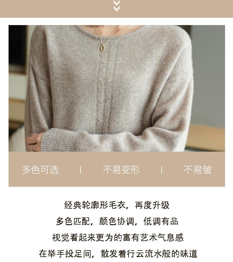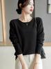 Suéter de lana pura con cuello redondo para otoño e invierno, prendas refinadas de primera línea para mujer, suéter suelto coreano, suéter de punto para mujer, camisa elegante con base encordada