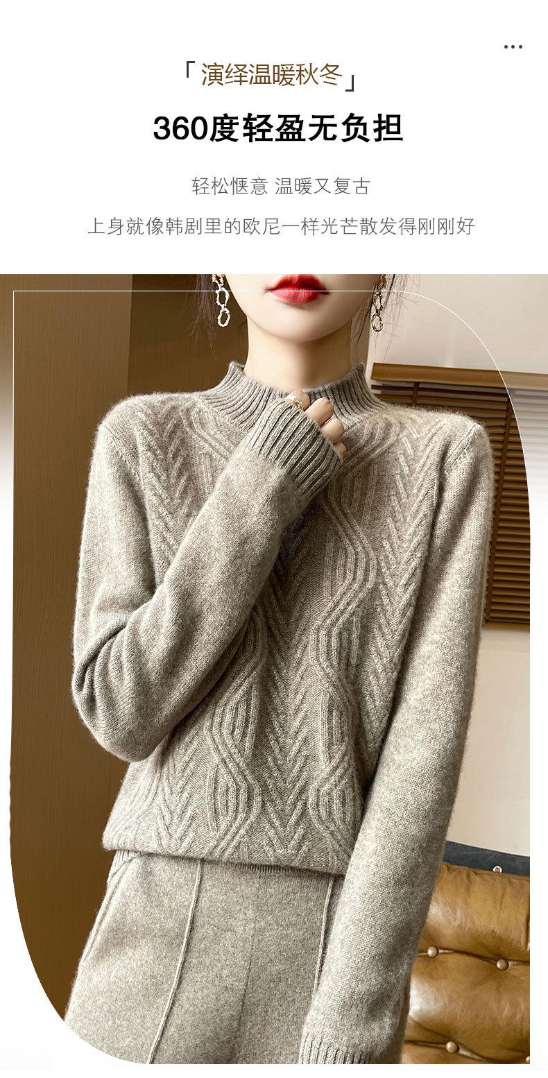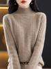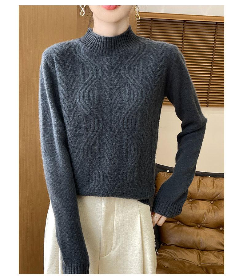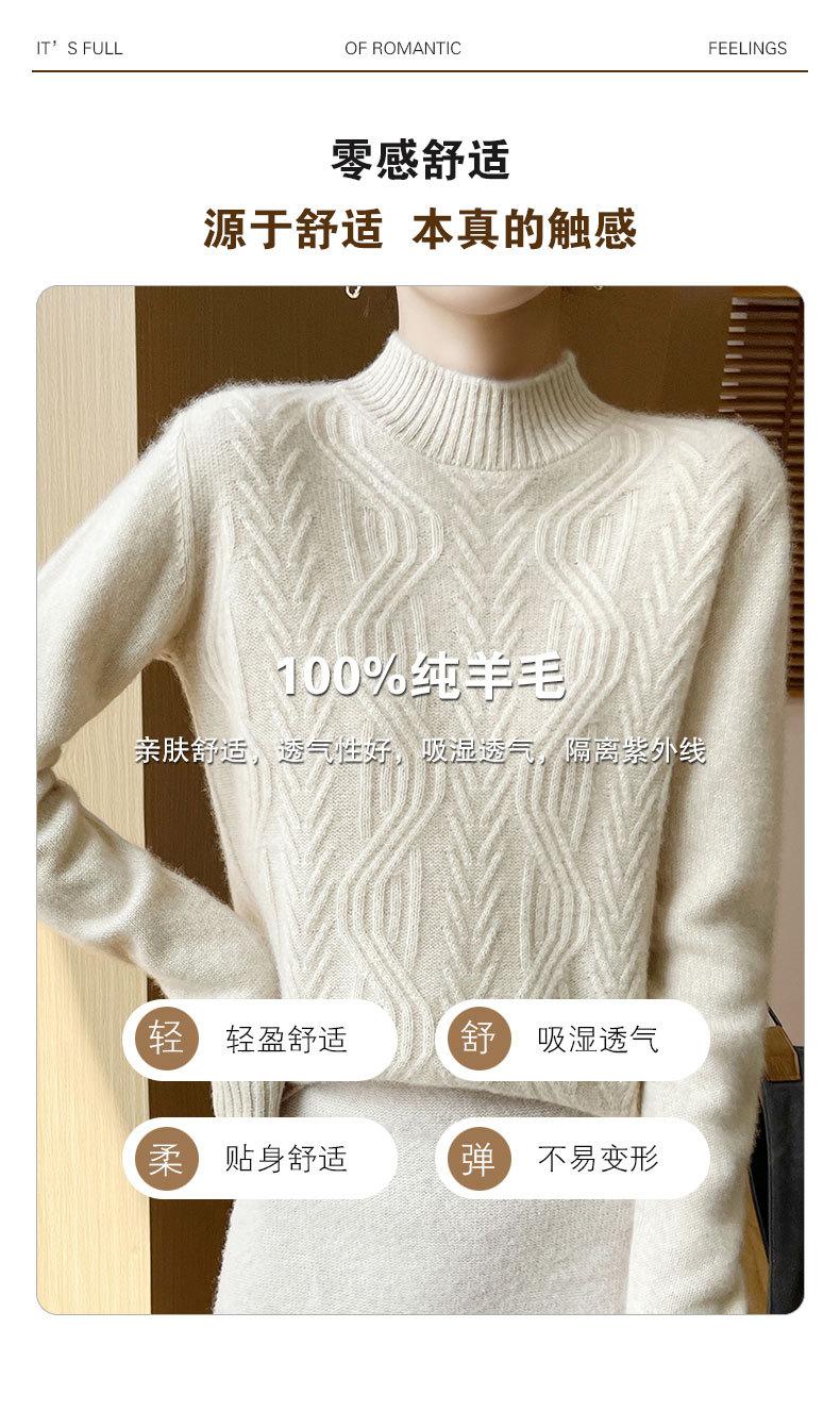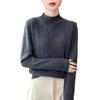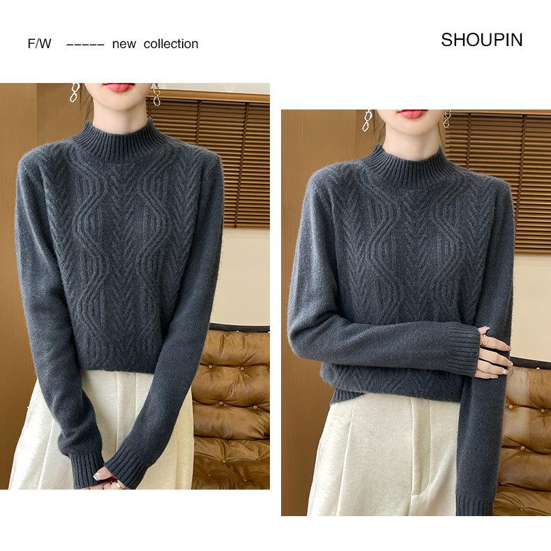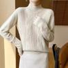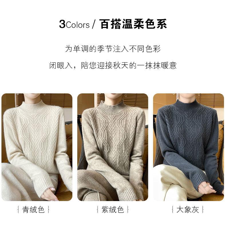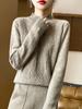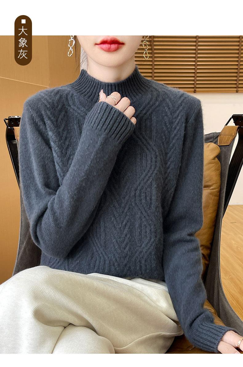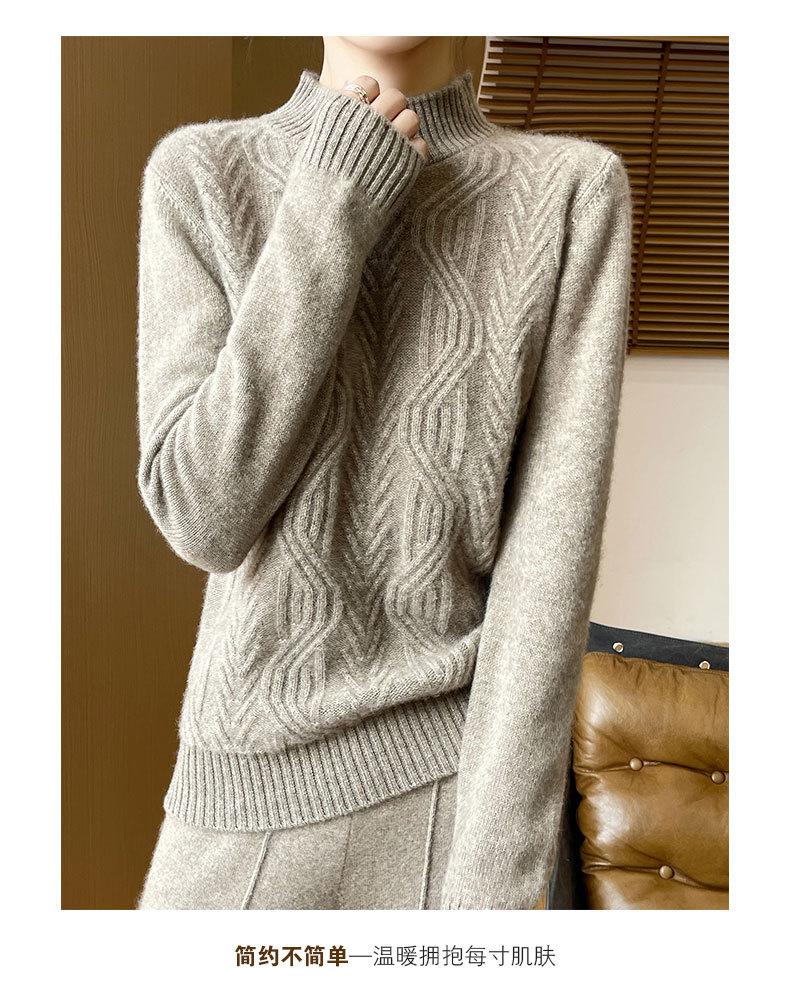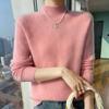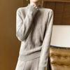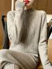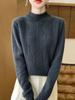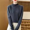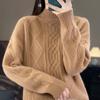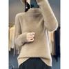 Suéter de lana 100 % de color puro para mujer, nuevo, de otoño e invierno, con cuello alto medio, grueso, suelto, de punto jacquard a la moda.