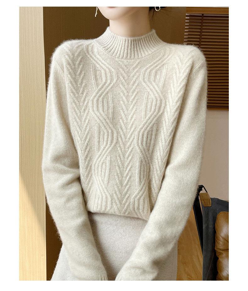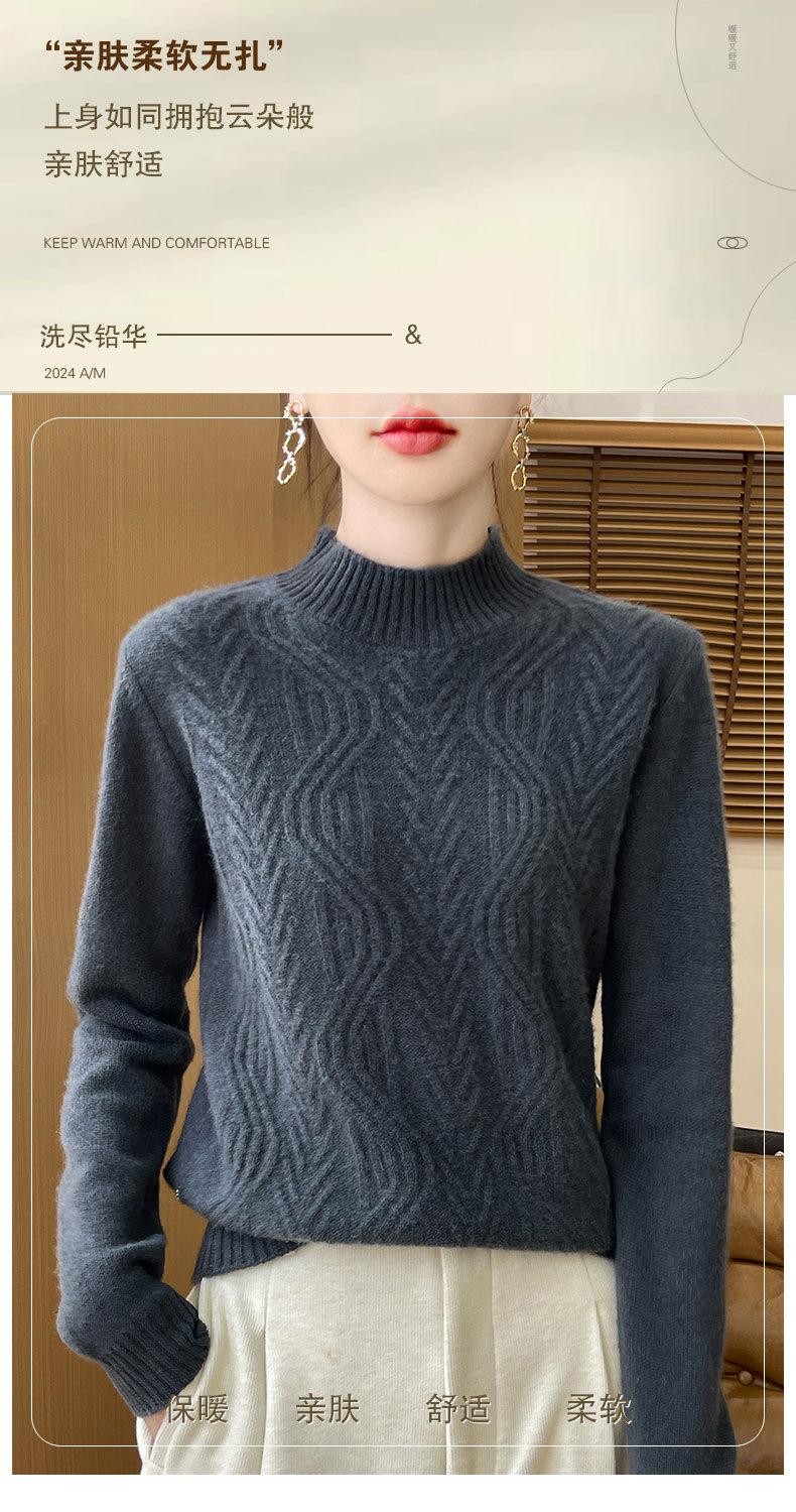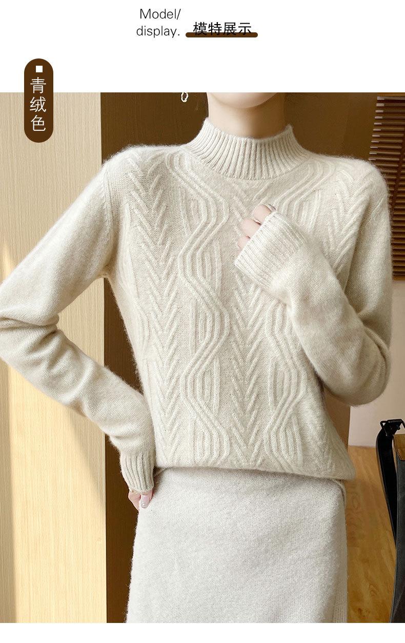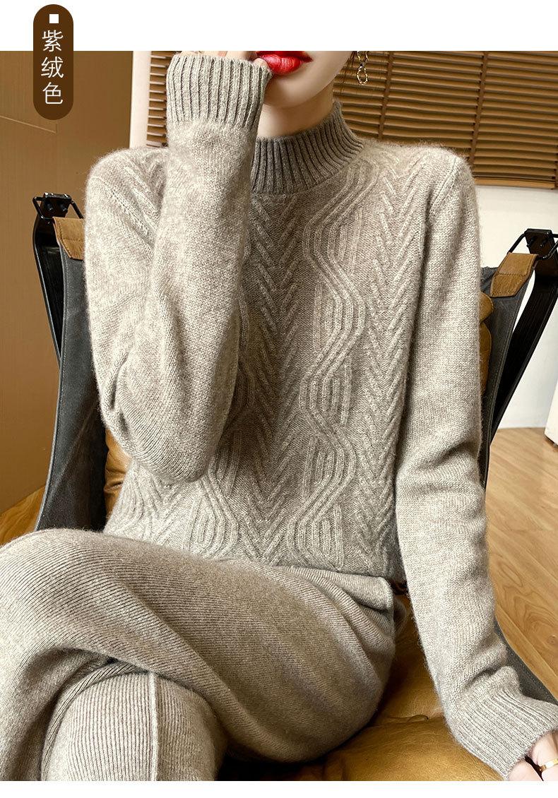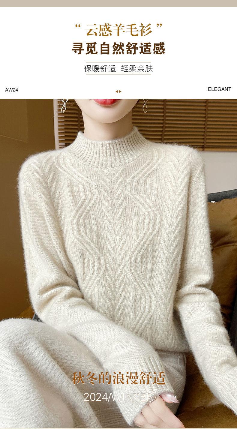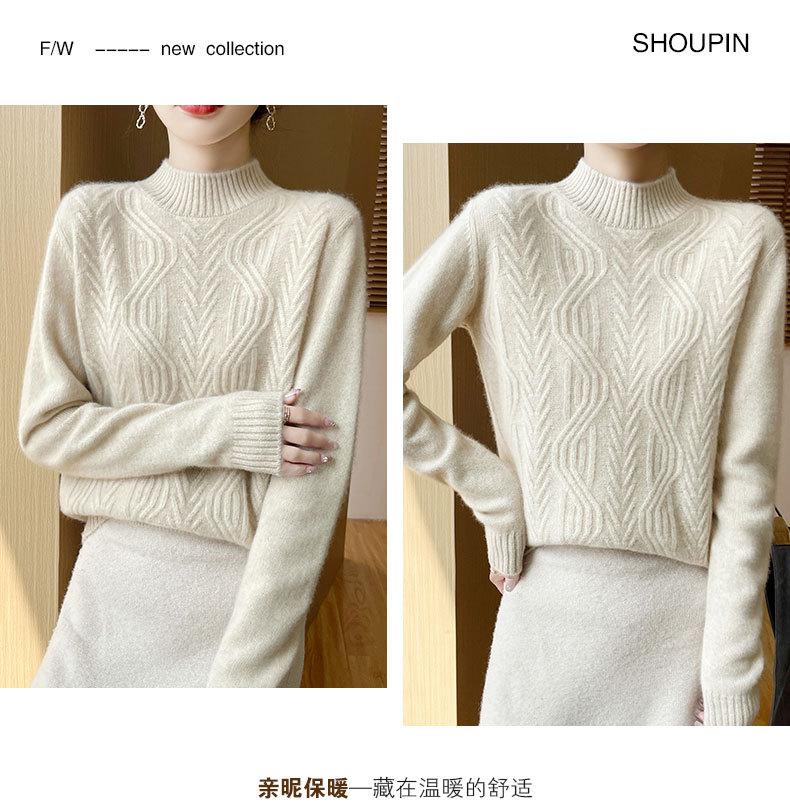 Suéter de lana 100 % de color puro para mujer, nuevo, de otoño e invierno, con cuello alto medio, grueso, suelto, de punto jacquard a la moda.