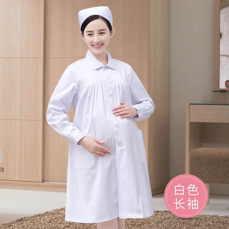 Bata blanca para embarazadas, médicos durante el embarazo, traje de manga corta y manga larga, pantalones de trabajo de maternidad con soporte abdominal, cuello redondo de verano