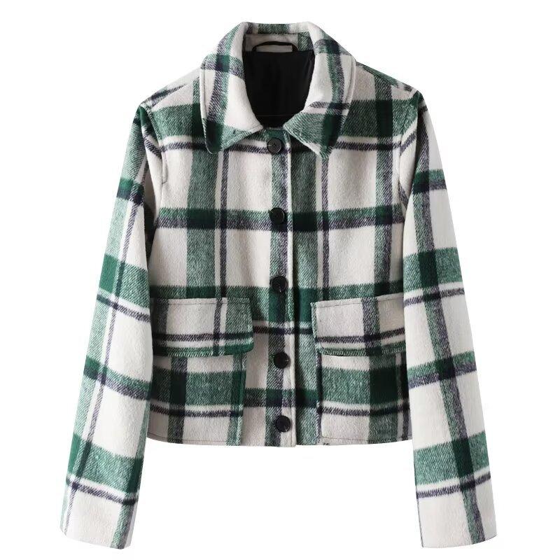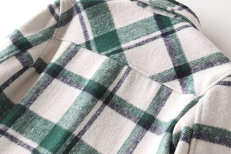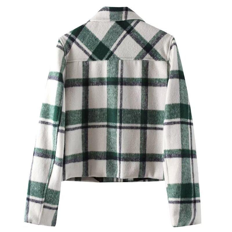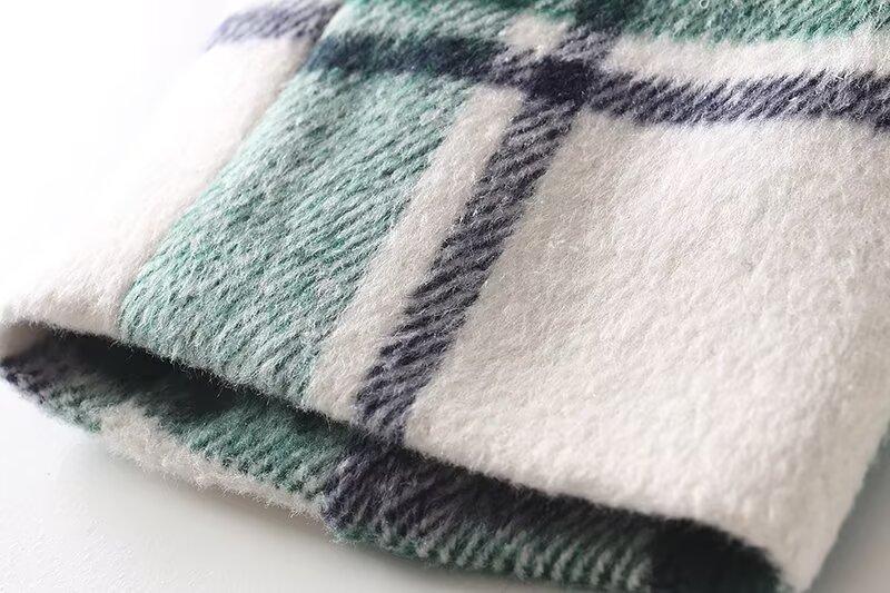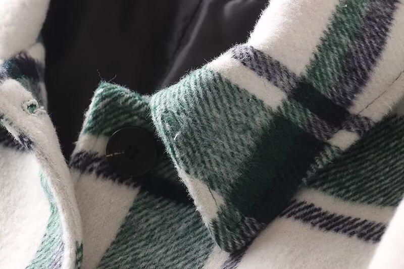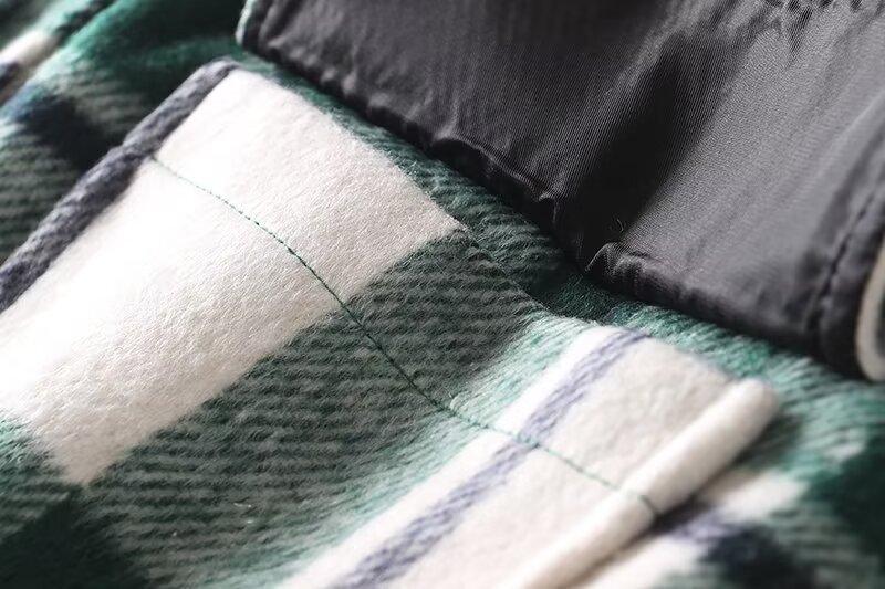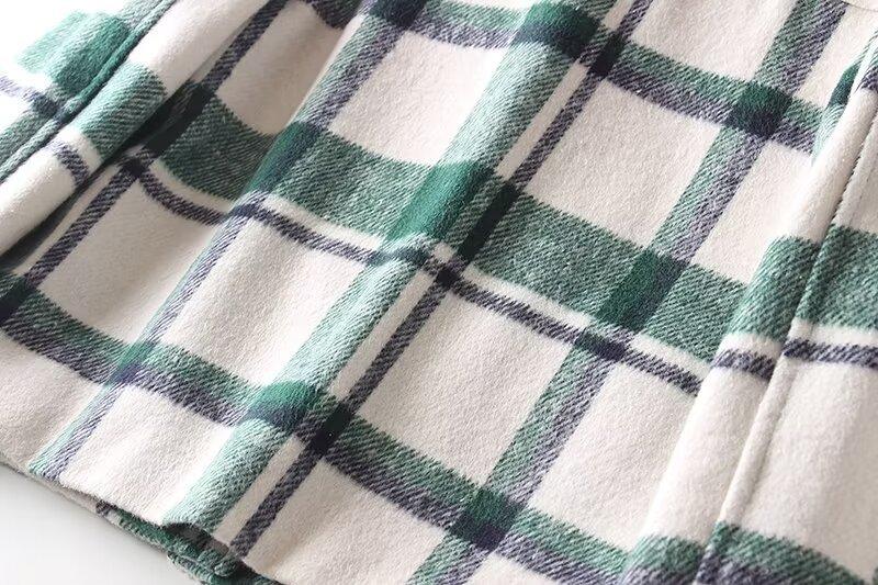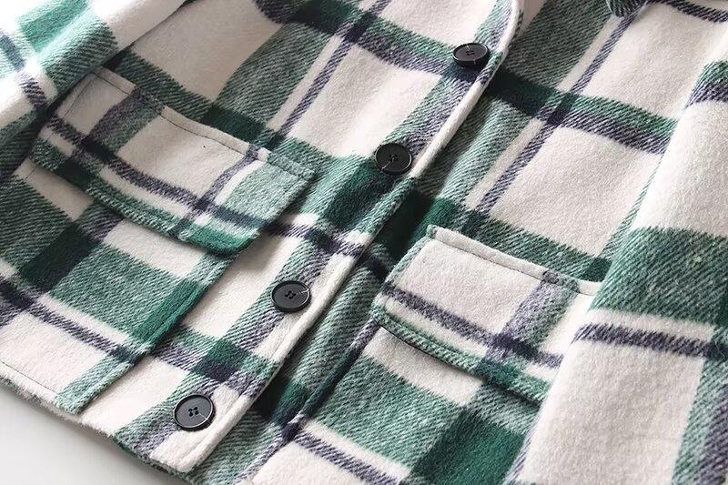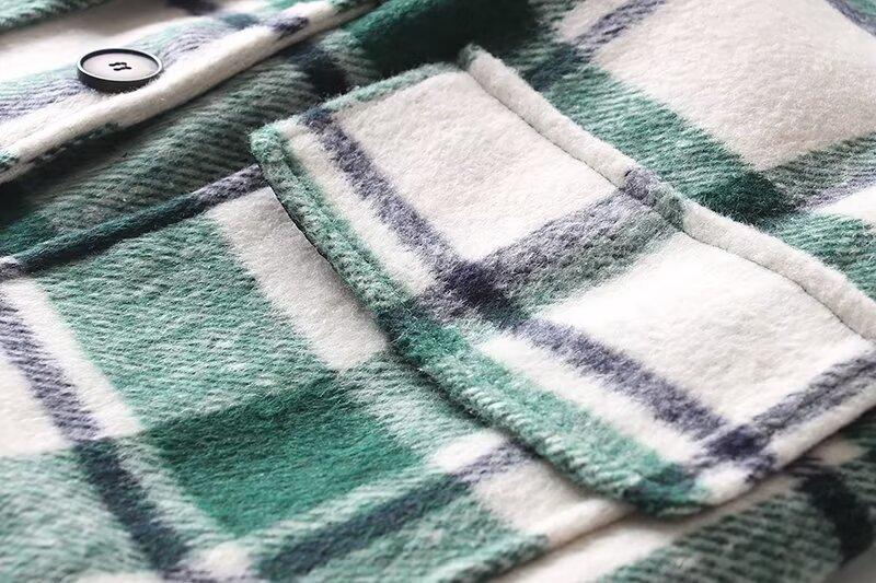 ZR Comercio exterior transfronterizo Ropa de mujer al por mayor Ropa de mujer de estilo europeo y americano Primavera 2024 Nuevas pegatinas Bolso Decoración Abrigo a cuadros