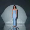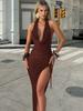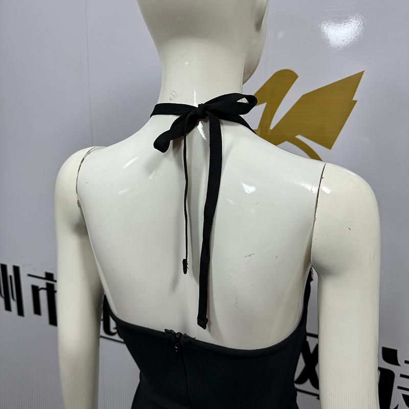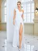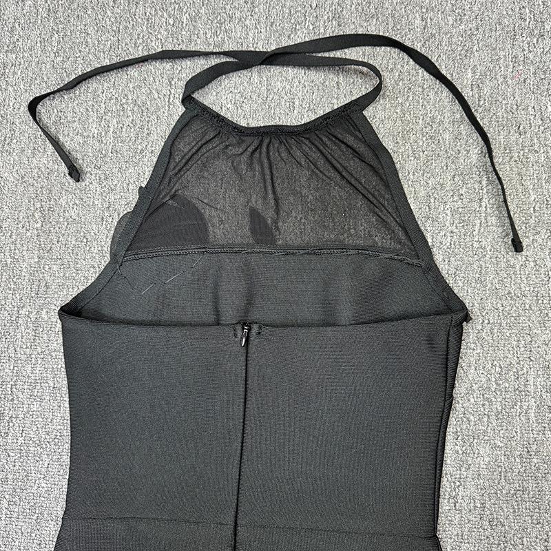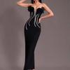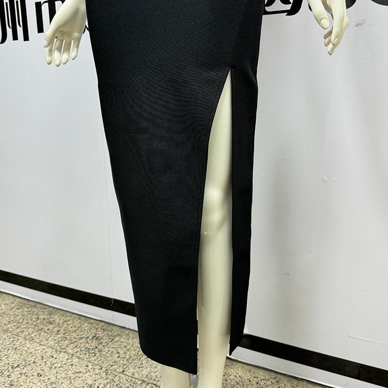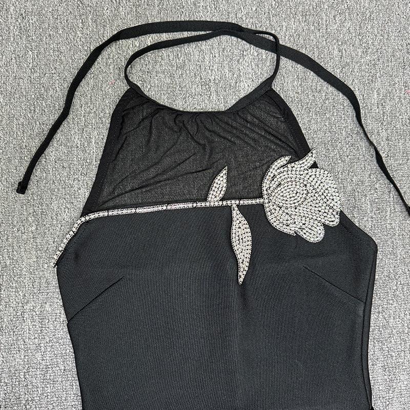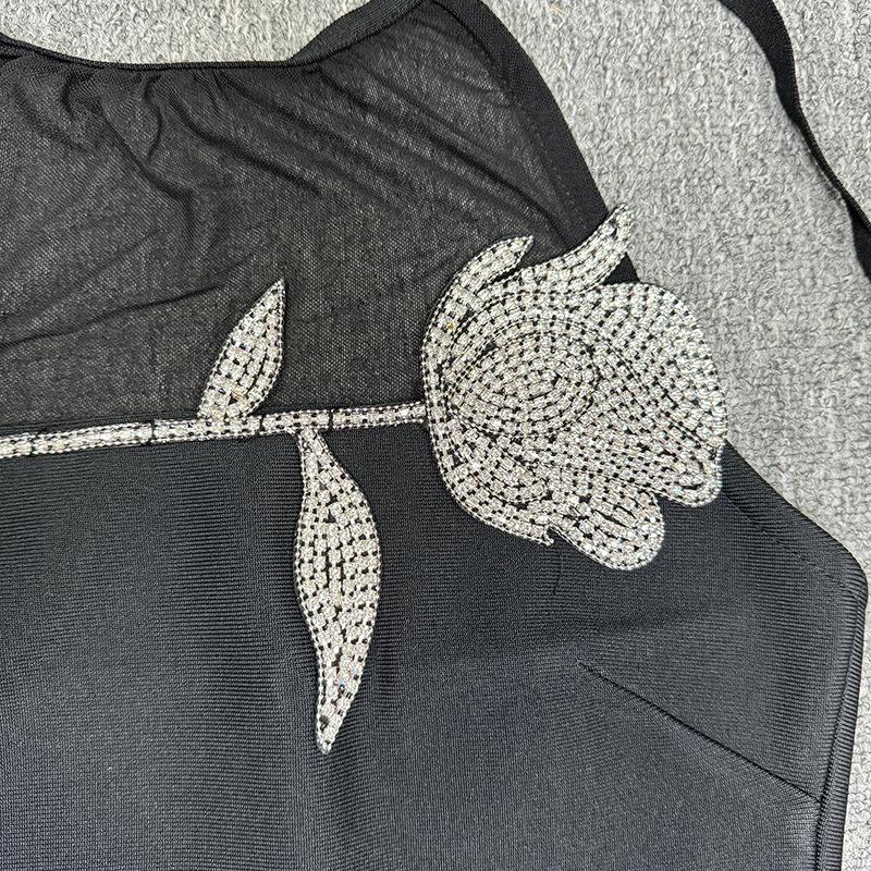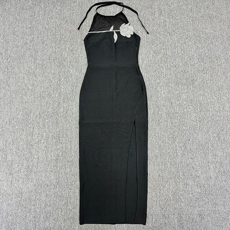 Vestido de noche elegante, ajustado, con abertura y cuello de malla, ligero, de lujo, sin mangas, con diamantes, estilo transfronterizo europeo y americano